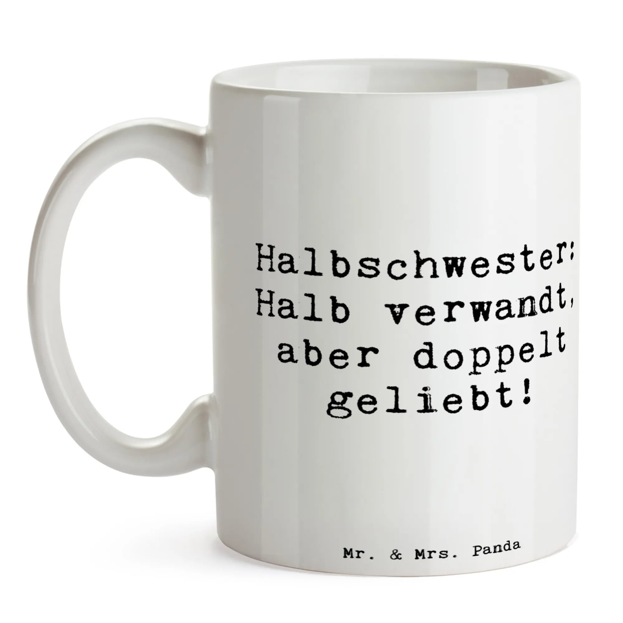 Mug Saying Halbschwester: Halb verwandt, aber doppelt geliebt! - Black