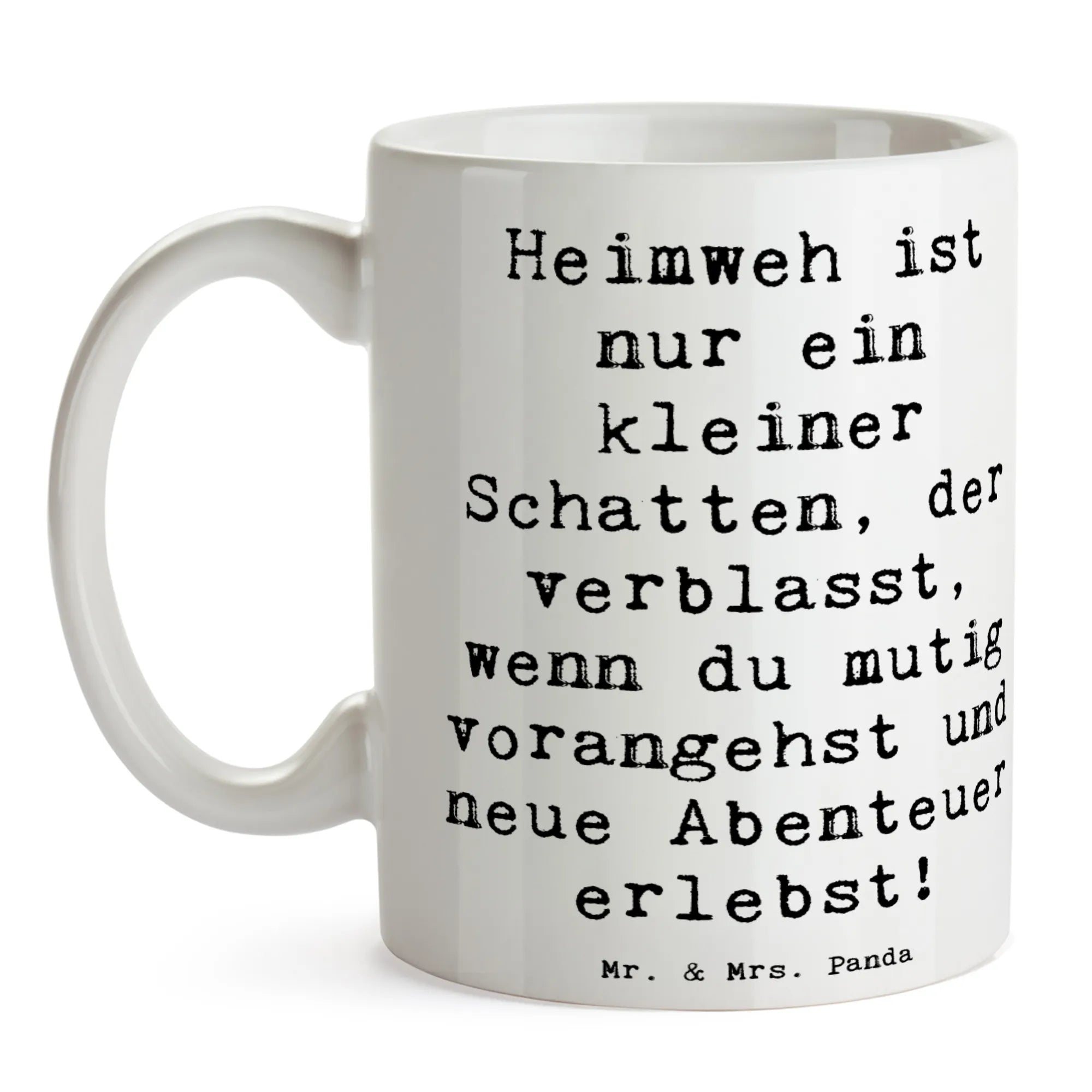 Mug Saying Heimweh ist nur ein kleiner Schatten, der verblasst, wenn du mutig vorangehst und neue Abenteuer erlebst! - White