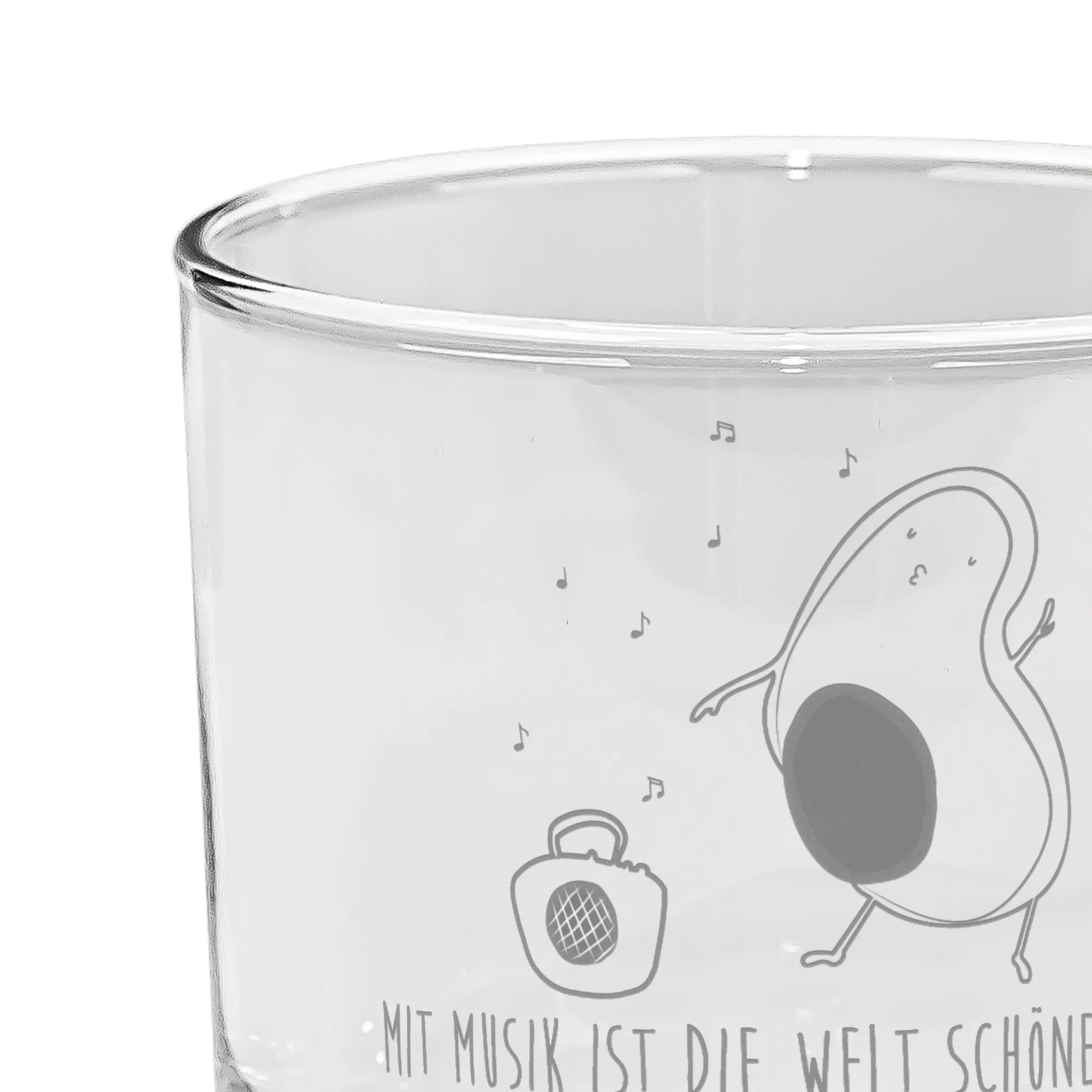 And if you're wondering about the design, our Ginglas features a cute avocado dancing in front of a Ghettoblaster, exuding good vibes all around. It's a gentle reminder that life is meant to be enjoyed—after all, music makes the world more beautiful!