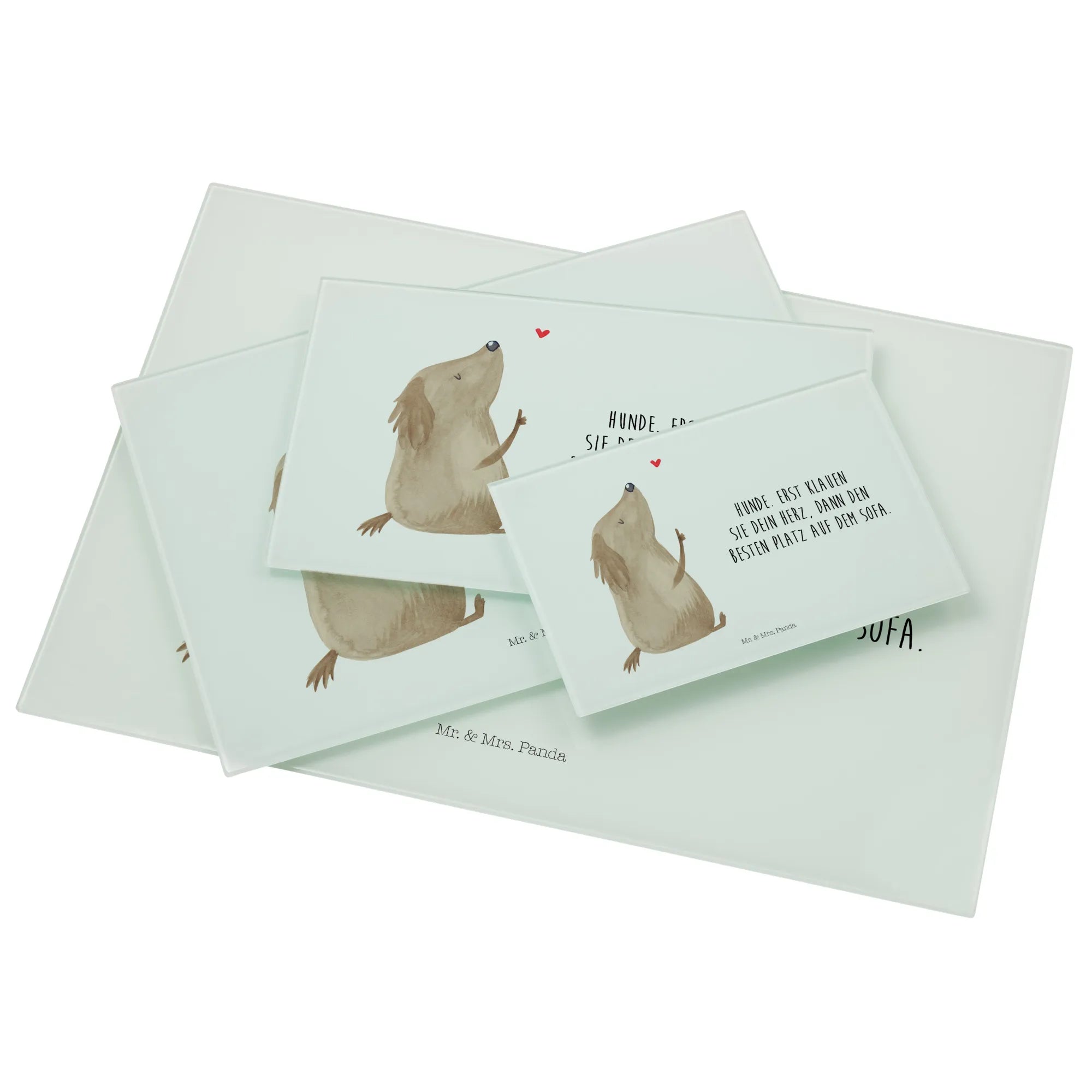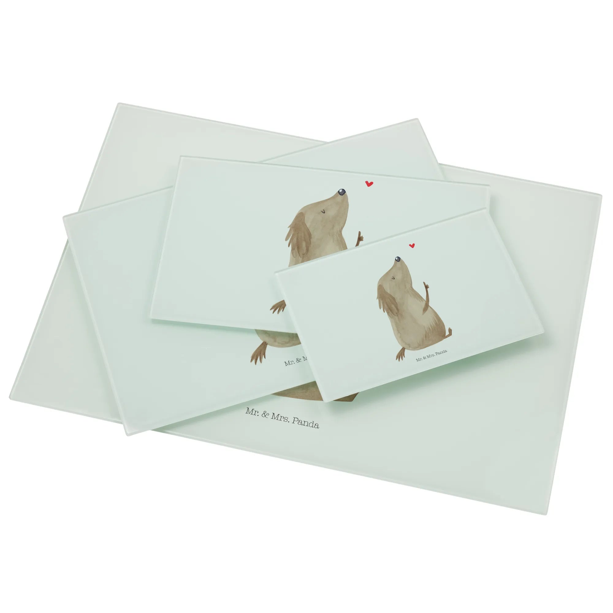 Are you looking for the perfect gift for a dog lover? Look no further than the Mr. & Mrs. Panda XL glass chopping board featuring our delightful "Dog Love" motif! 🐶❤️ This stunning chopping board is not just a practical kitchen accessory; it’s a heartfelt expression of the joy that dogs bring into our lives.