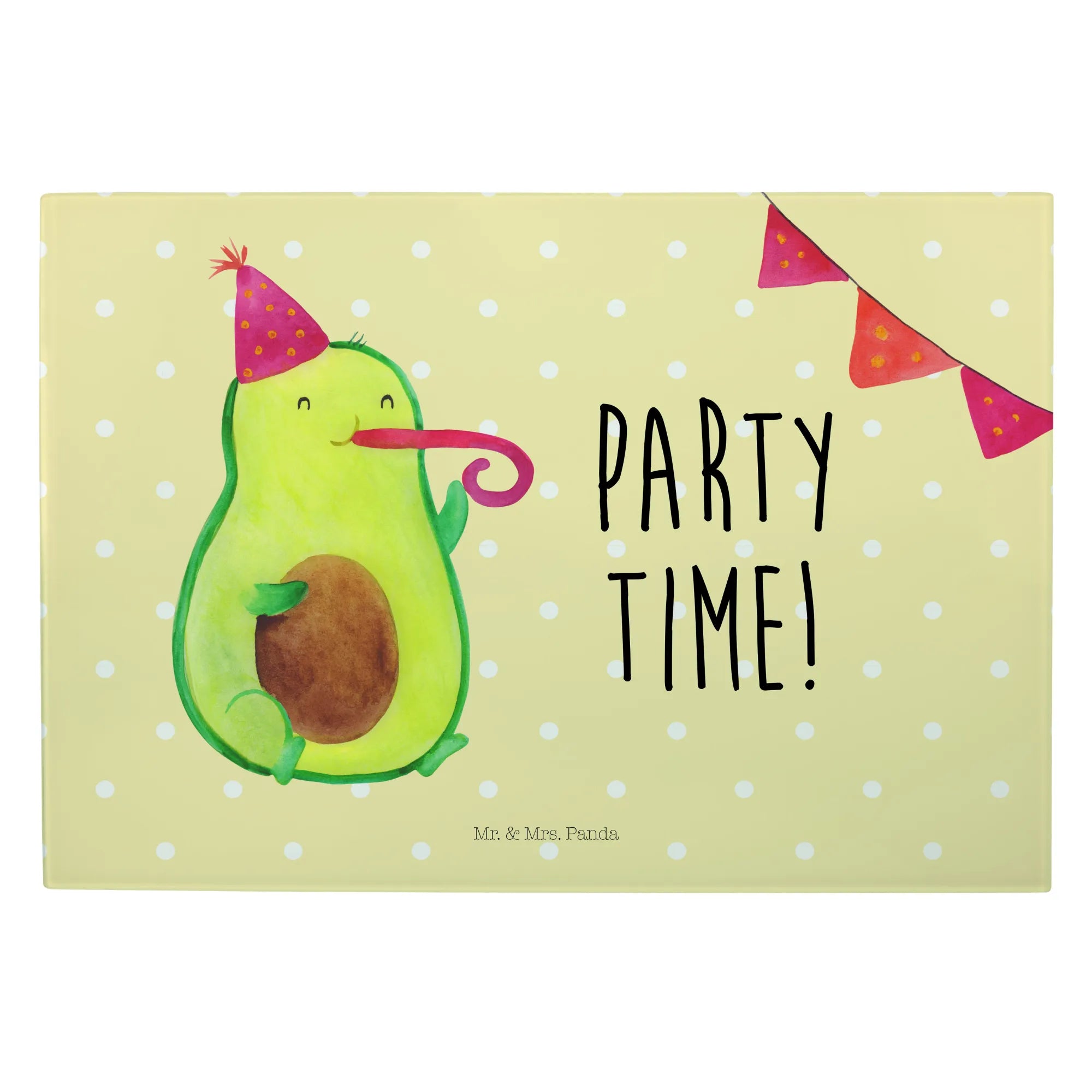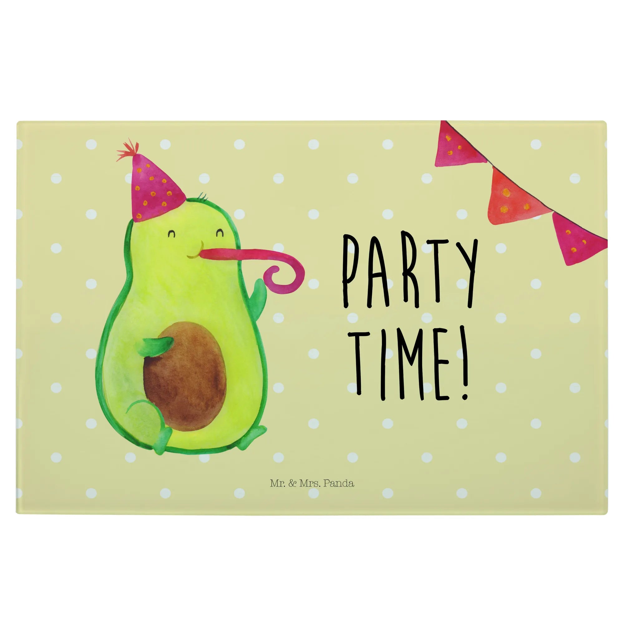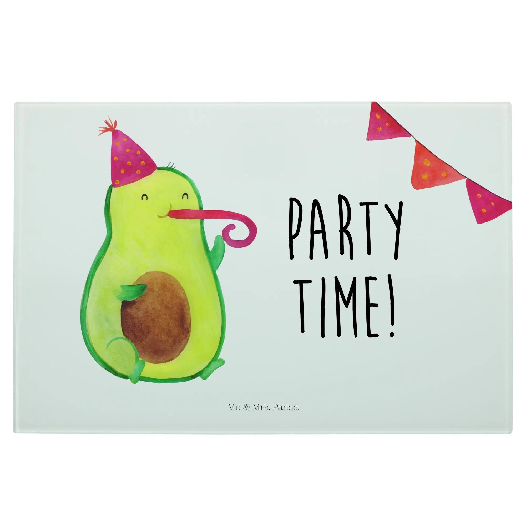 XL glass chopping board avocado party time - Medium Glass Cutting Board - with saying - White