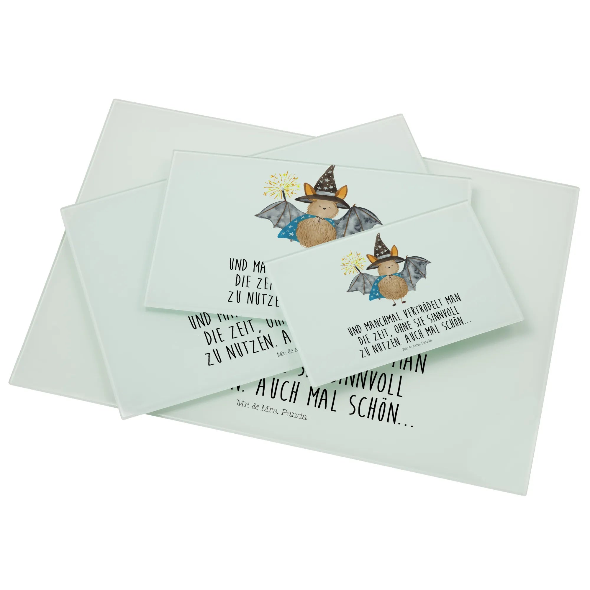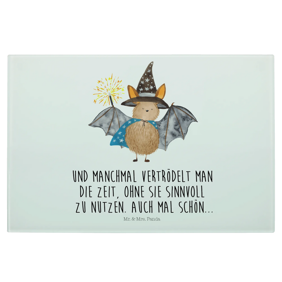 XL glass chopping board bat wizard - Medium Glass Cutting Board - with saying - White