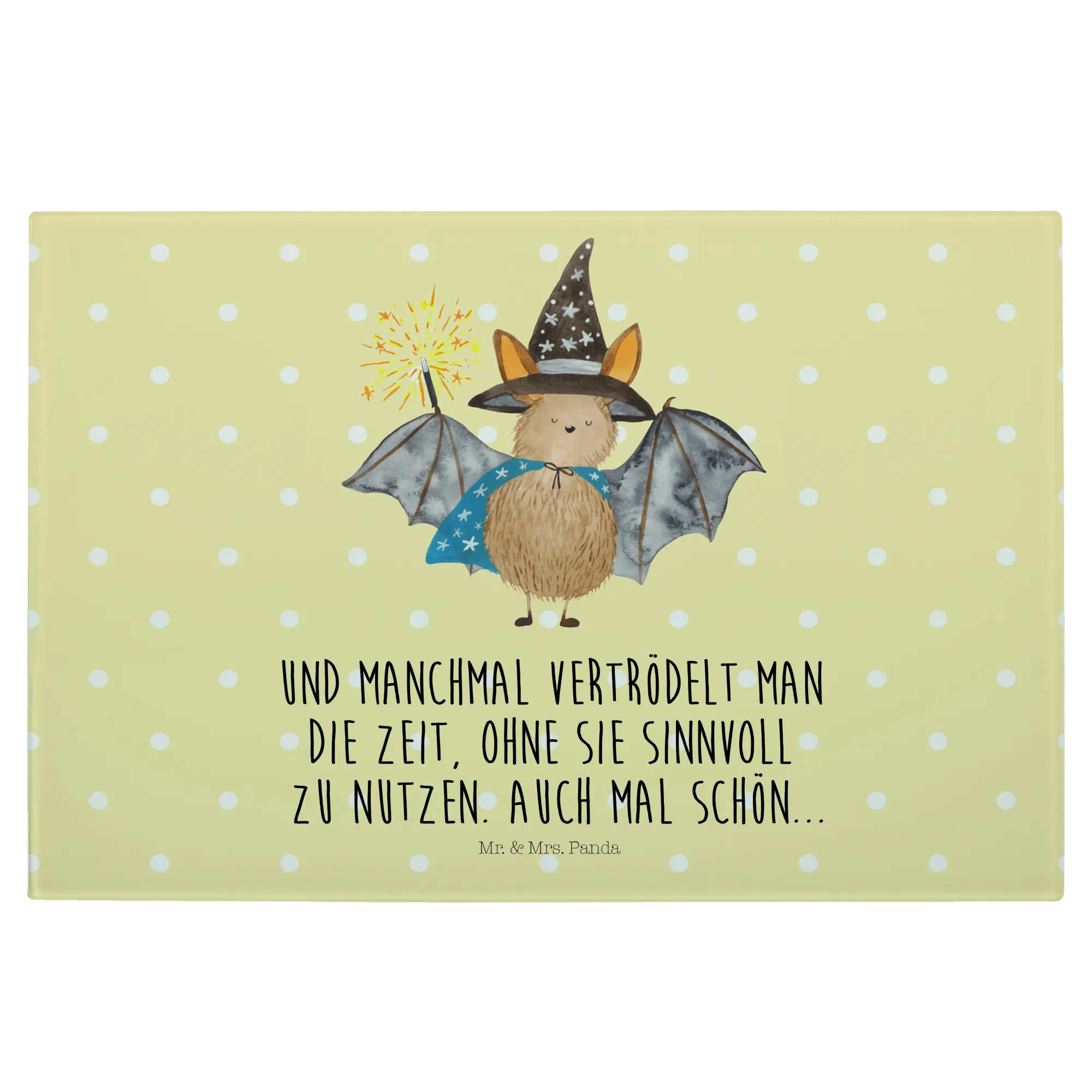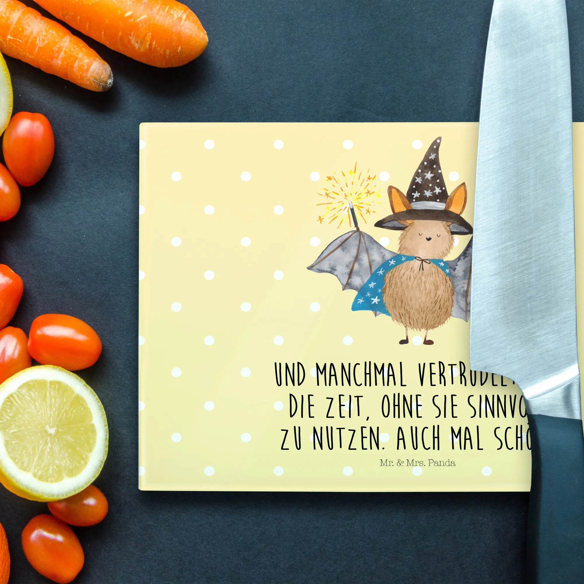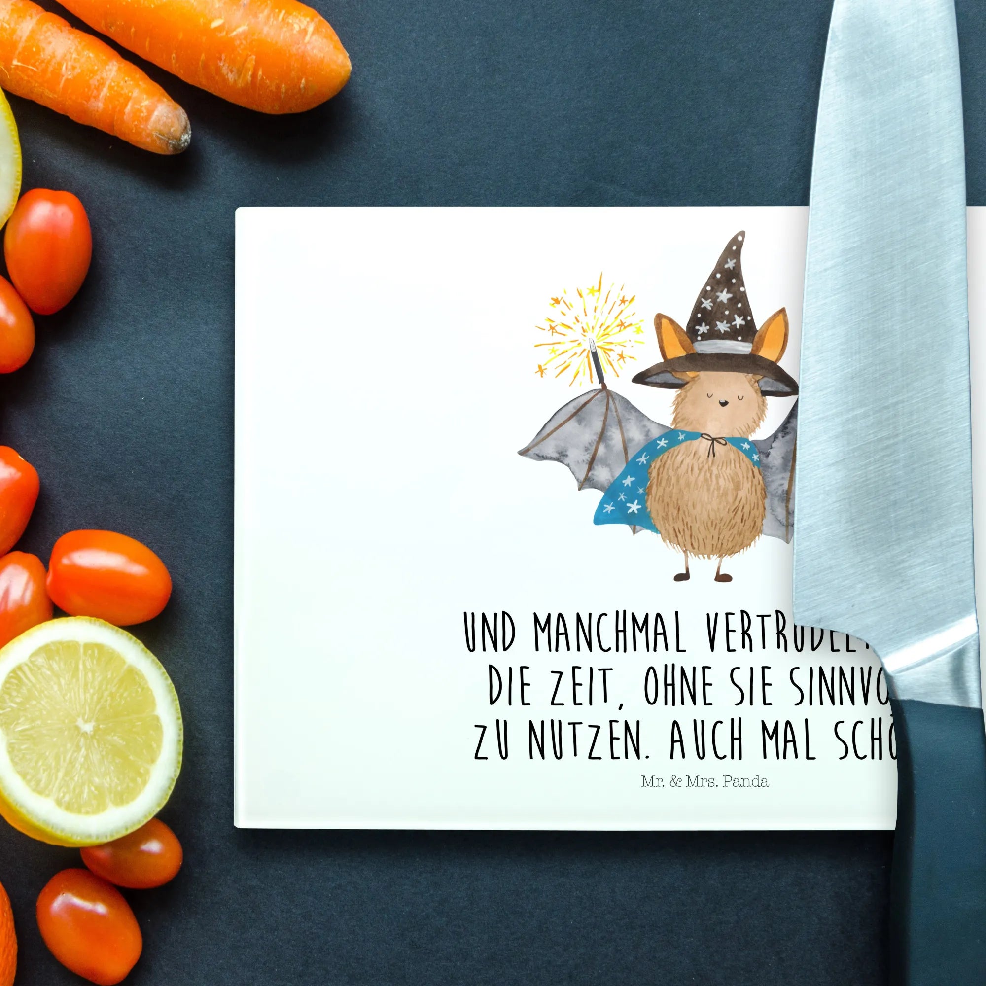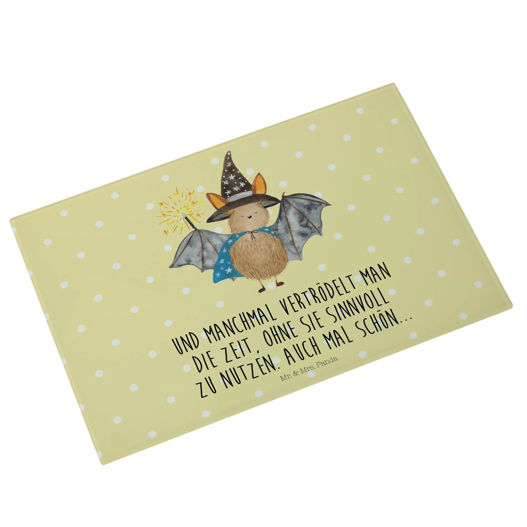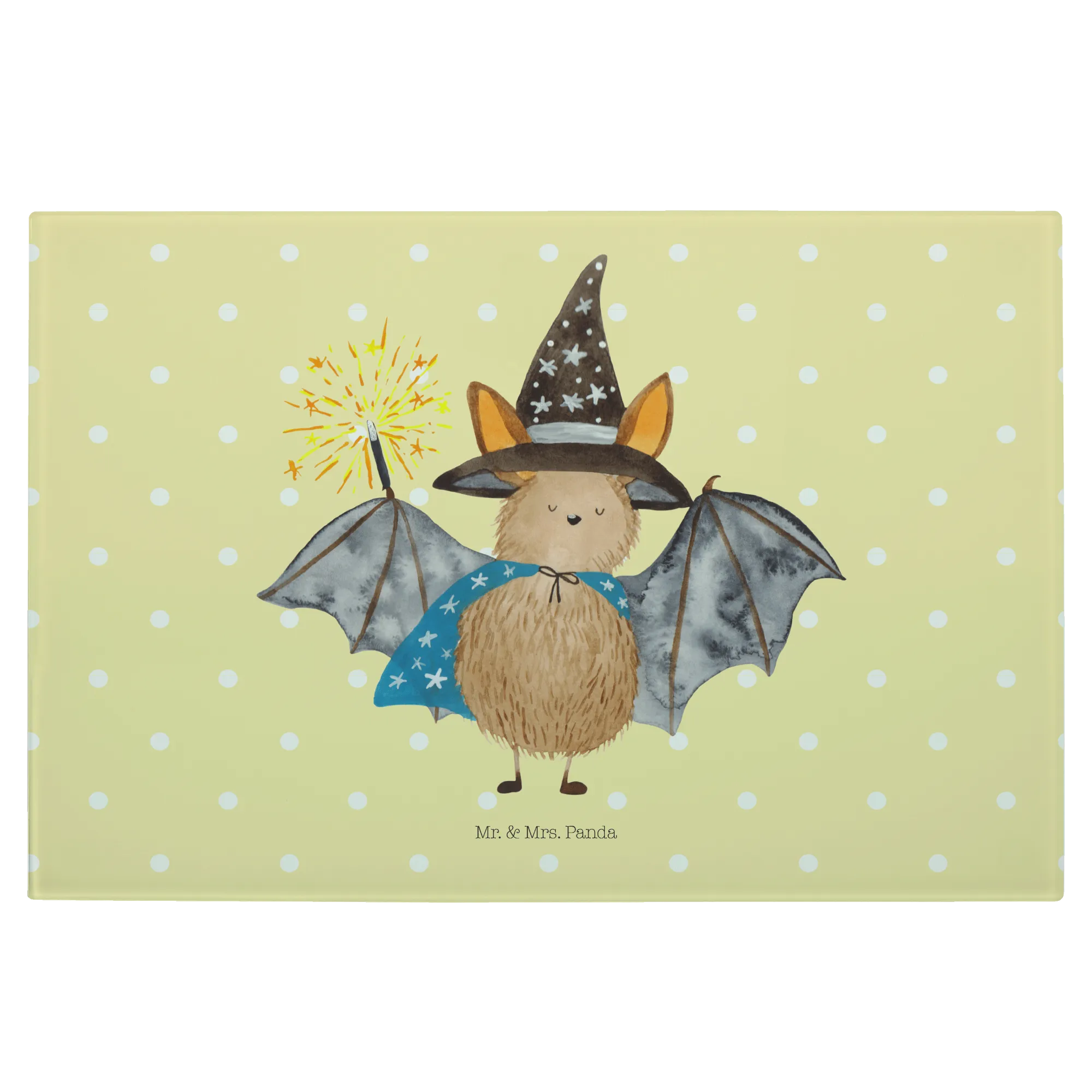Introducing the charming XL Glass Cutting Board featuring our very own Wizard Bat from the beloved Small World collection by Mr. & Mrs. Panda!