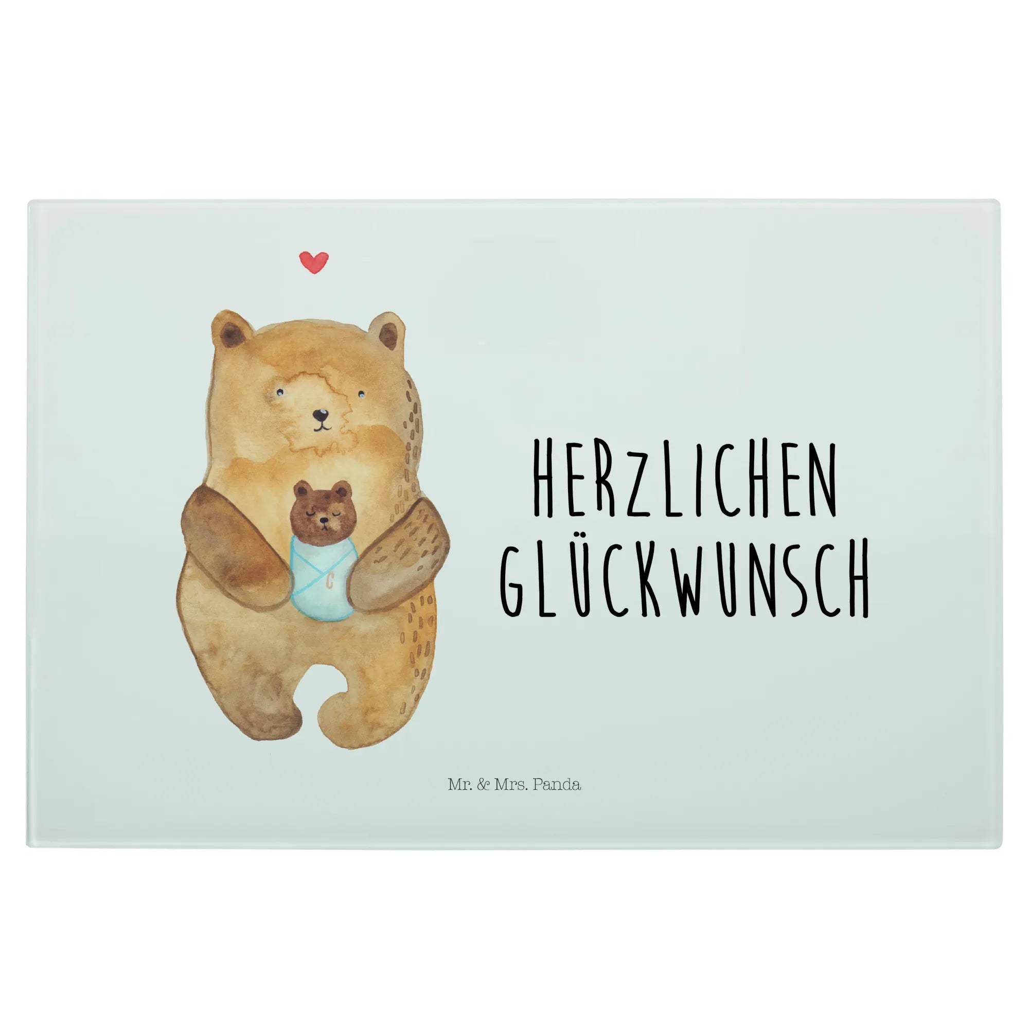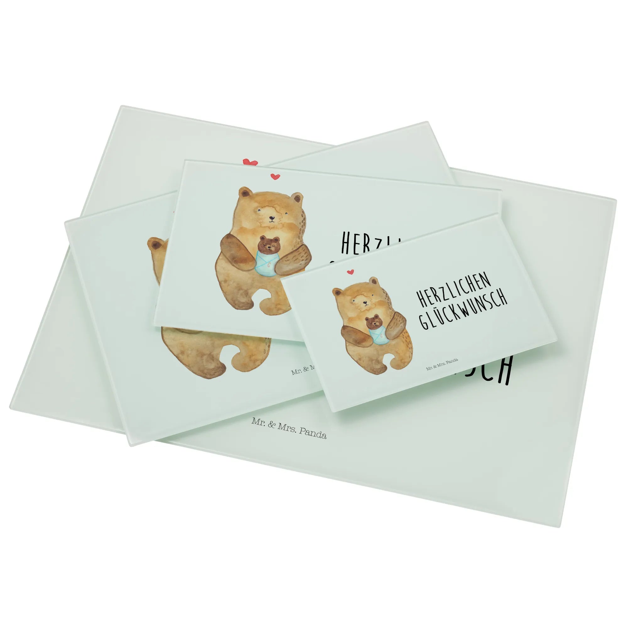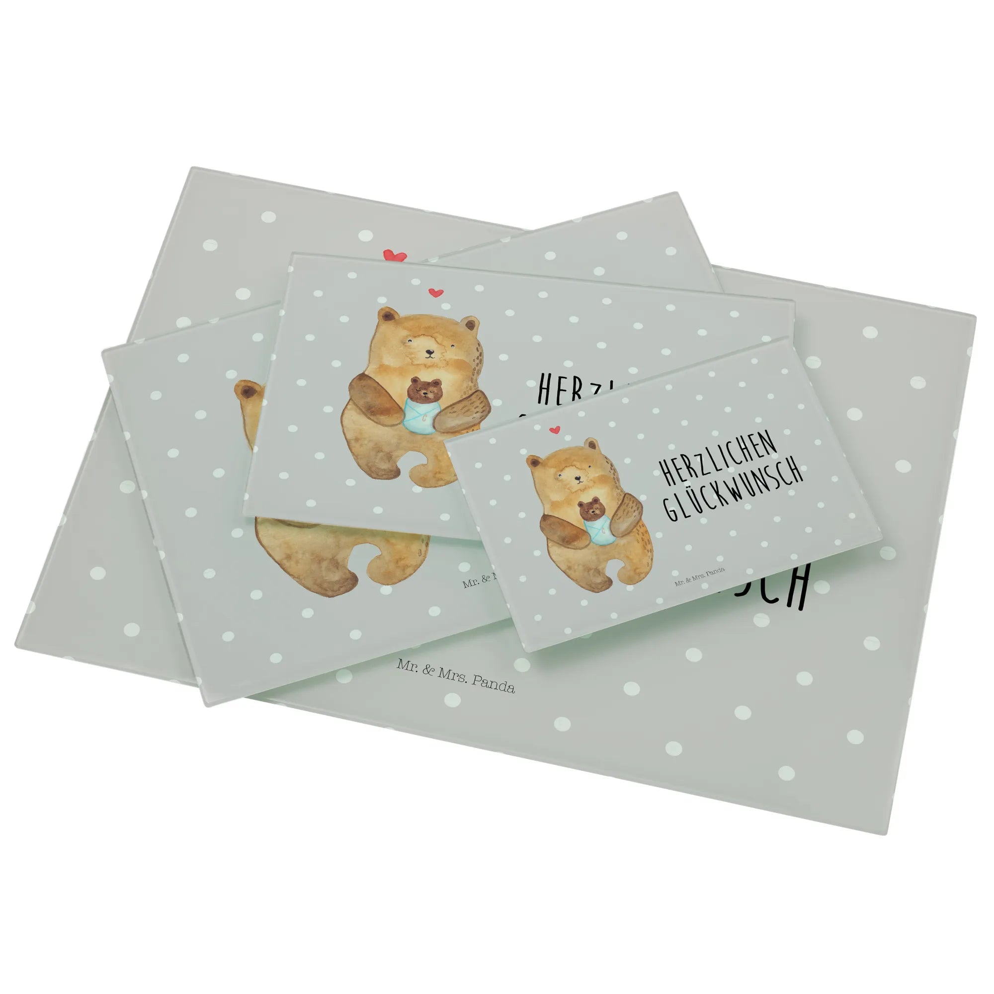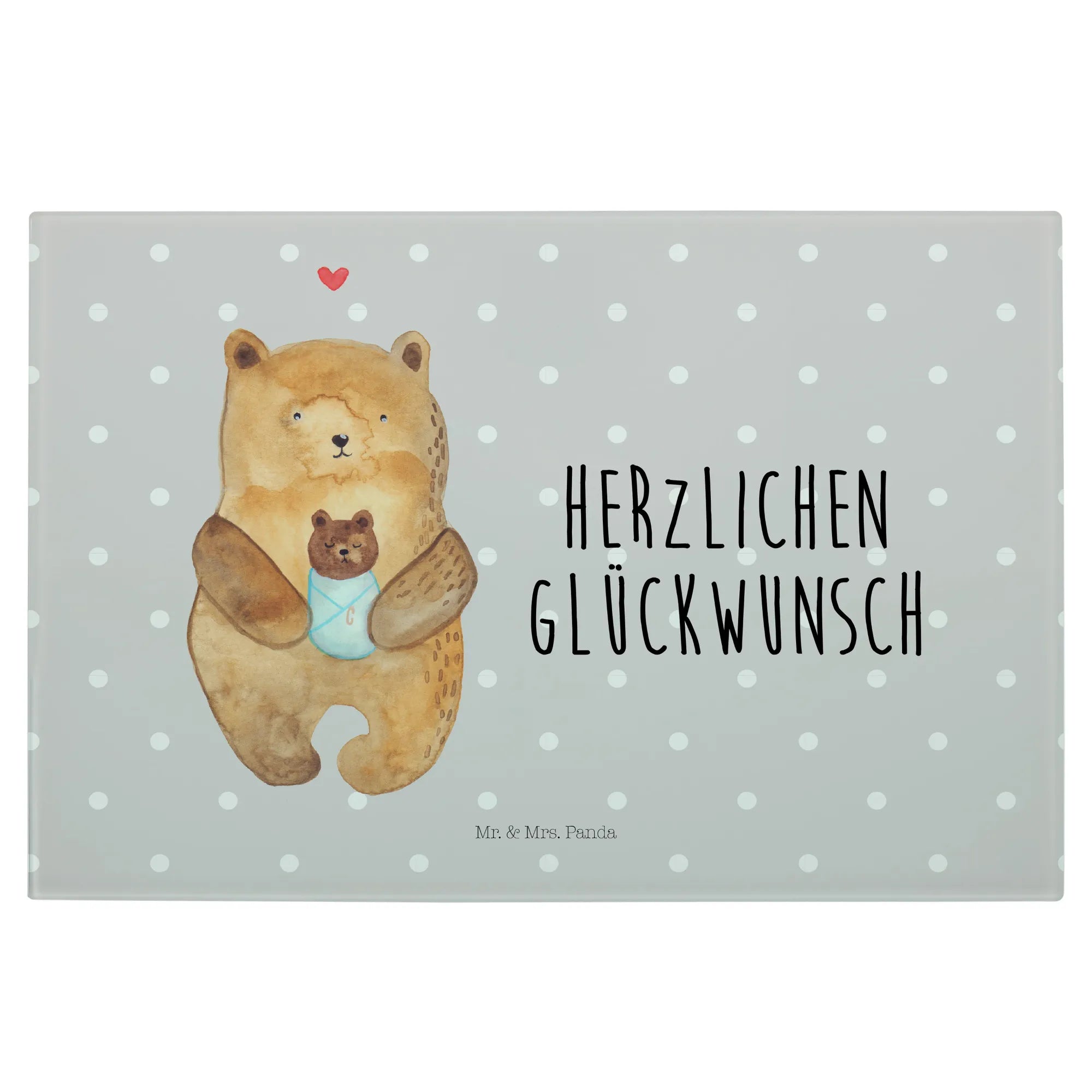 Made from premium, scratch-resistant glass, this cutting board is designed with love and care, just like the moments it's meant to commemorate. Imagine a lovely gathering where the new parents proudly display their beautiful glass cutting board, adorned with a sweet illustration that reflects their journey into parenthood. The bear holding its baby symbolizes love, protection, and the warmth of family—ideal sentiments for parents or grandparents wishing to gift something meaningful to their newly baptized child, niece, nephew, or grandchild.