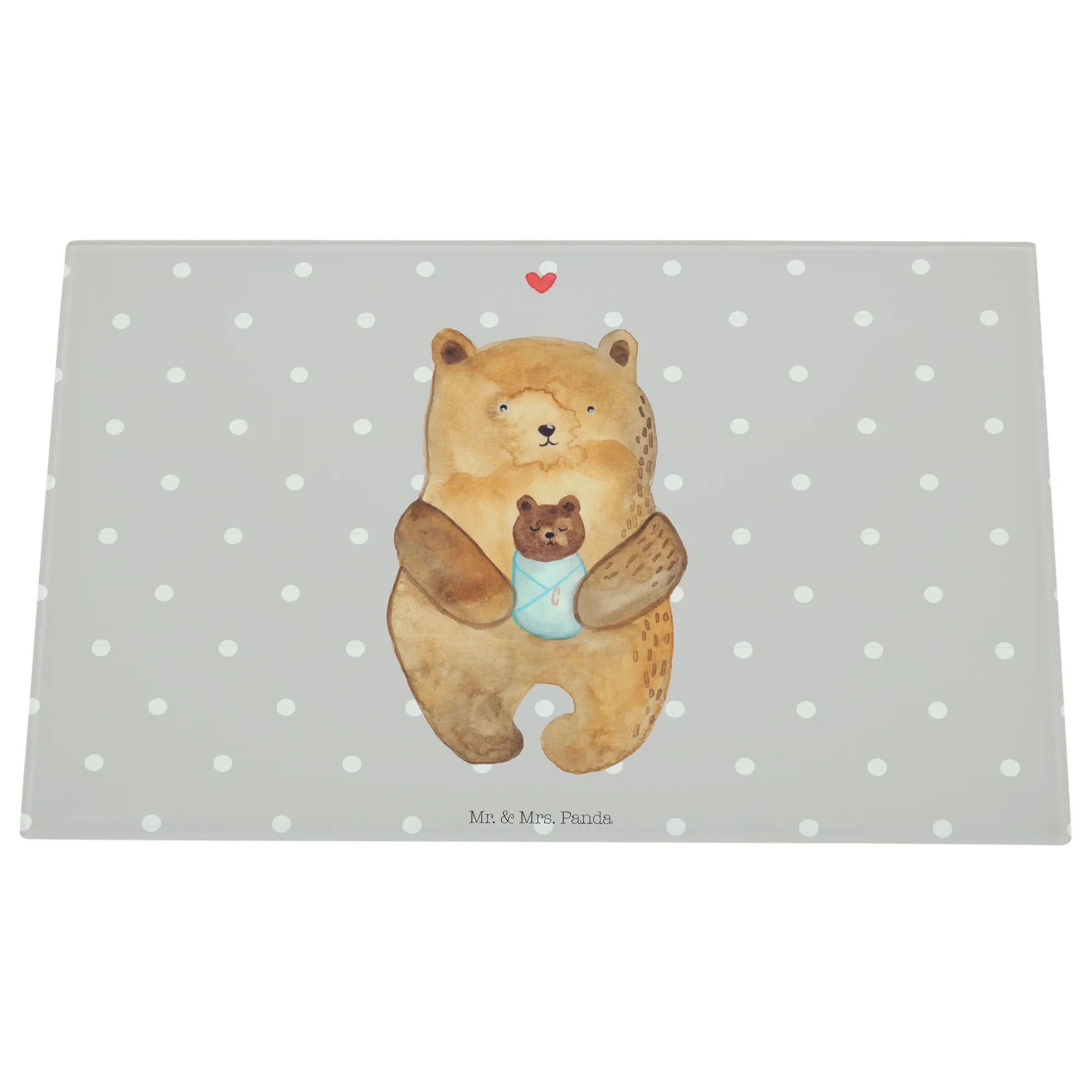 XL glass chopping board bear infant - Medium Glass Cutting Board - with a saying - Grey Pastel