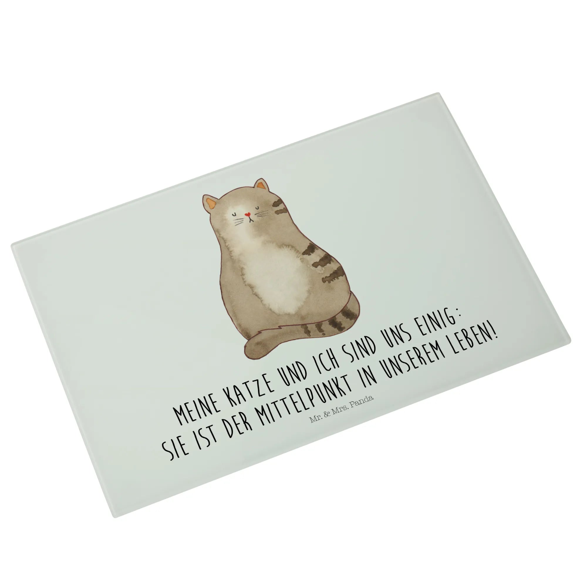 XL glass chopping board Cat Sit - Medium Glass Cutting Board - with saying - White