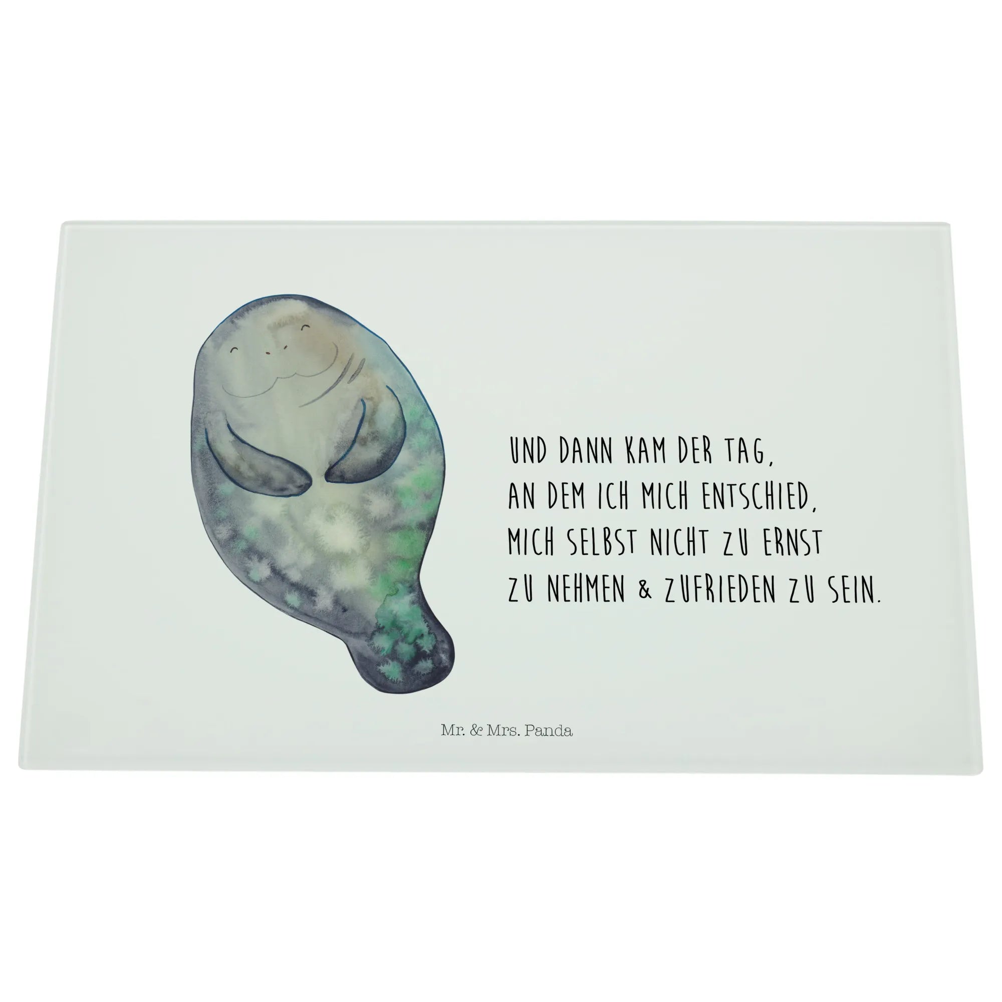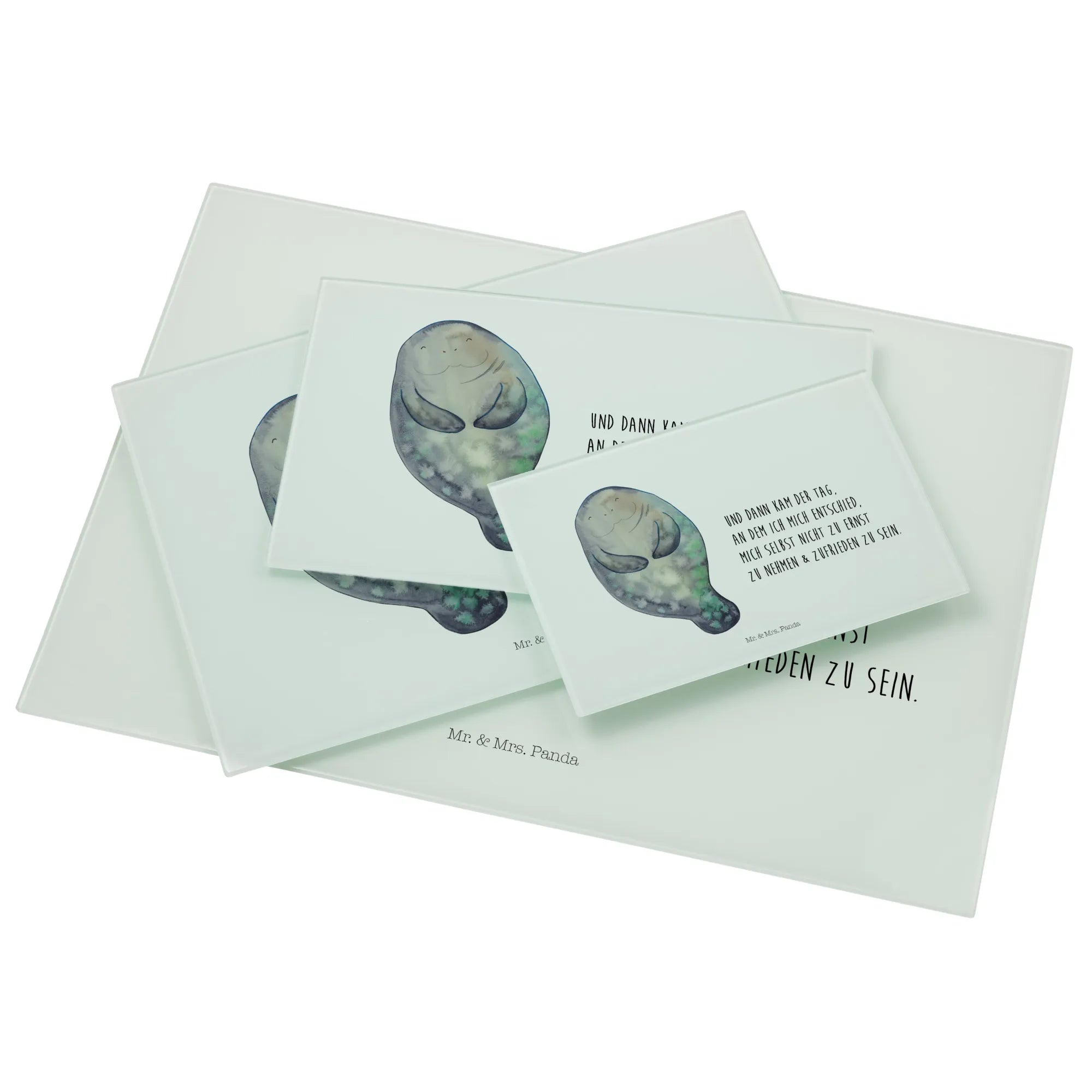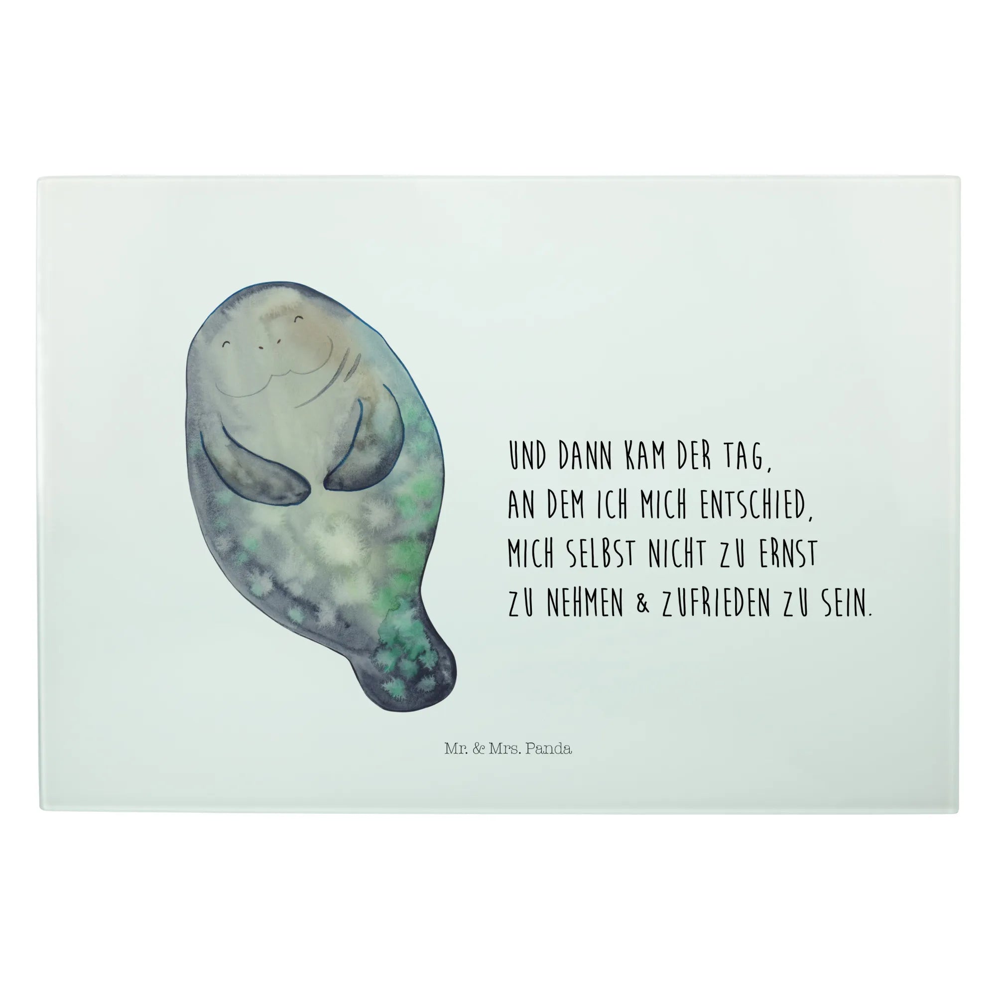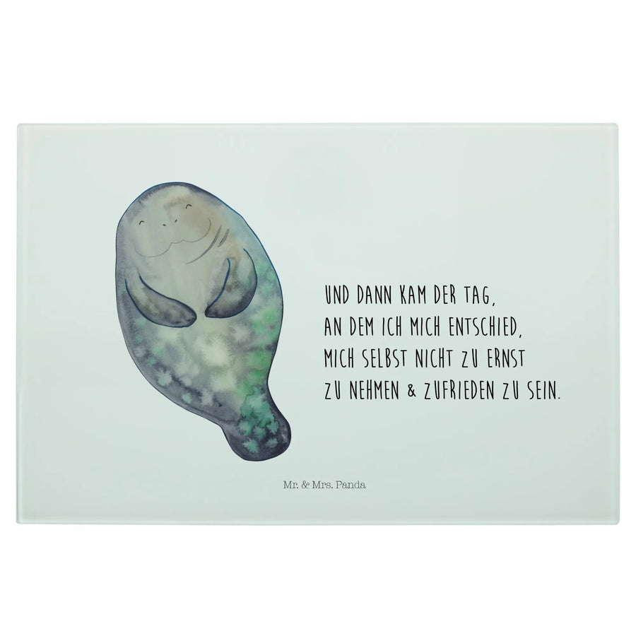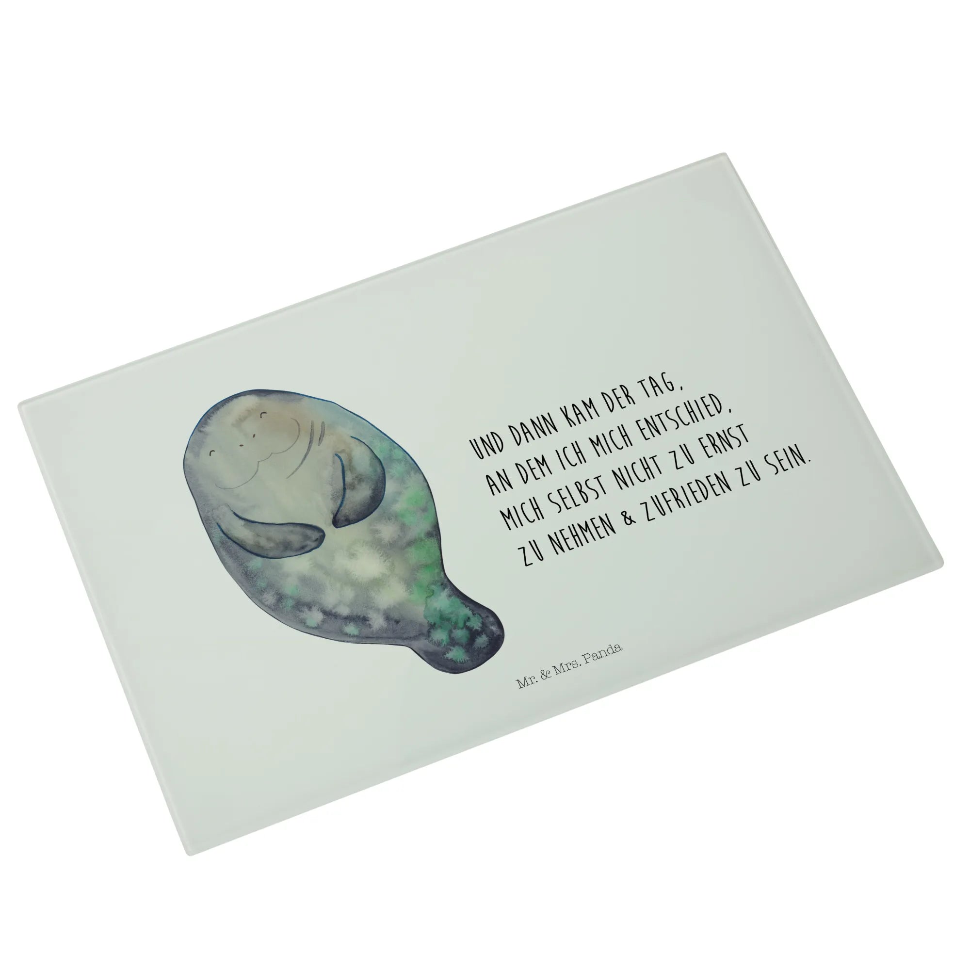 XL glass chopping board manatee happy - Medium Glass Cutting Board - with a saying - White