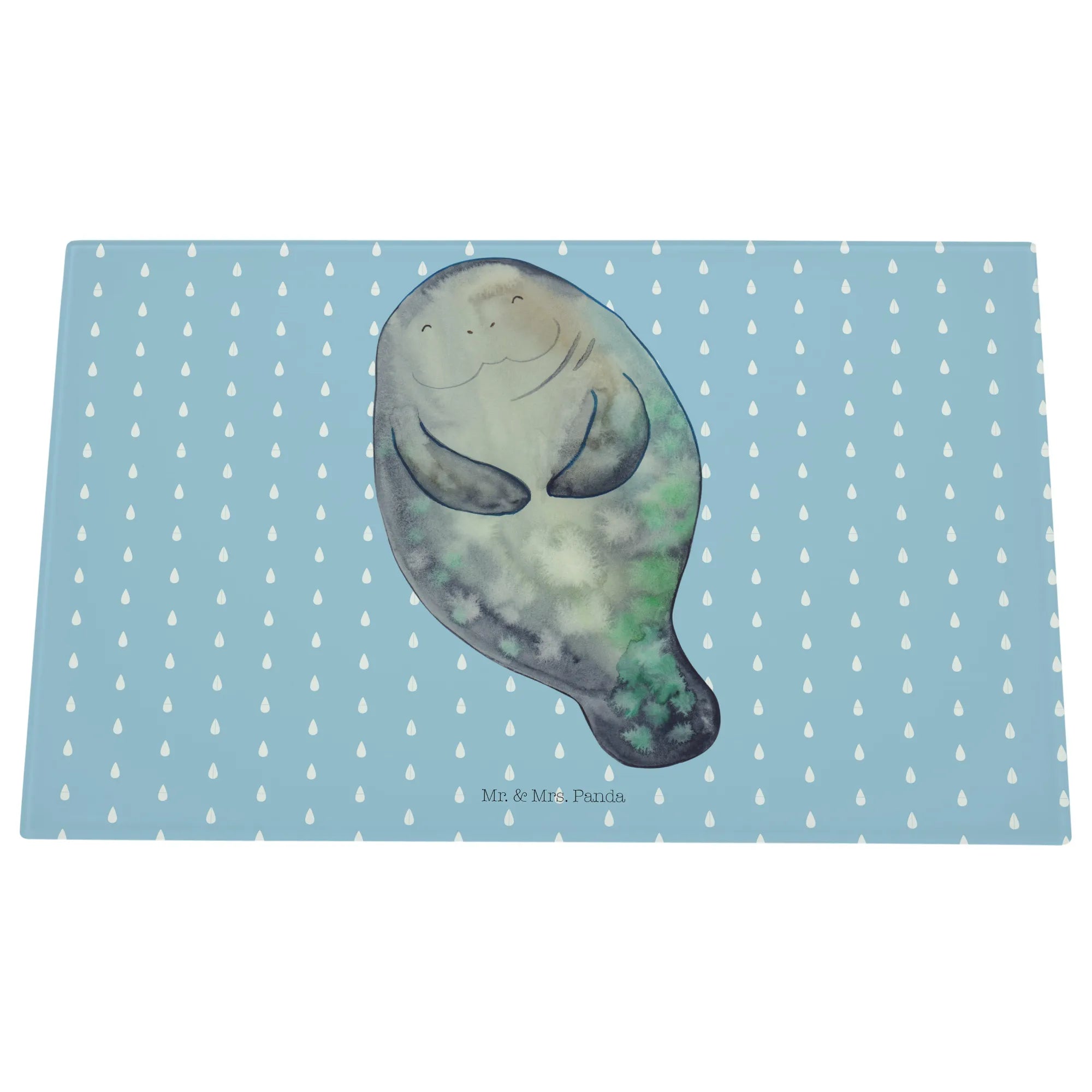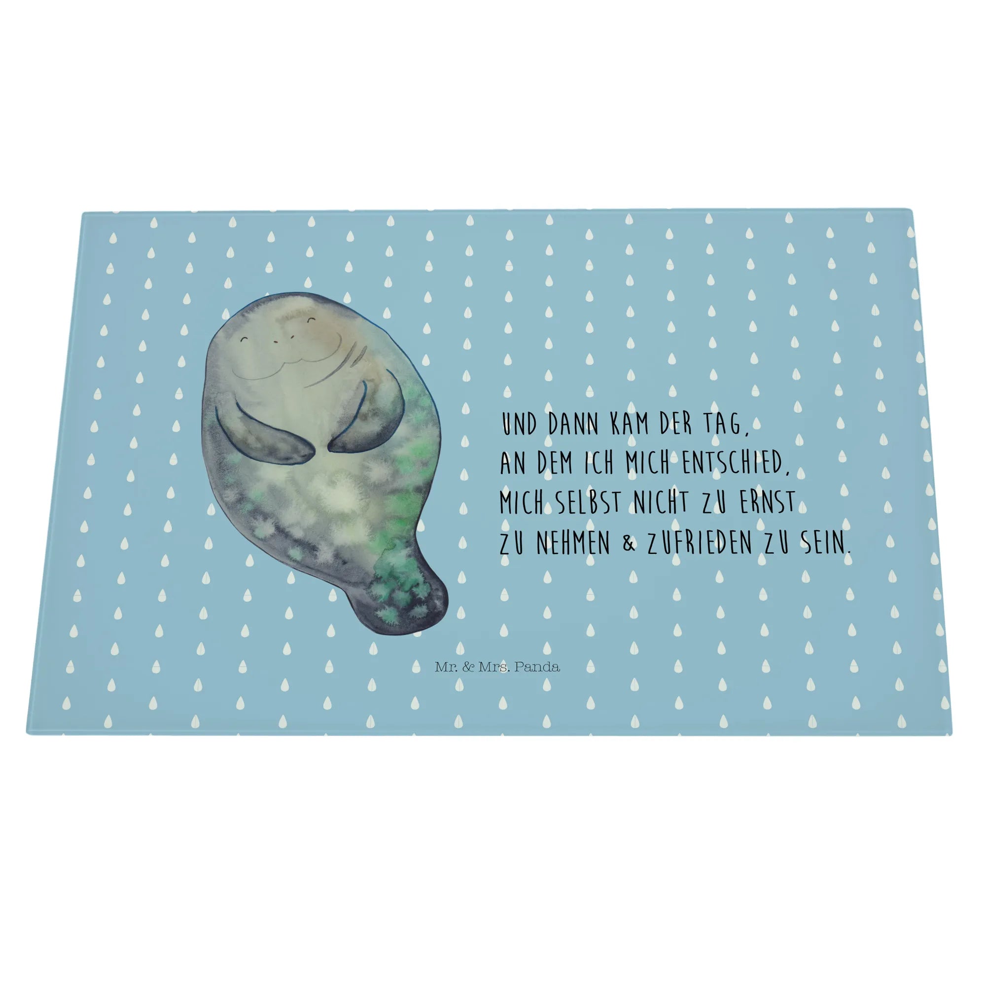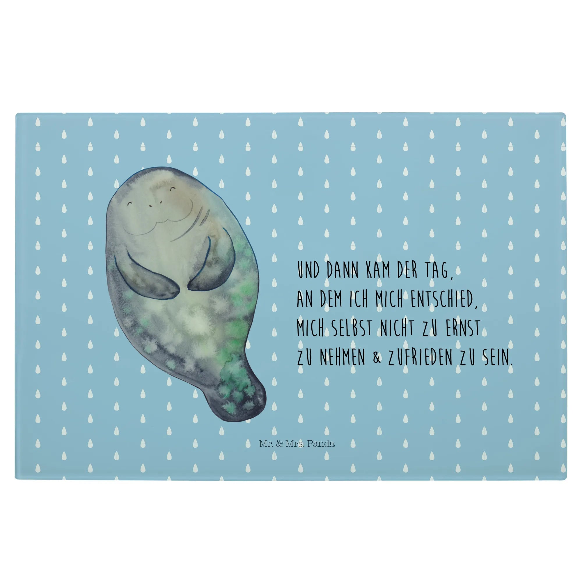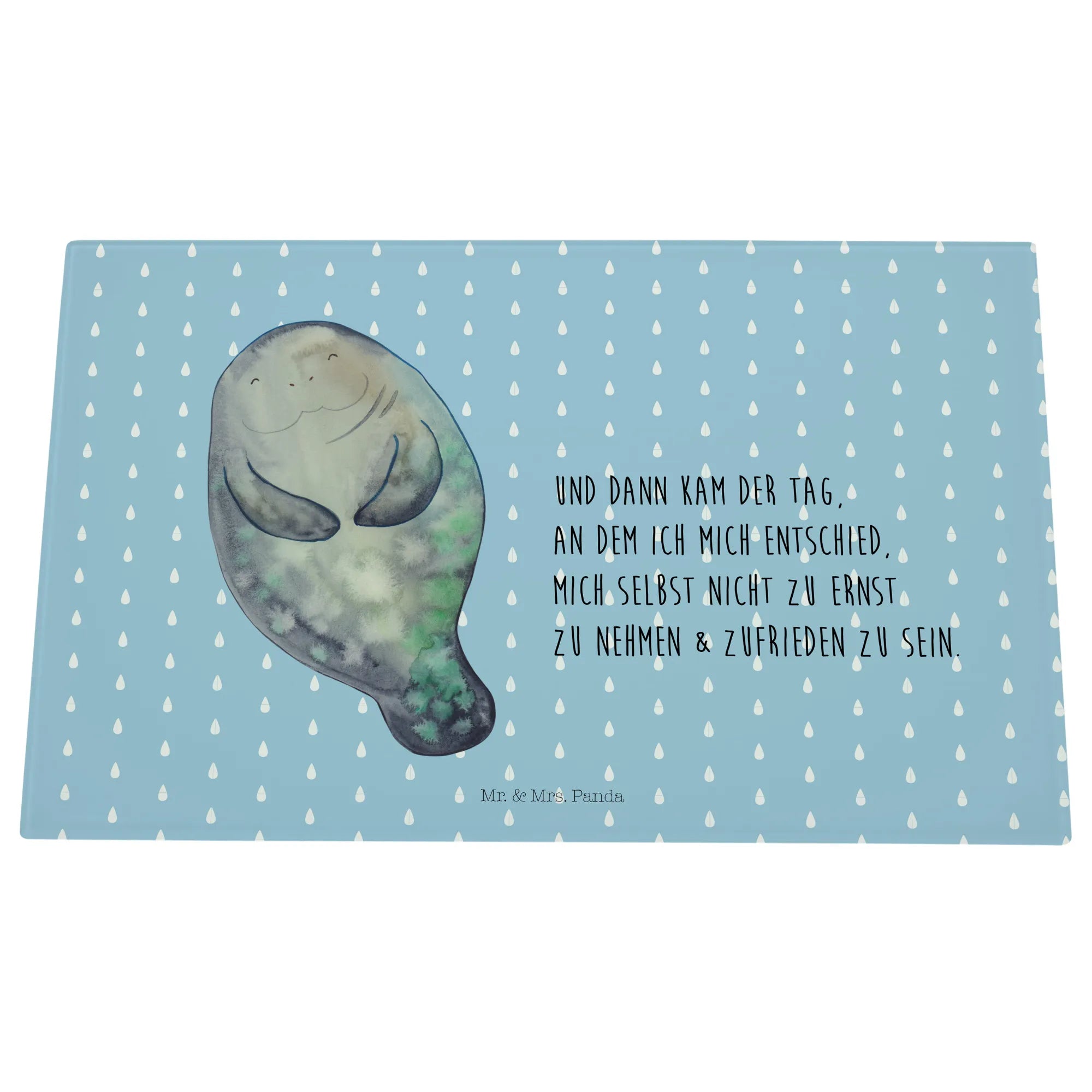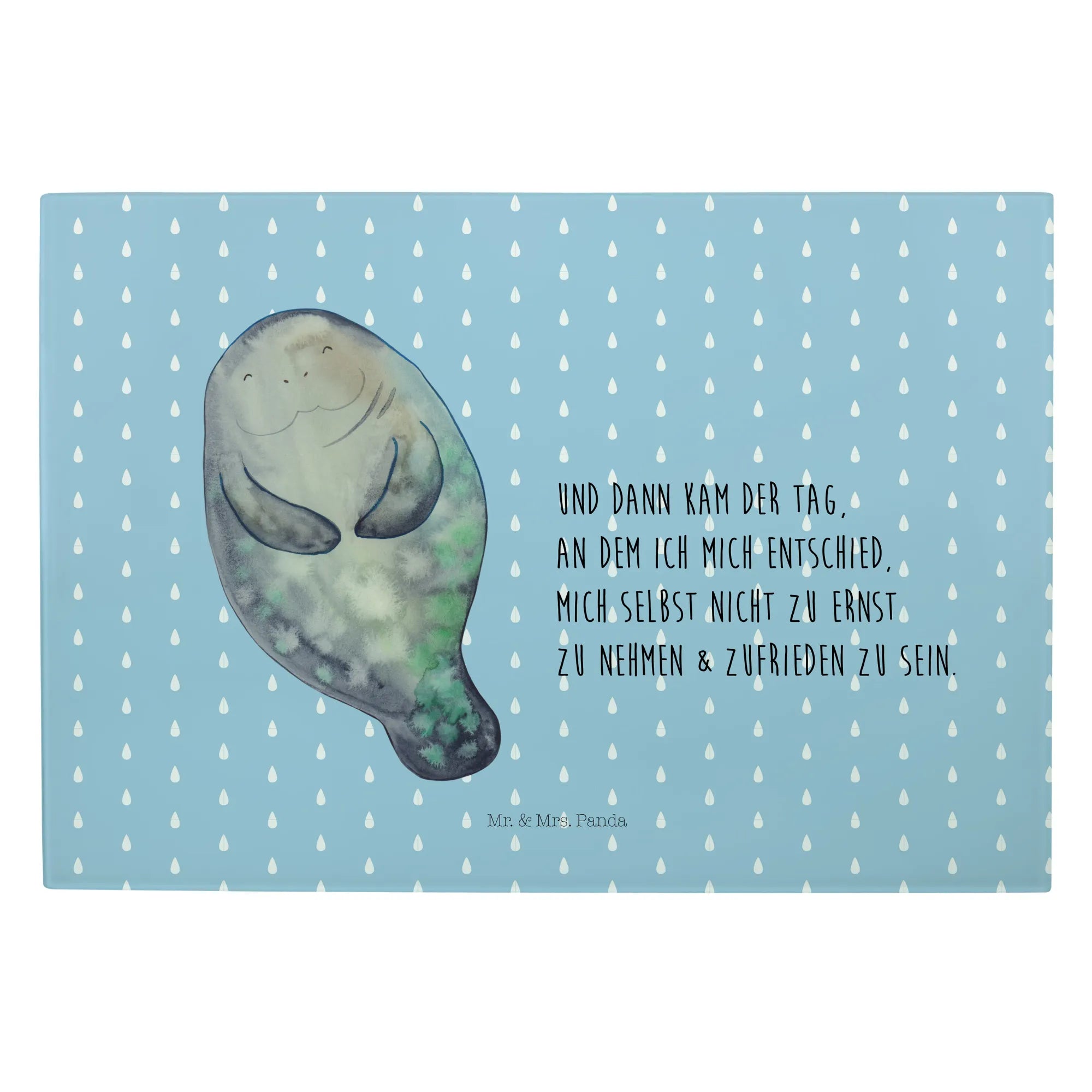 XL glass chopping board manatee happy - Medium Glass Cutting Board - with a saying - White