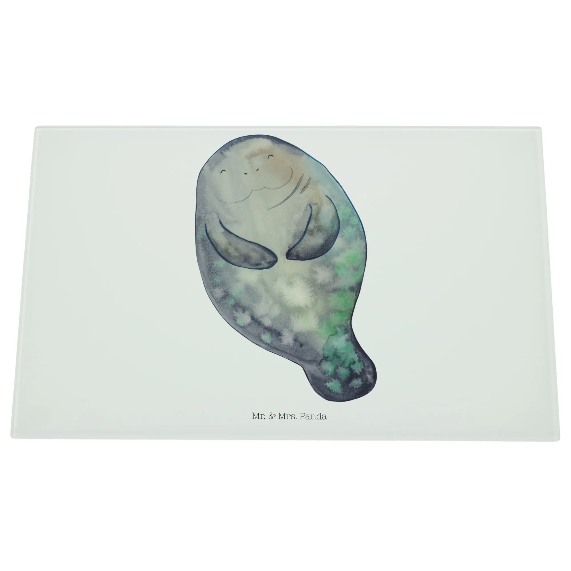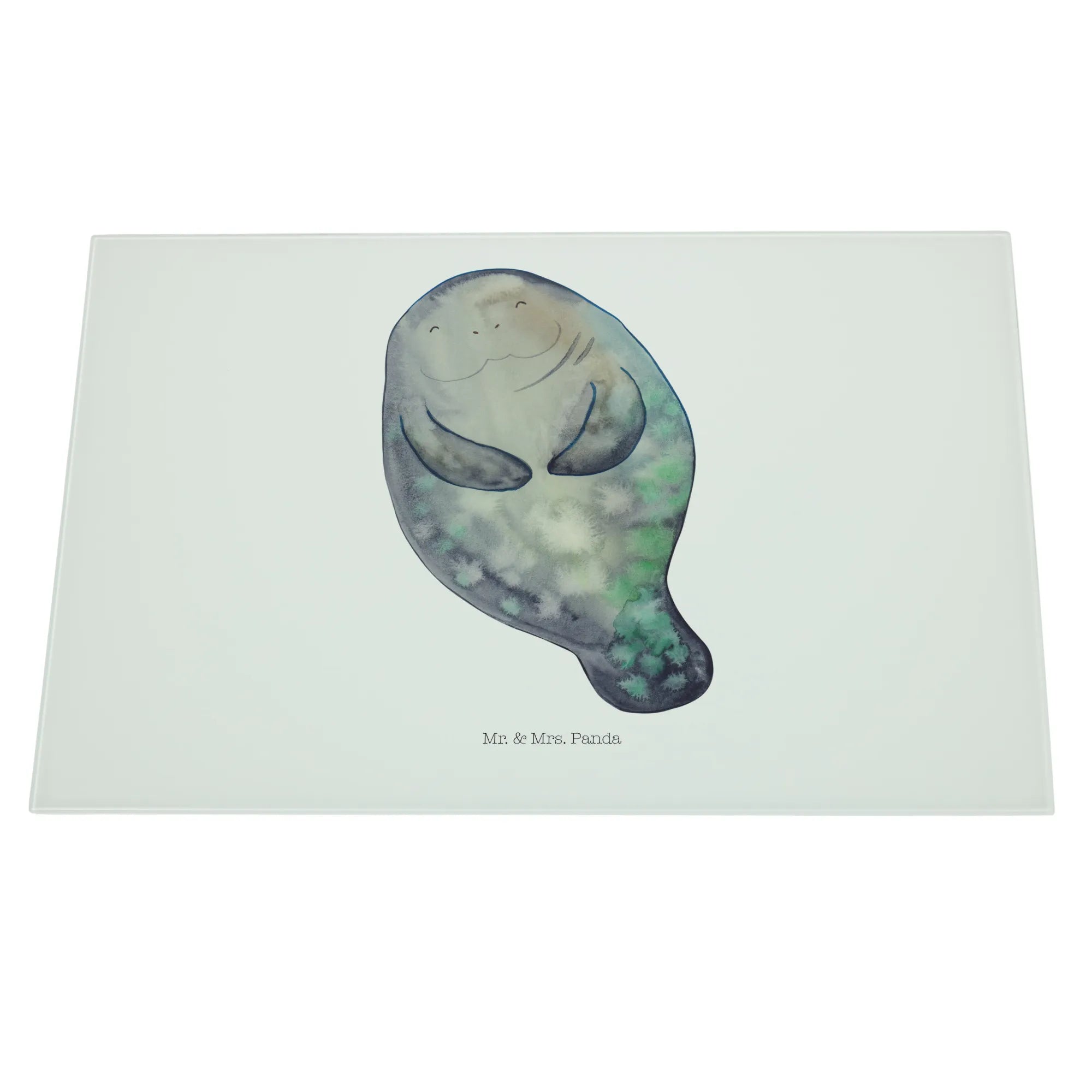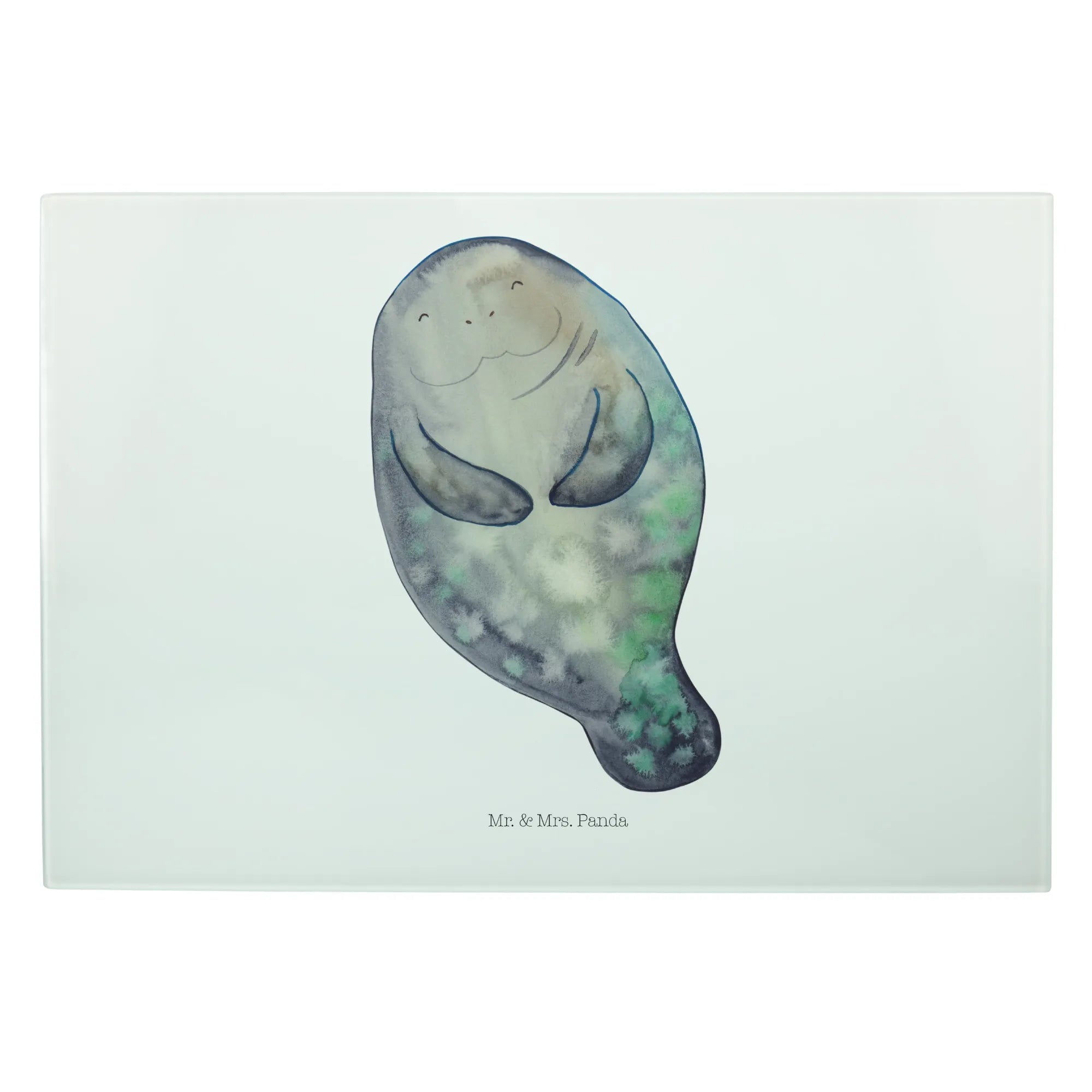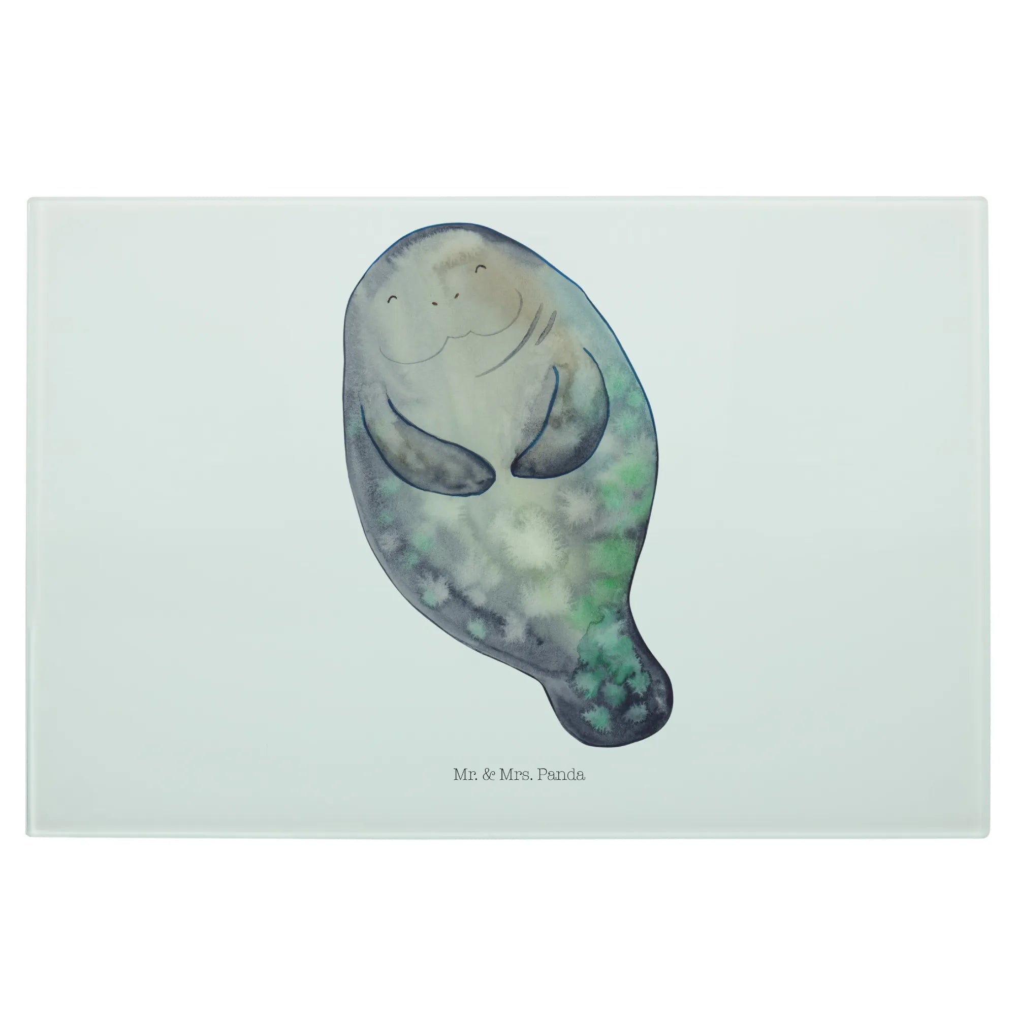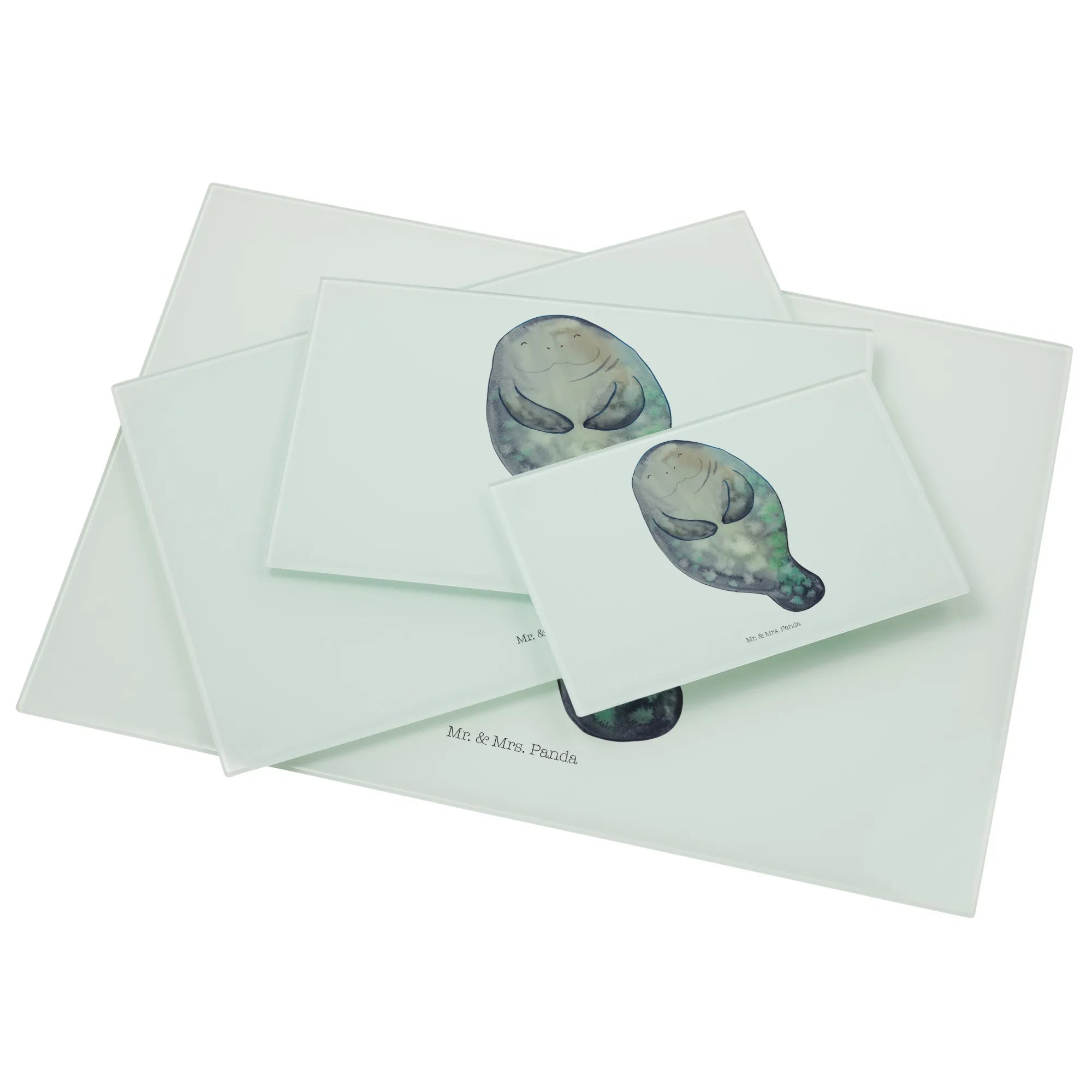 Introducing the Mr. & Mrs. Panda XL glass chopping board featuring the delightful motif of a happy manatee! This beautiful cutting board is not just a functional kitchen accessory; it embodies a lifestyle of self-love, respect, and tranquility.