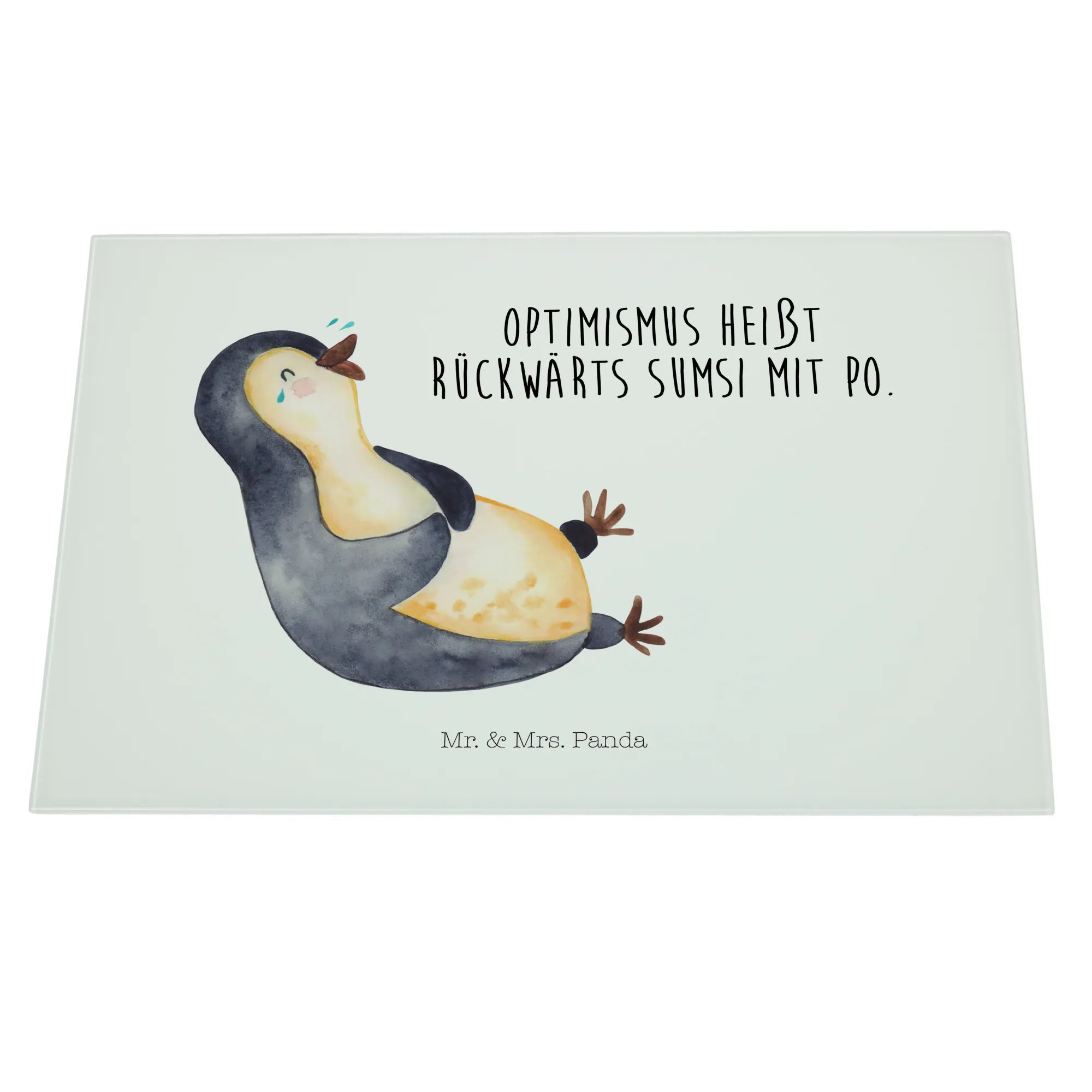 XL glass chopping board Penguin Laugh - Medium Glas Schneidbrett - with saying - White