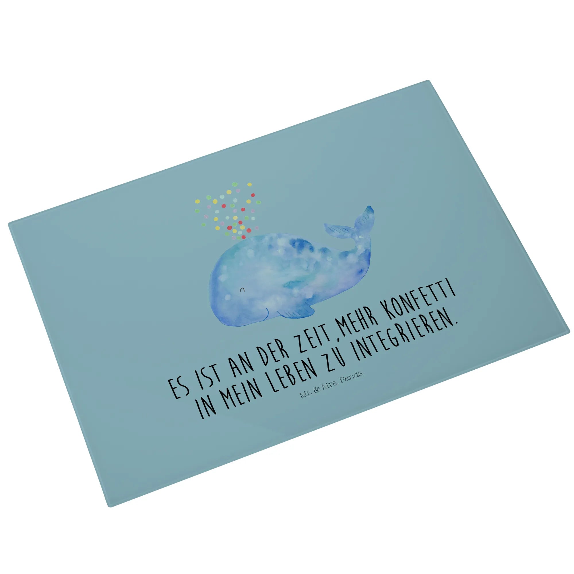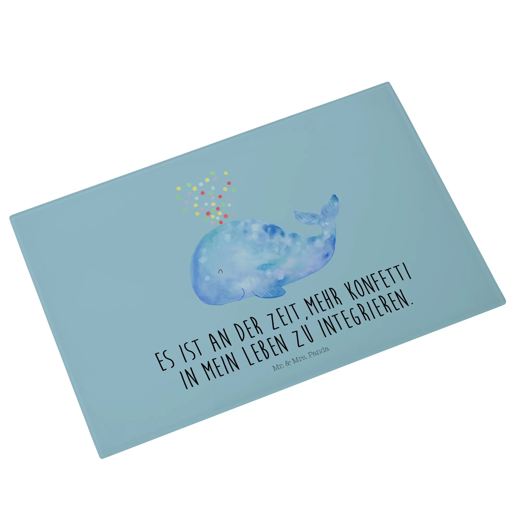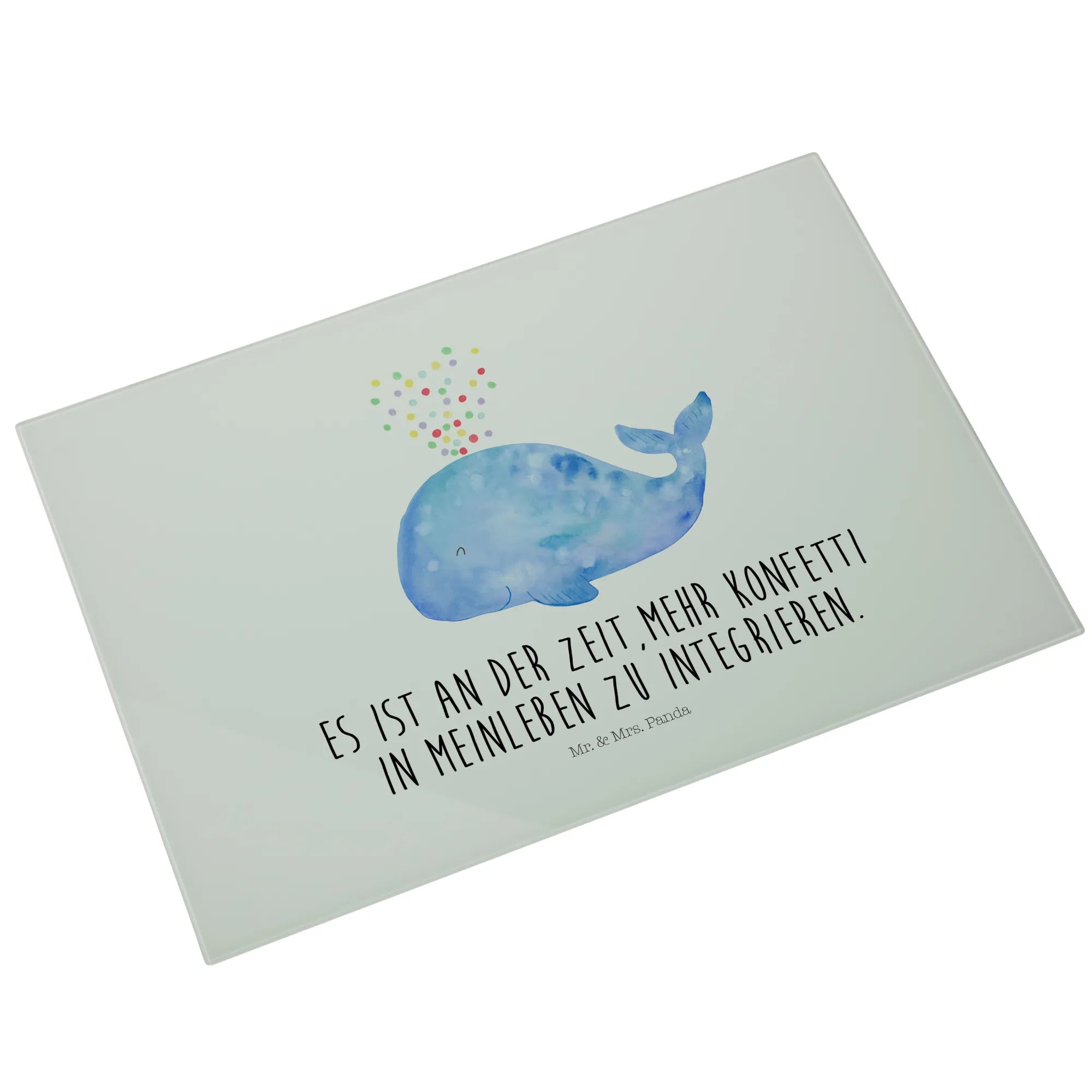 XL glass chopping board whale confetti - Medium Glas Schneidbrett - with saying - White