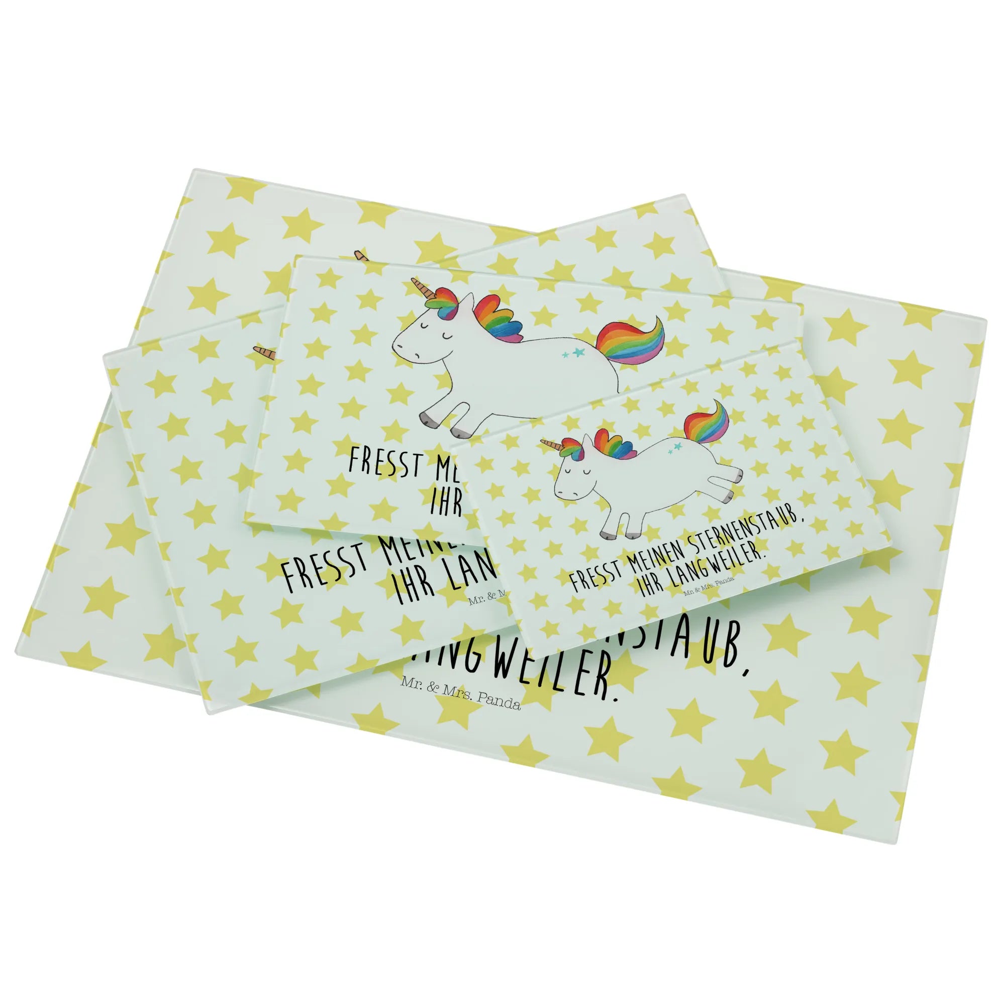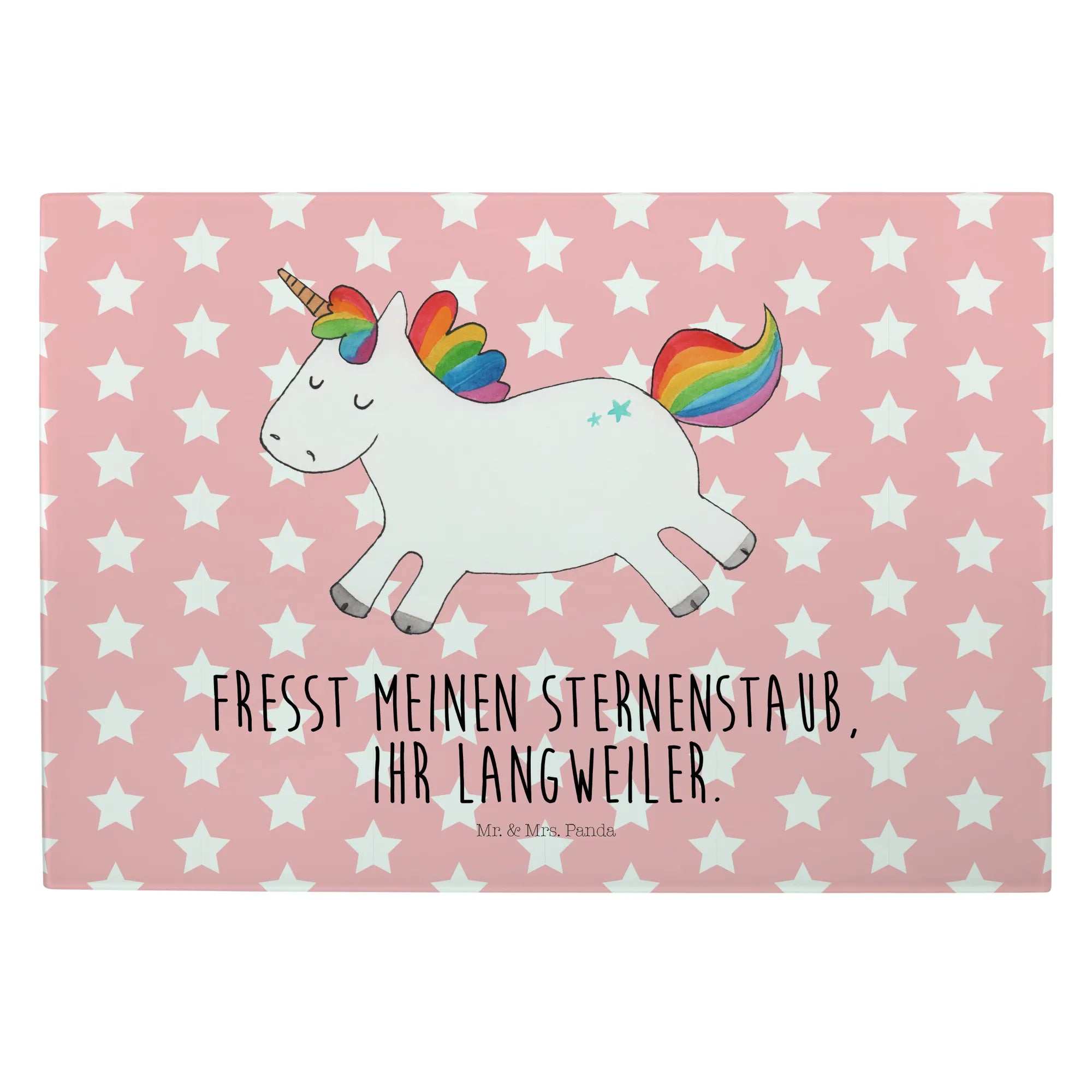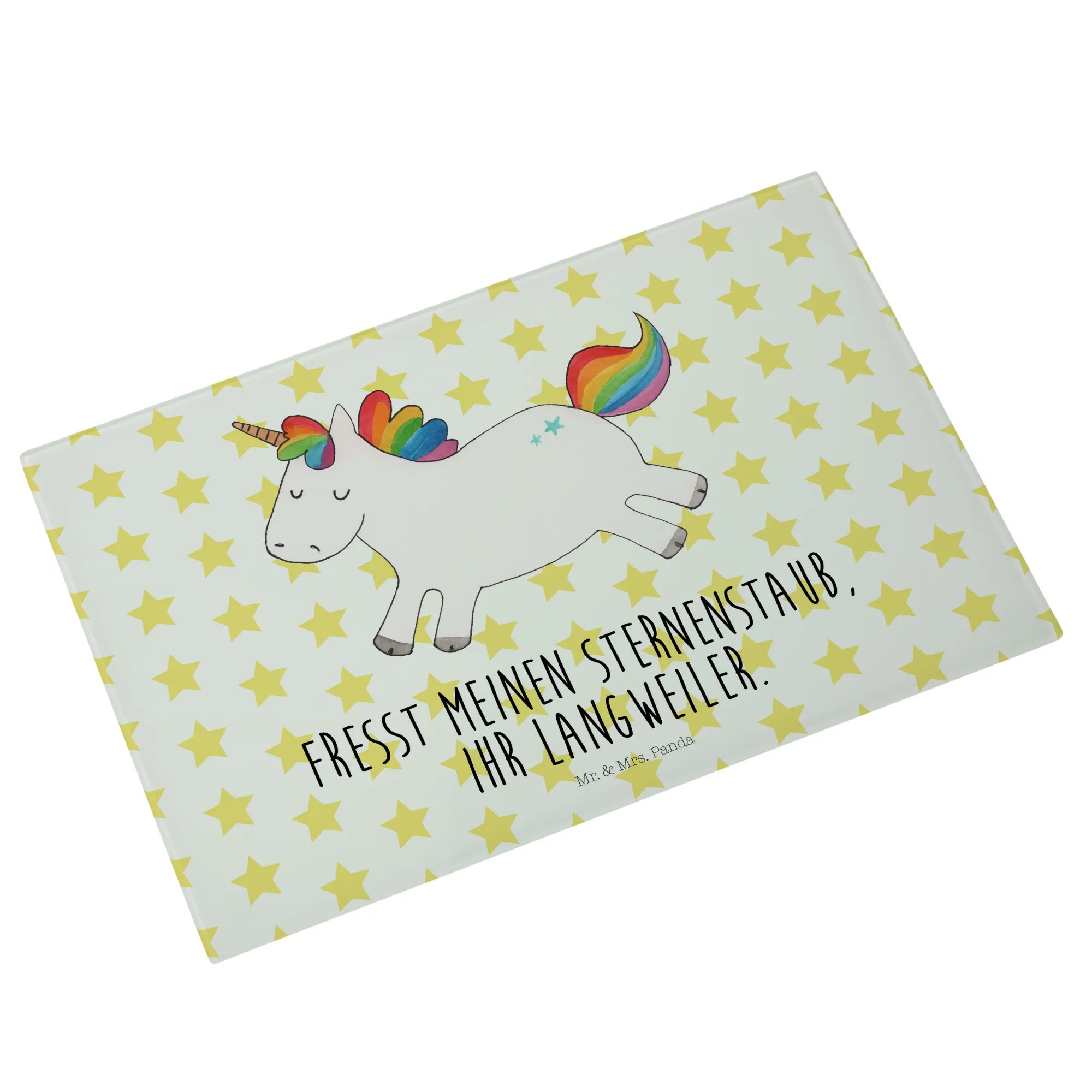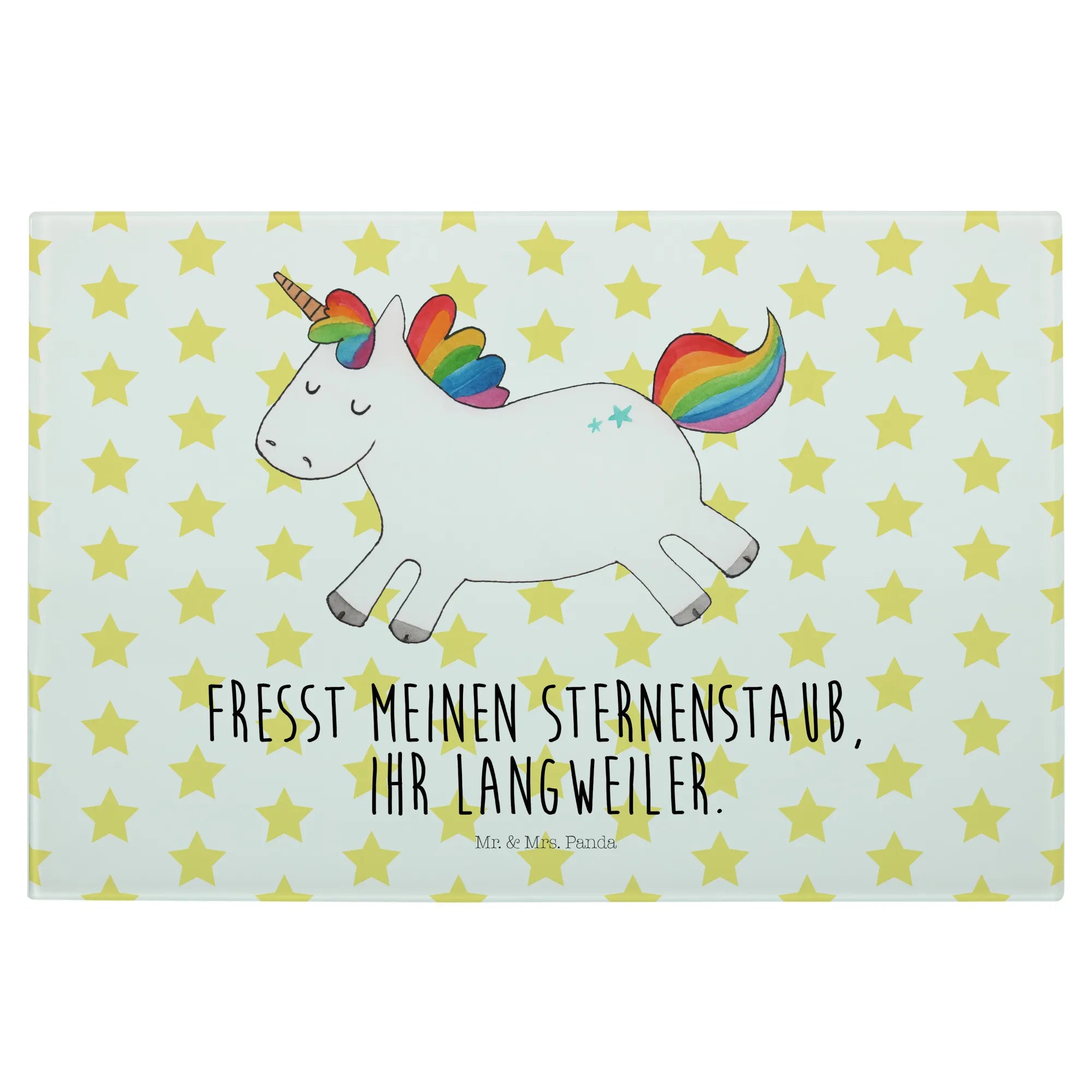 This enchanting unicorn radiates happiness and embodies the spirit of fun! It’s a playful creature, dancing through fields of cheerful adventures and showering everyone it meets with joy and laughter. Its vibrant presence reminds us that life is meant to be celebrated. With the slogan, 'Fresst meinen Sternenstaub, ihr Langweiler,' it playfully challenges you to step outside of your usual routine and savor the little joys that brighten your day. This motif is a reminder that life is not just about responsibilities but also about finding that spark of joy in each moment. So let this magical unicorn inspire you to break free, unleash your inner child, and embrace the joys of living, one bright moment at a time.