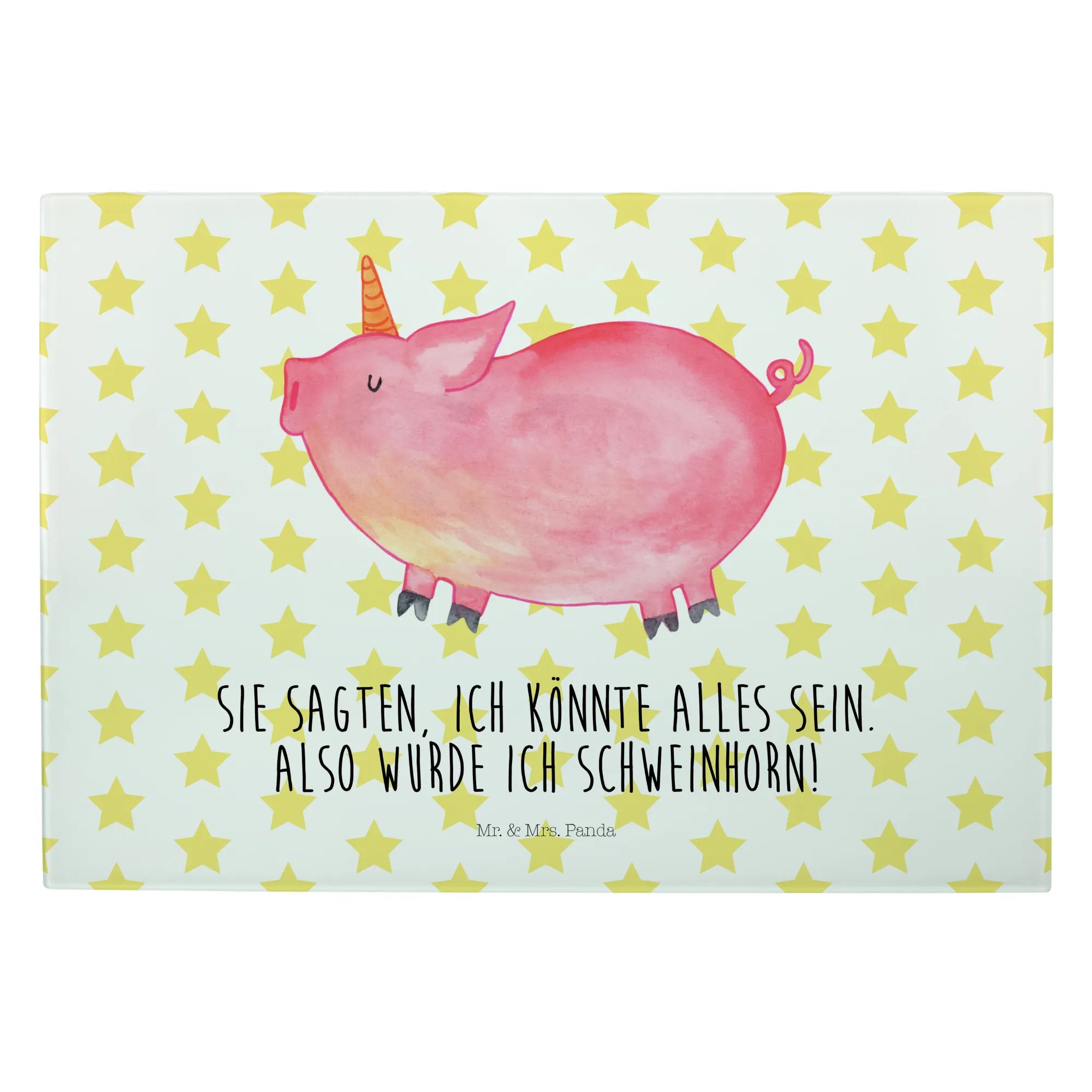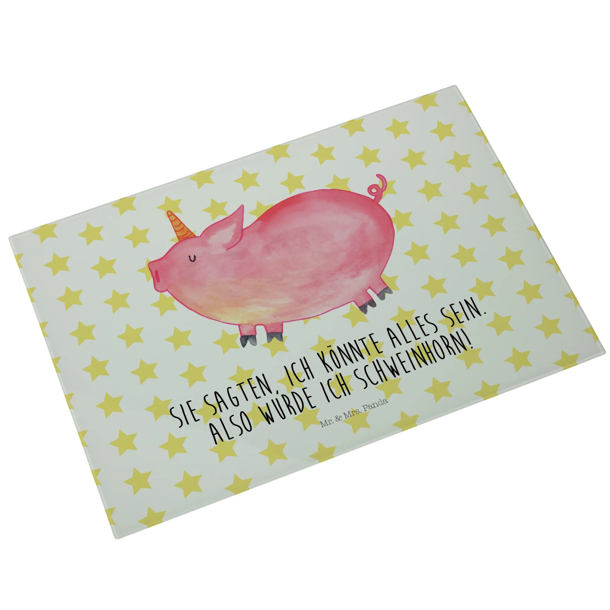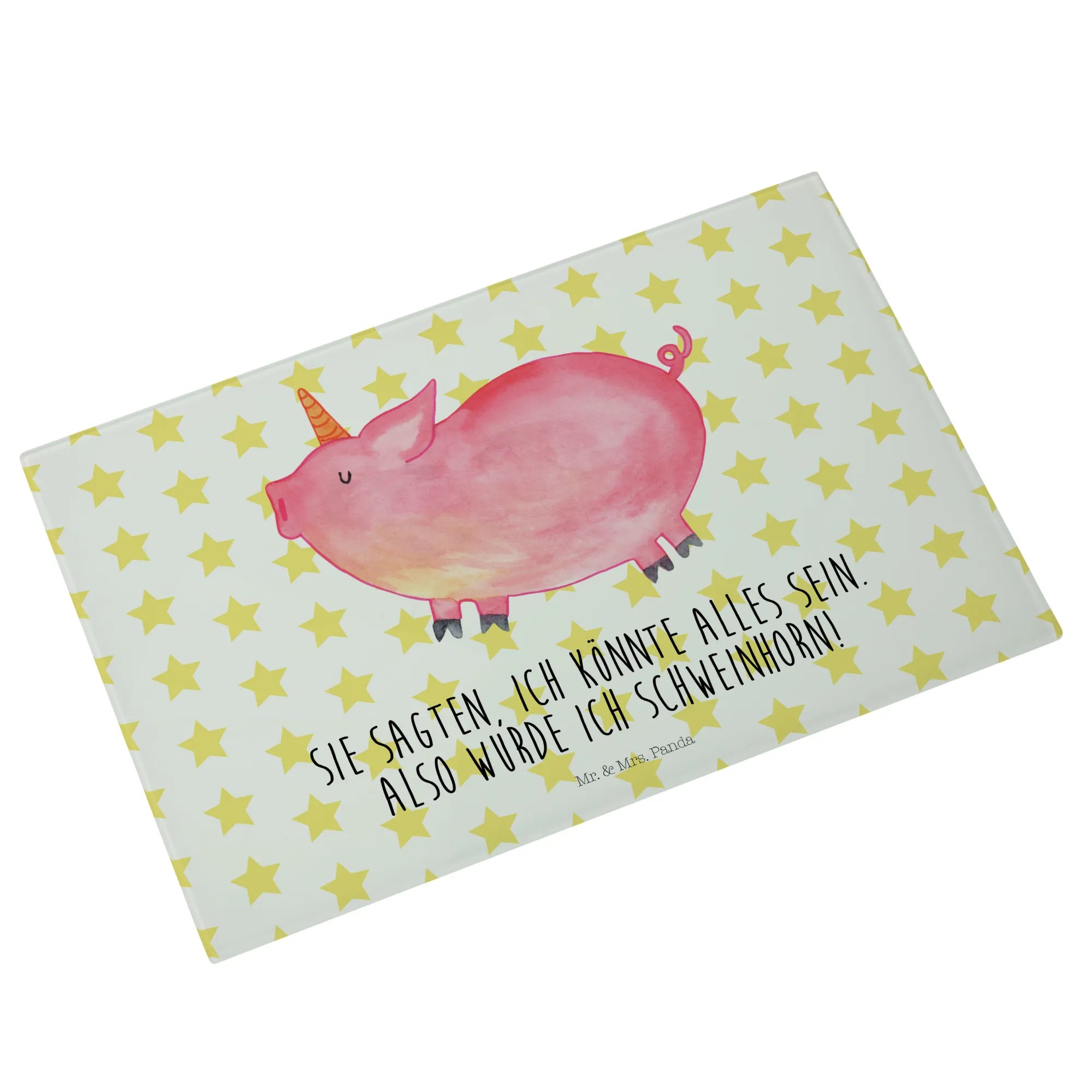 Glass chopping board unicorn Pig - Medium Glas Schneidbrett - with saying - White