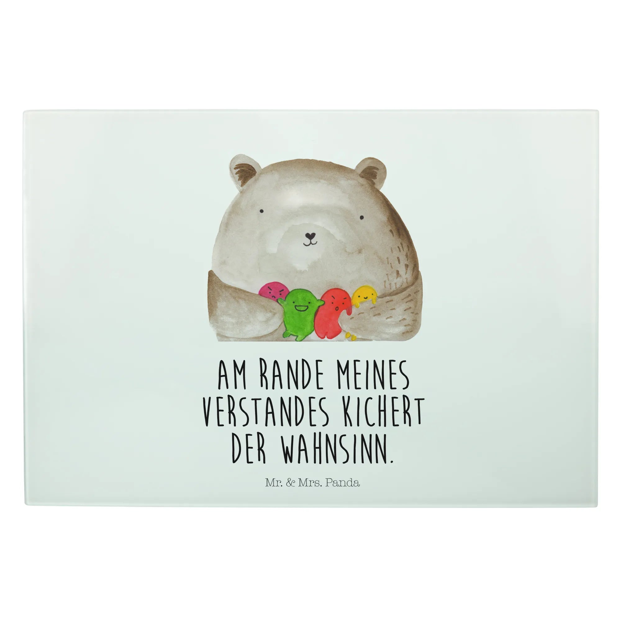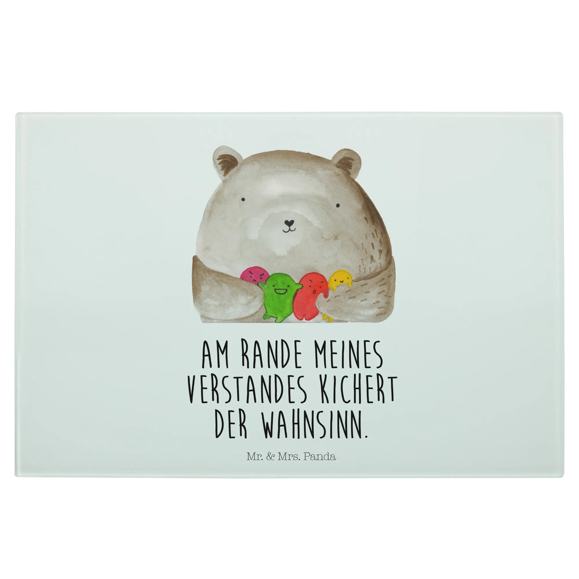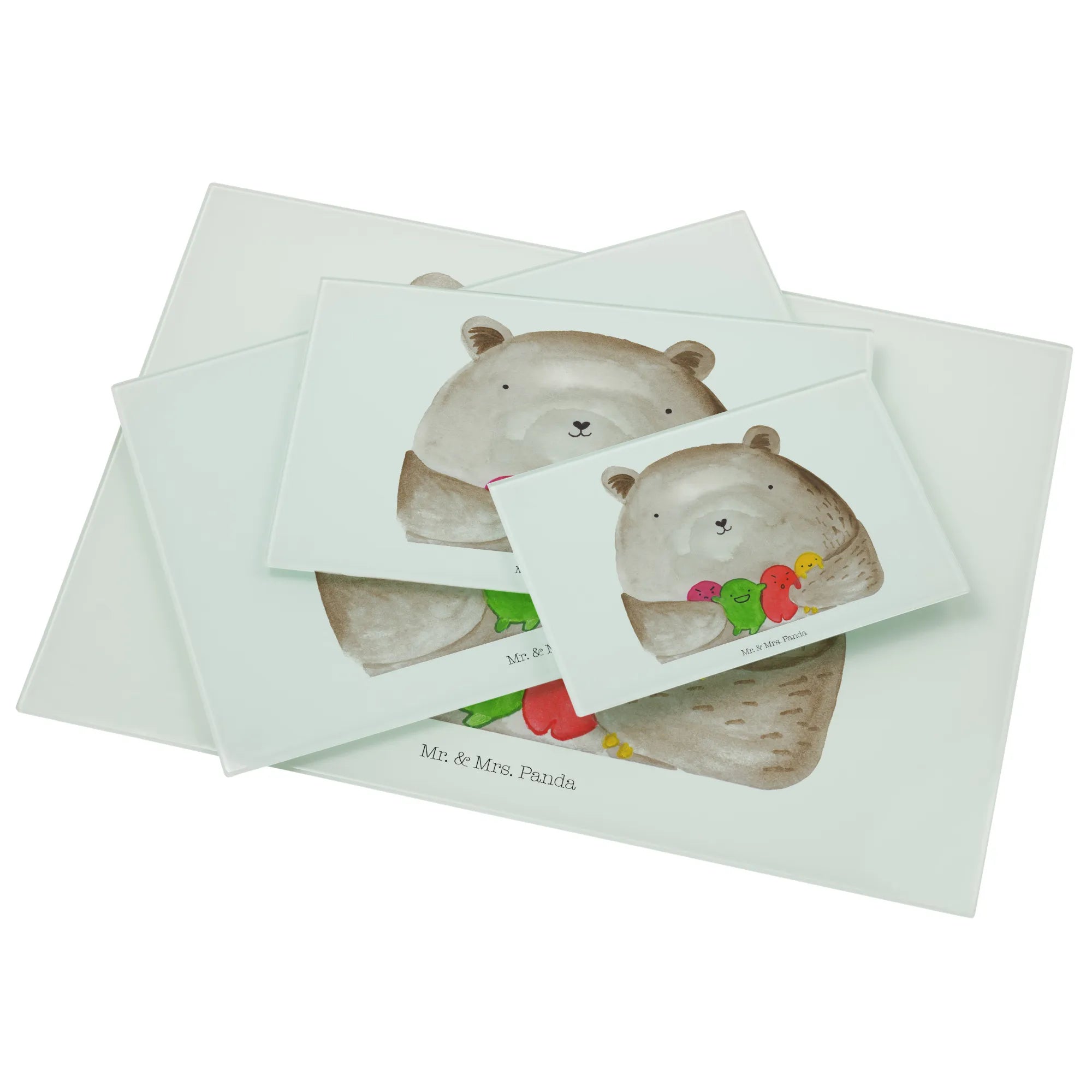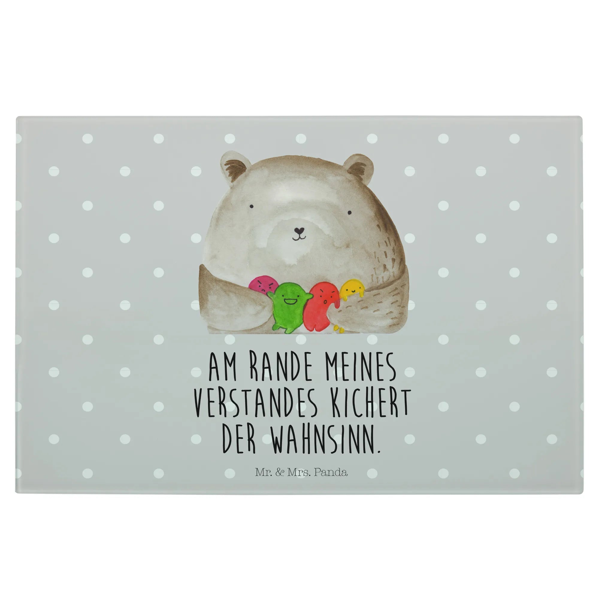 Introducing the spectacular XL glass chopping board from Mr. & Mrs. Panda, designed specifically for those who adore all things bear-related! This unique and sturdy glass cutting board features an endearing "Bear feeling" motif, showcasing a lovely bear surrounded by a colorful assortment of round, playful balls that represent its feelings. It's not just a functional kitchen tool; it’s also a delightful piece of art that will brighten your cooking space and bring joy into your culinary adventures.