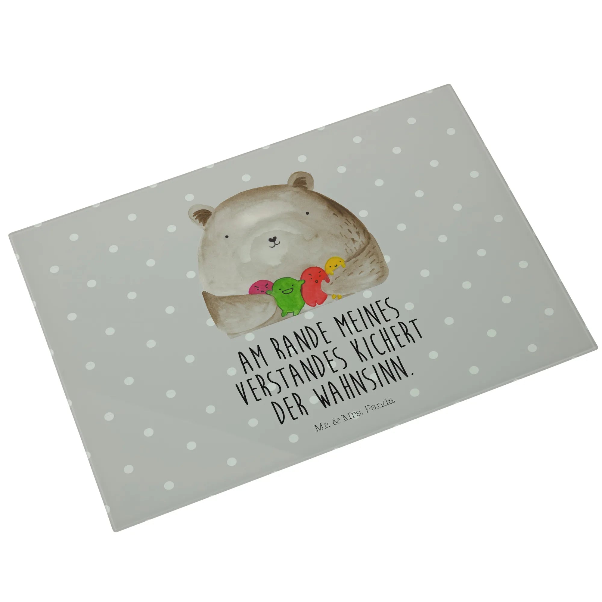 XL glass chopping board bear Feeling - Medium Glass Cutting Board - with saying - Grey Pastel