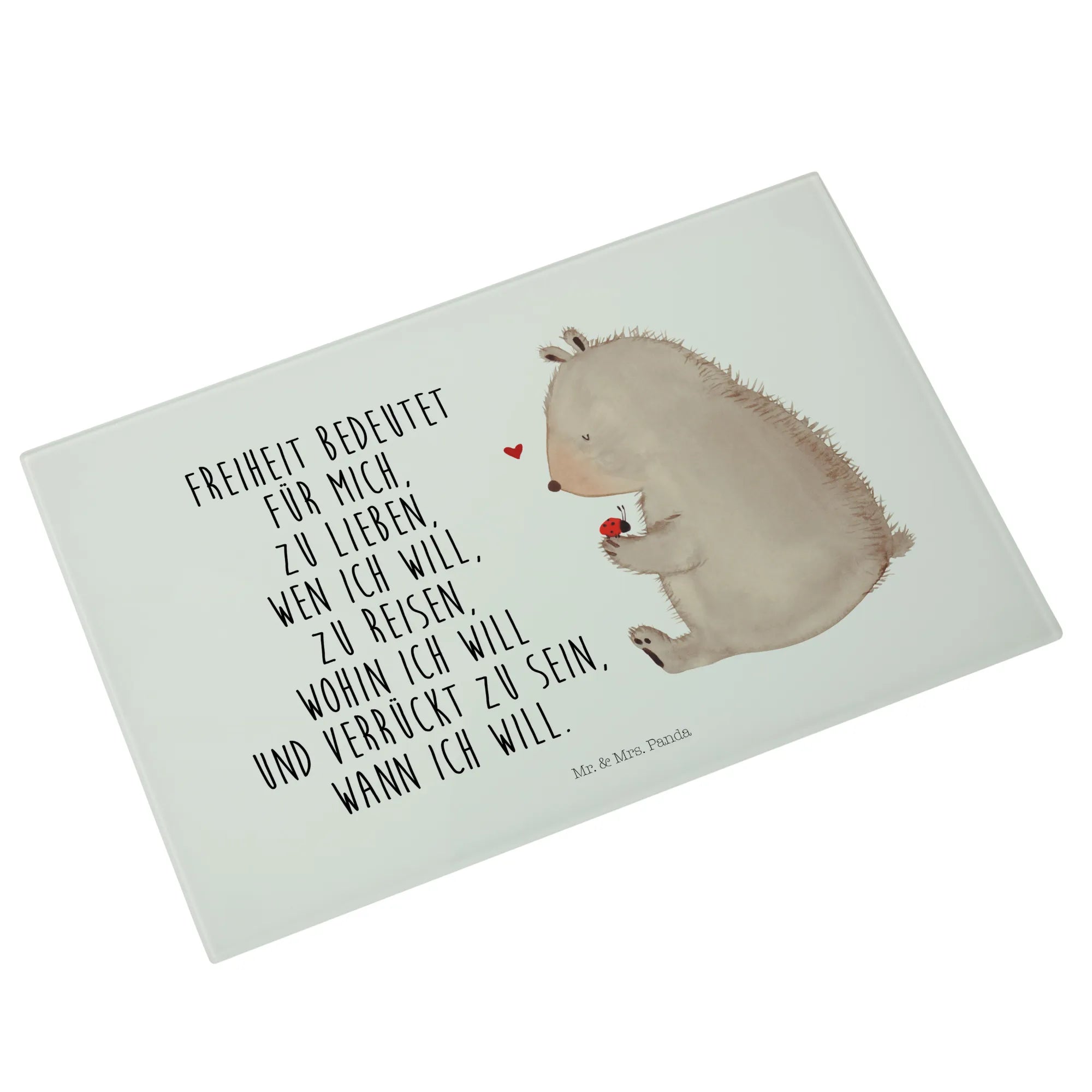 XL glass chopping board bear ladybug - Medium Glass Cutting Board - with a saying