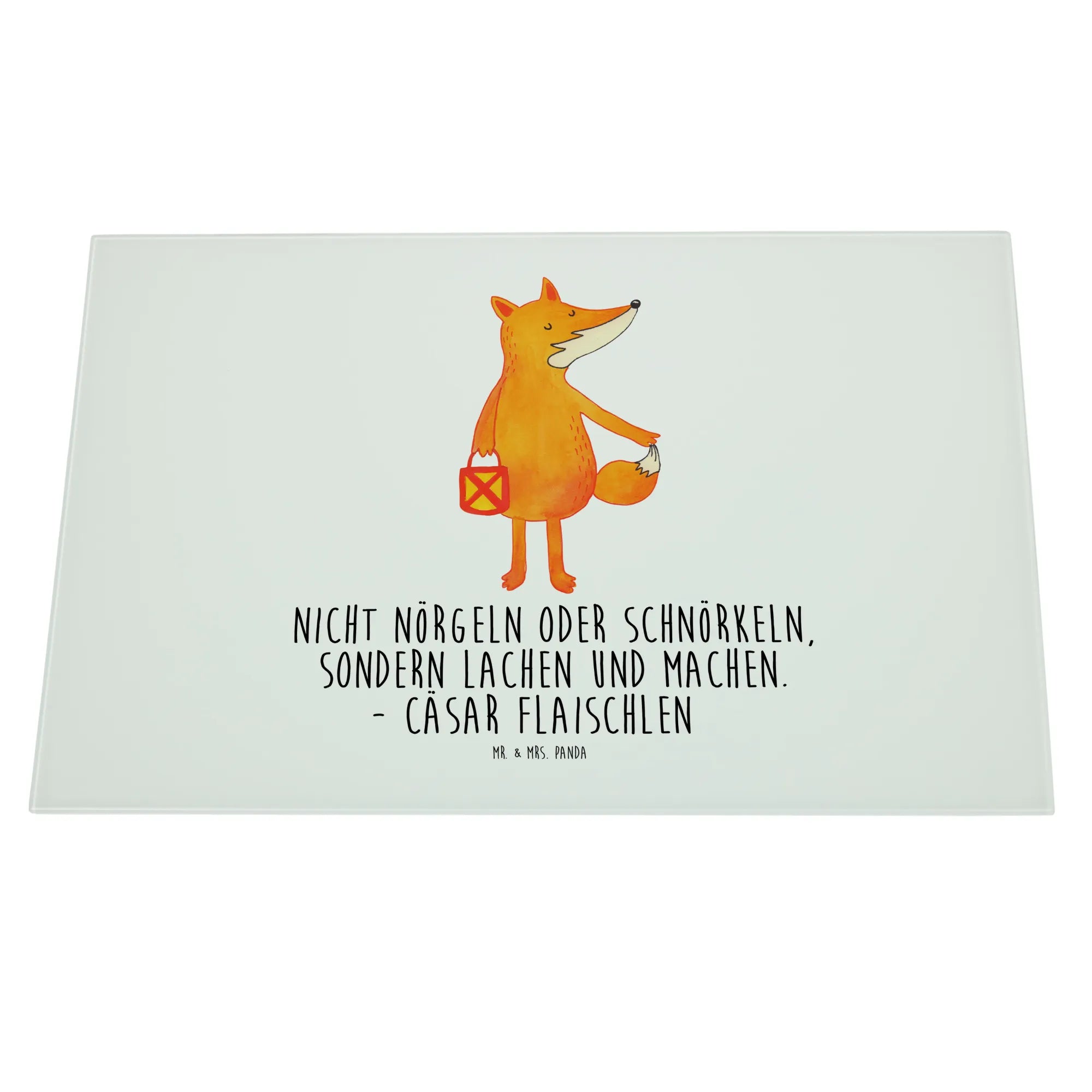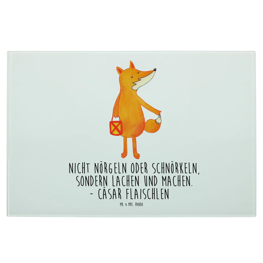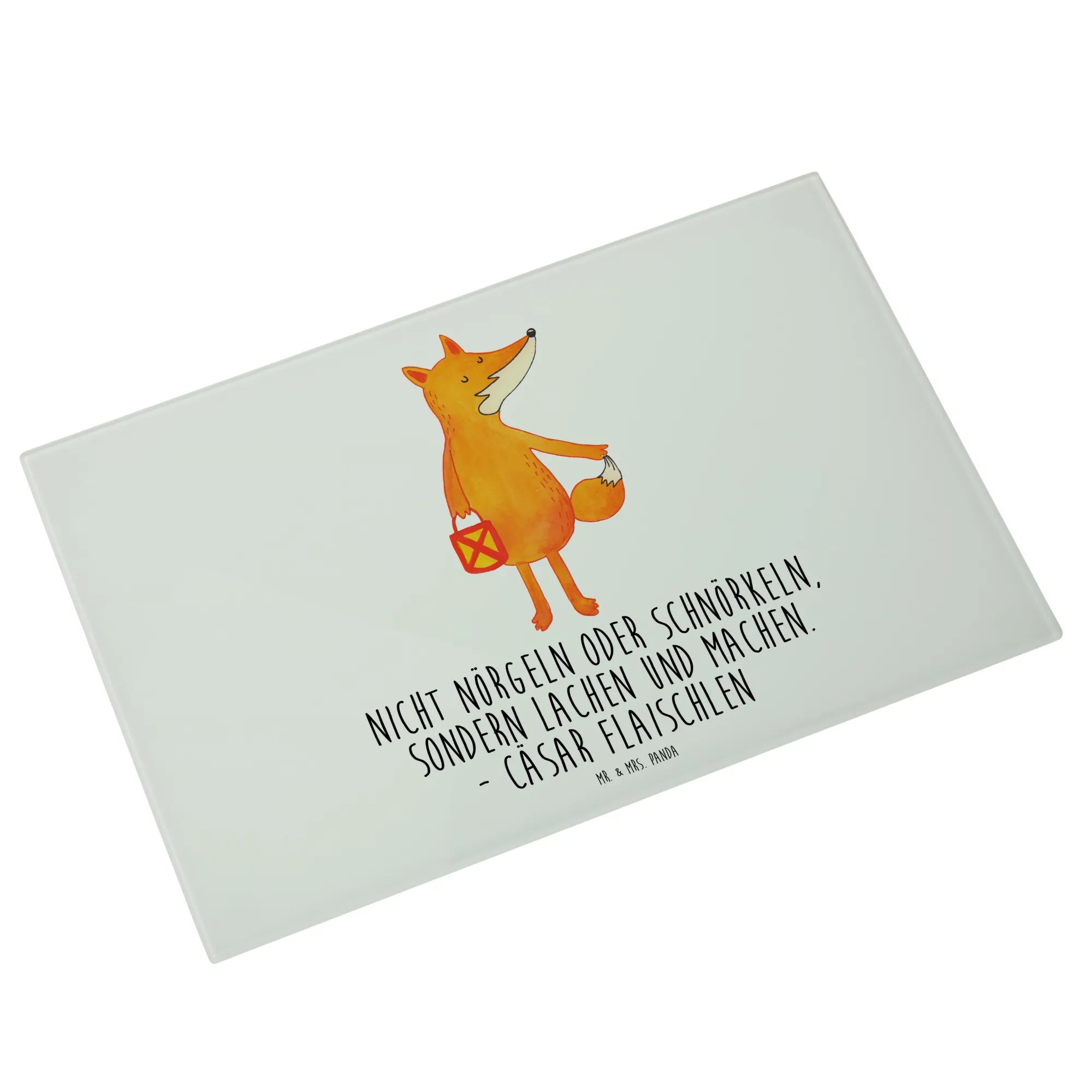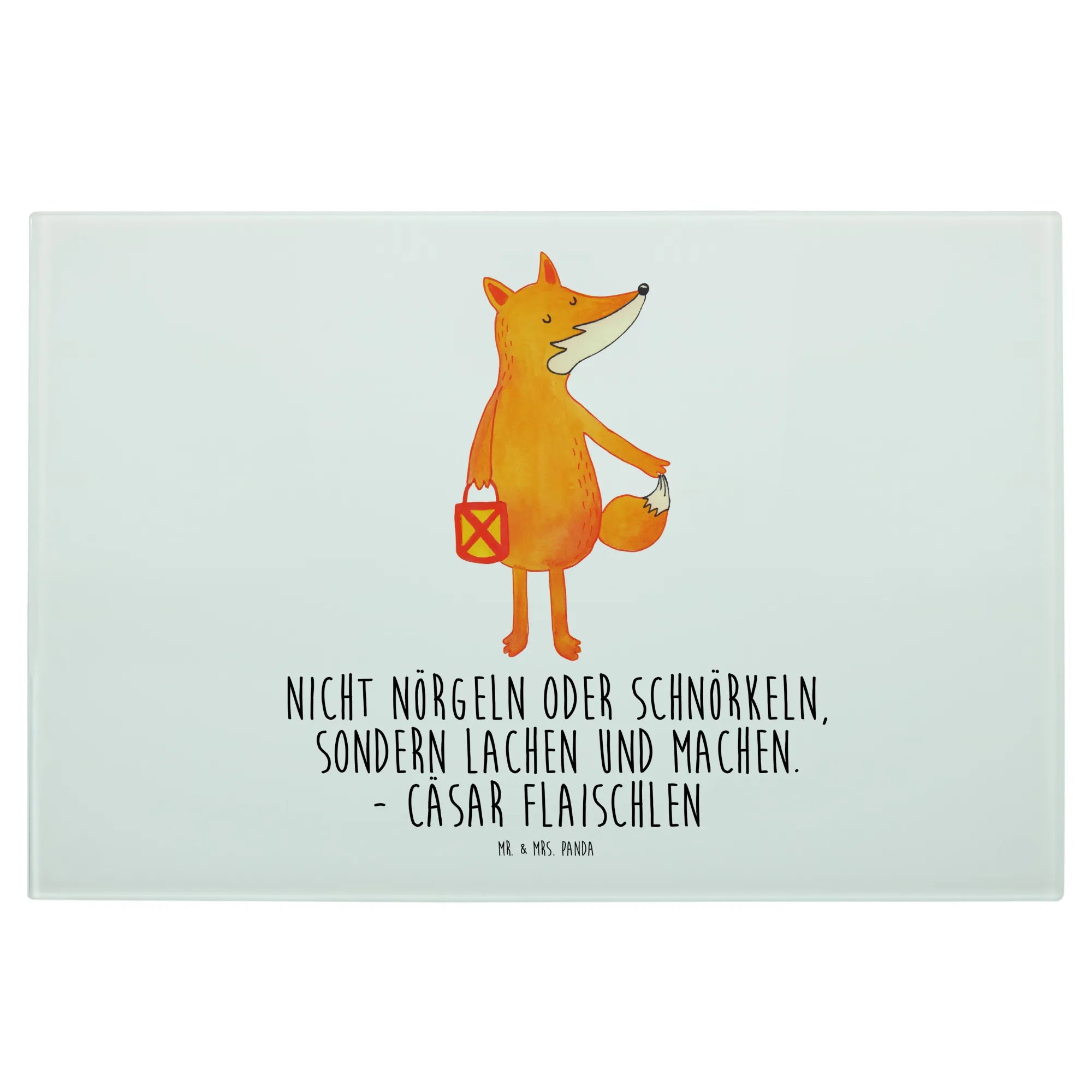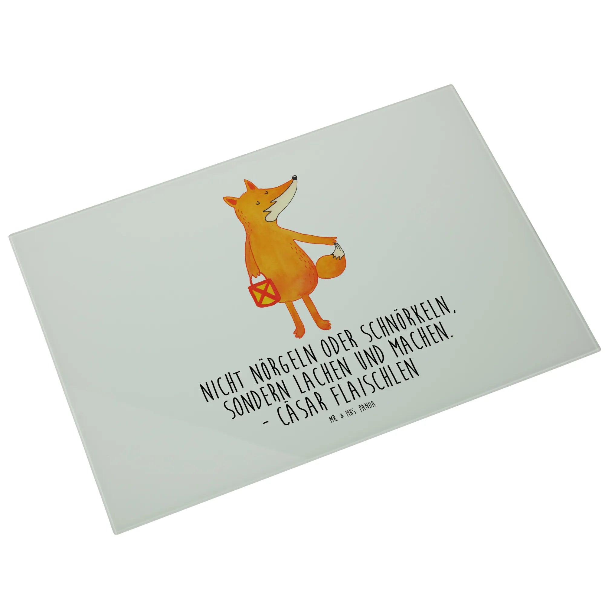XL glass chopping board Fox Lantern - Medium Glass Cutting Board - with saying - White