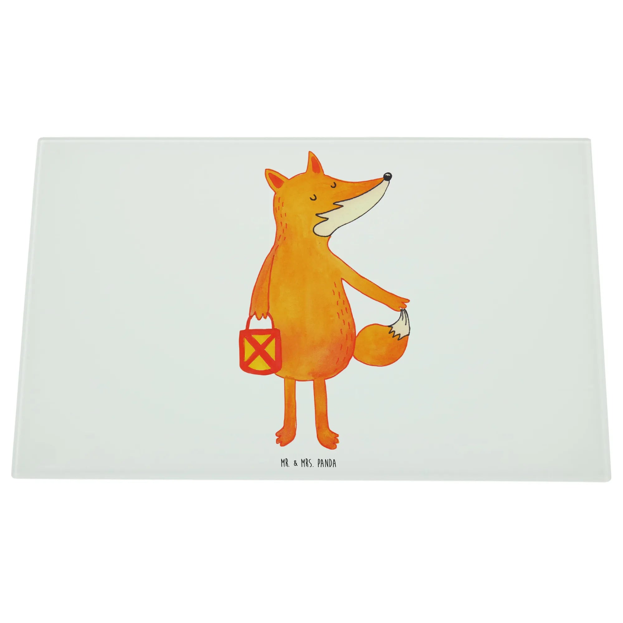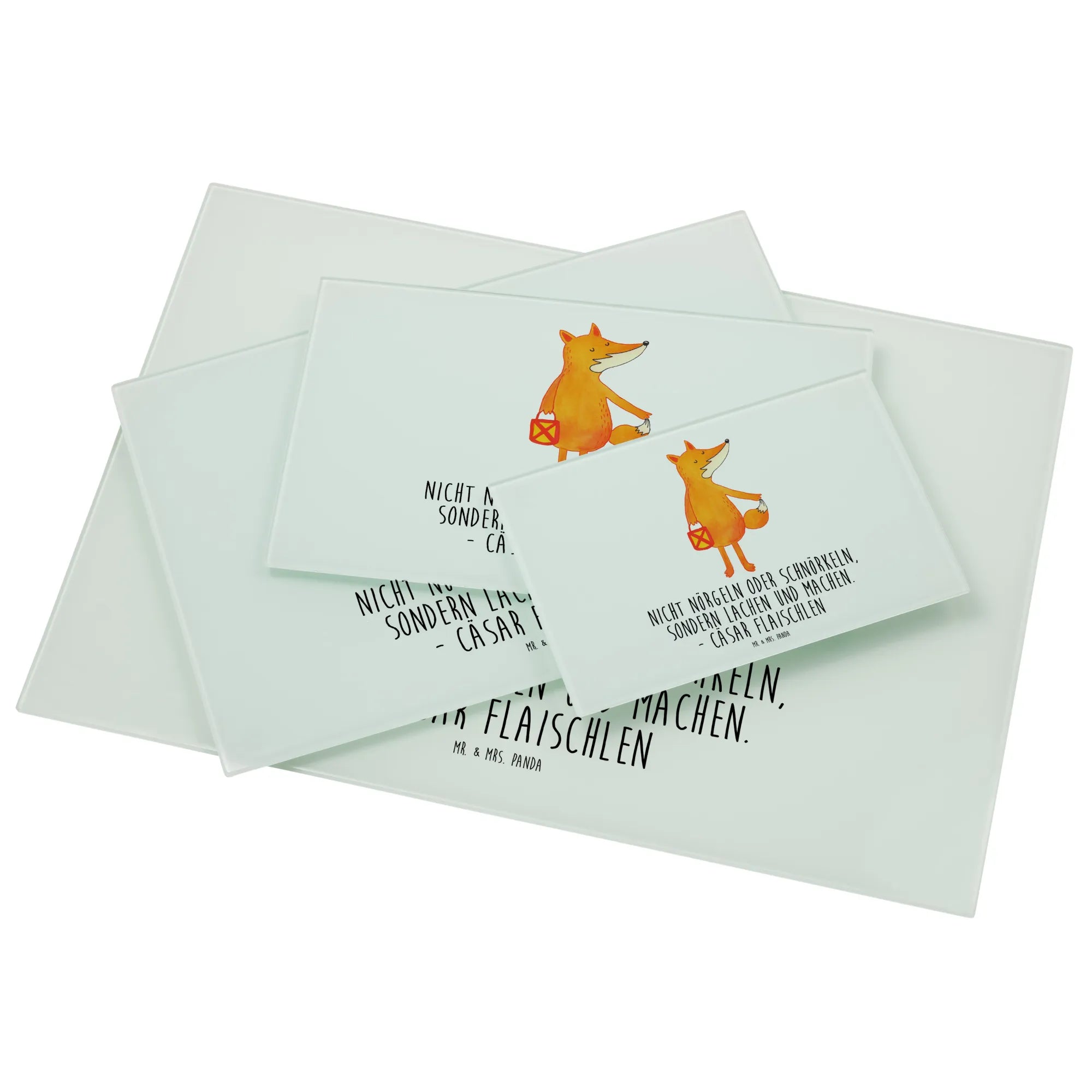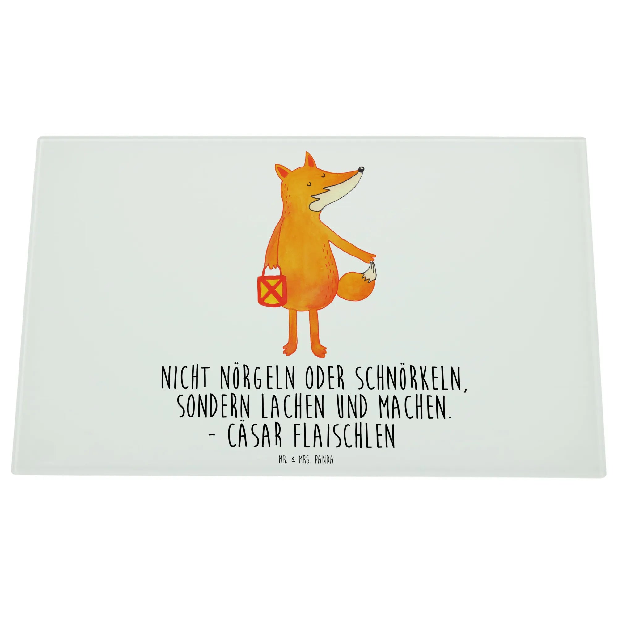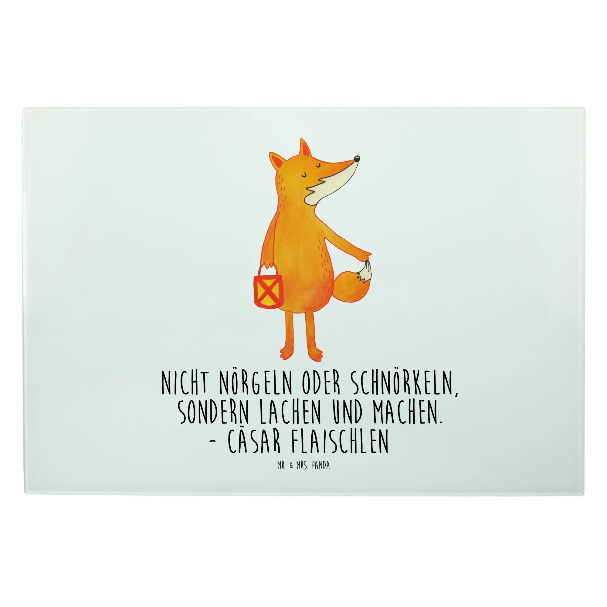 XL glass chopping board Fox Lantern - Medium Glass Cutting Board - with saying - White