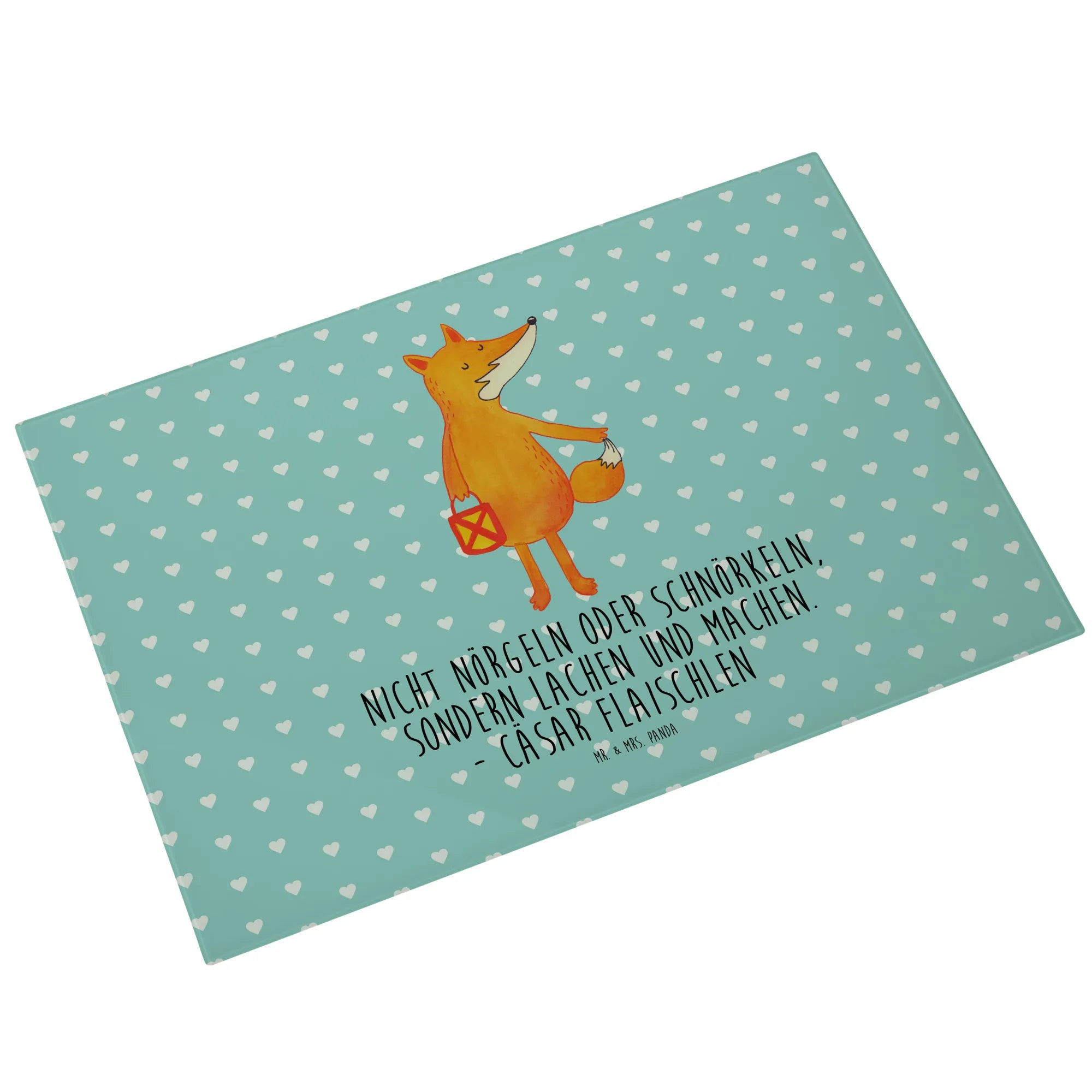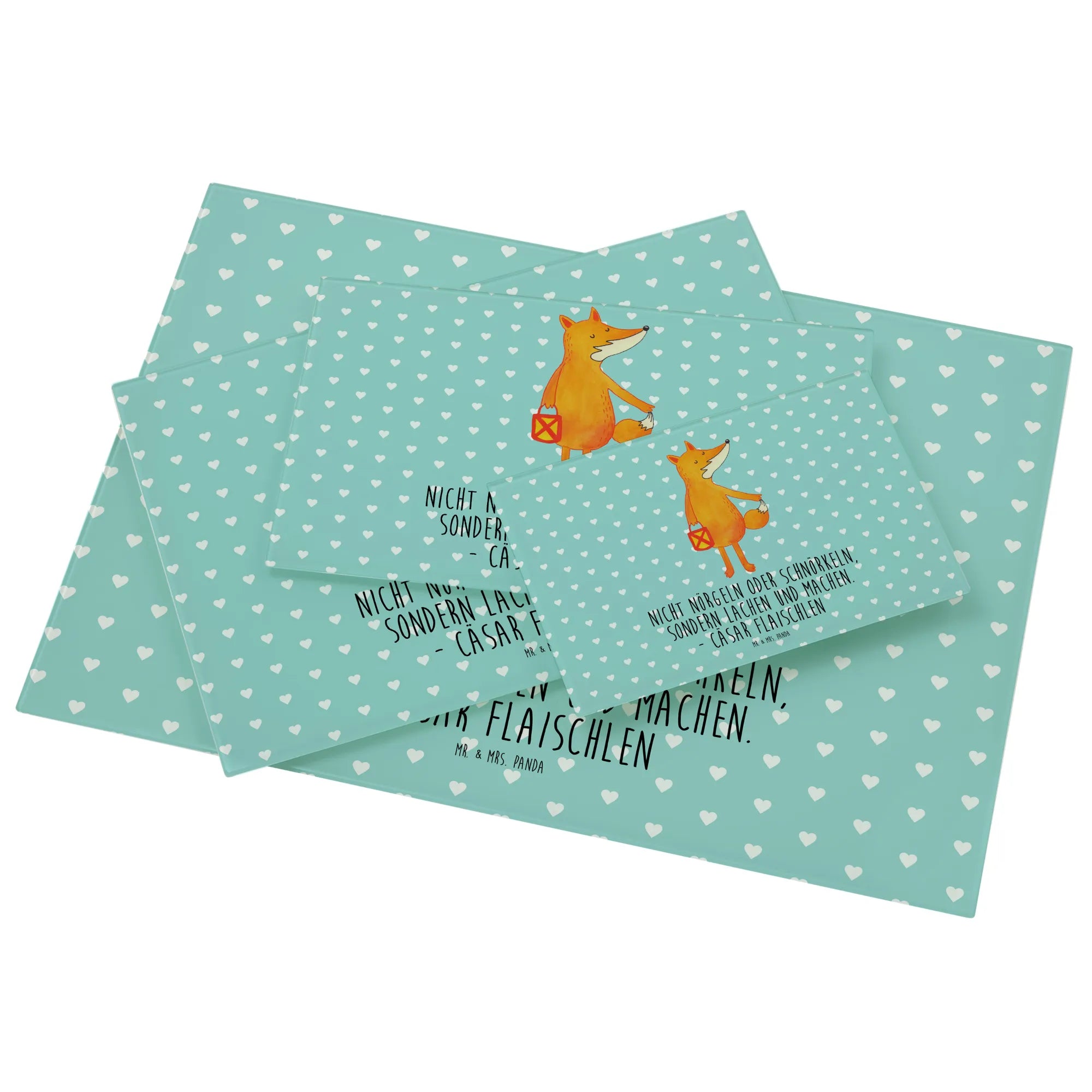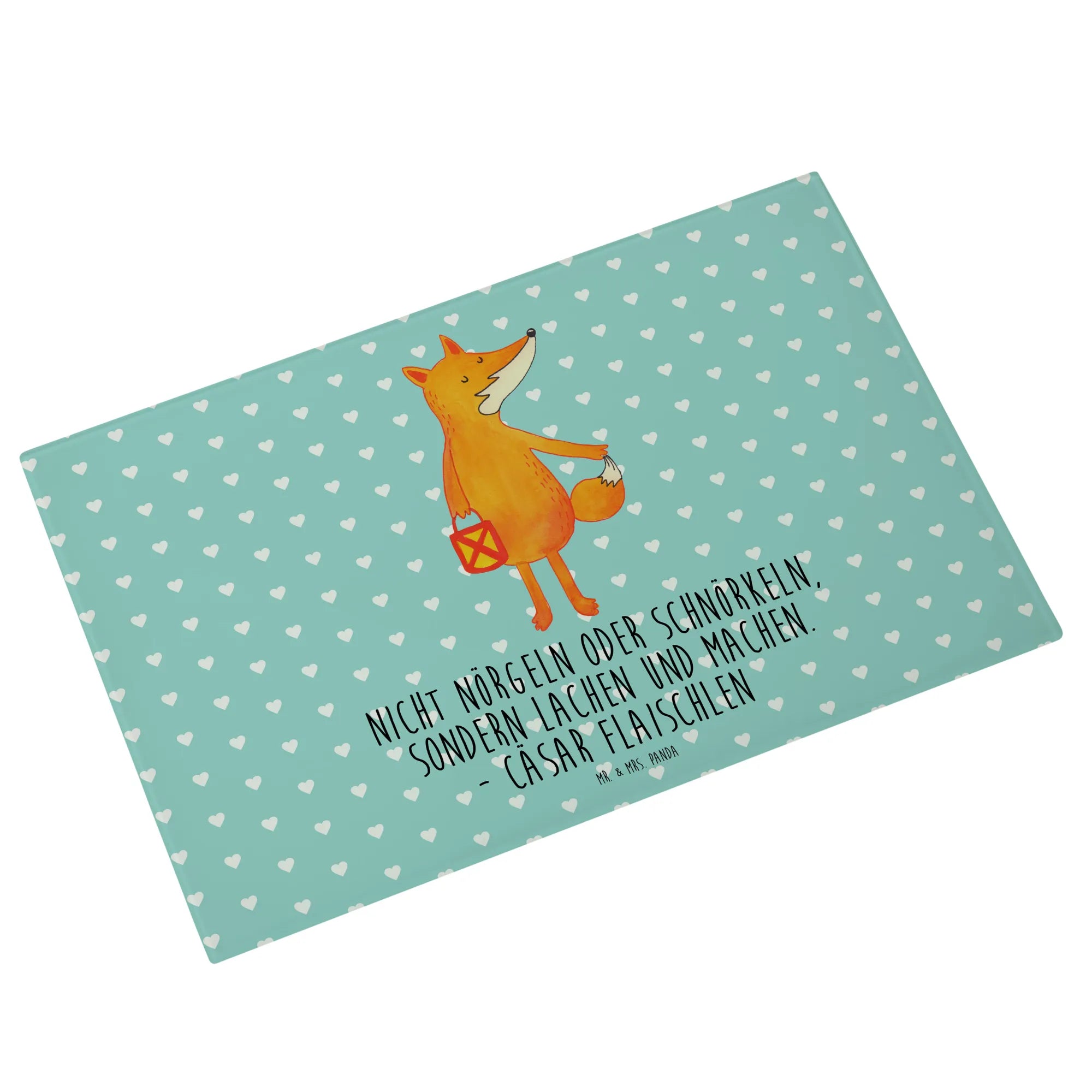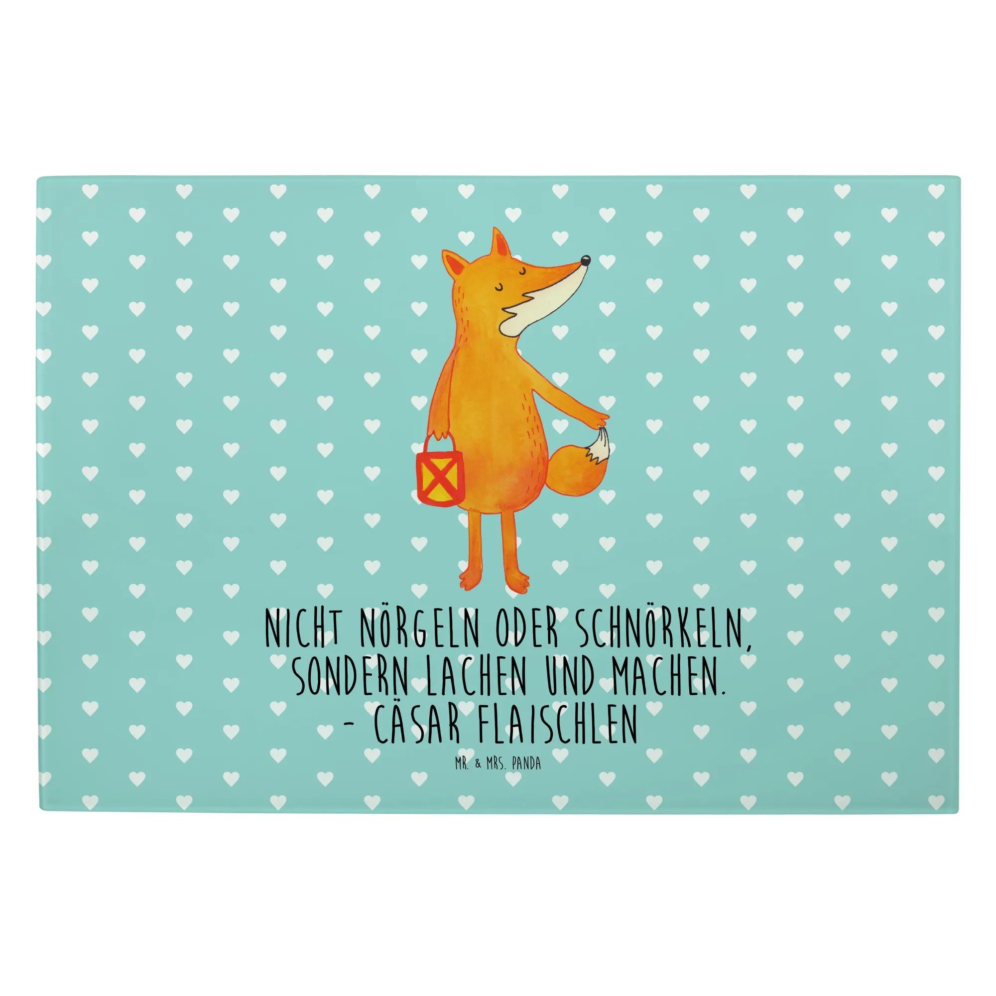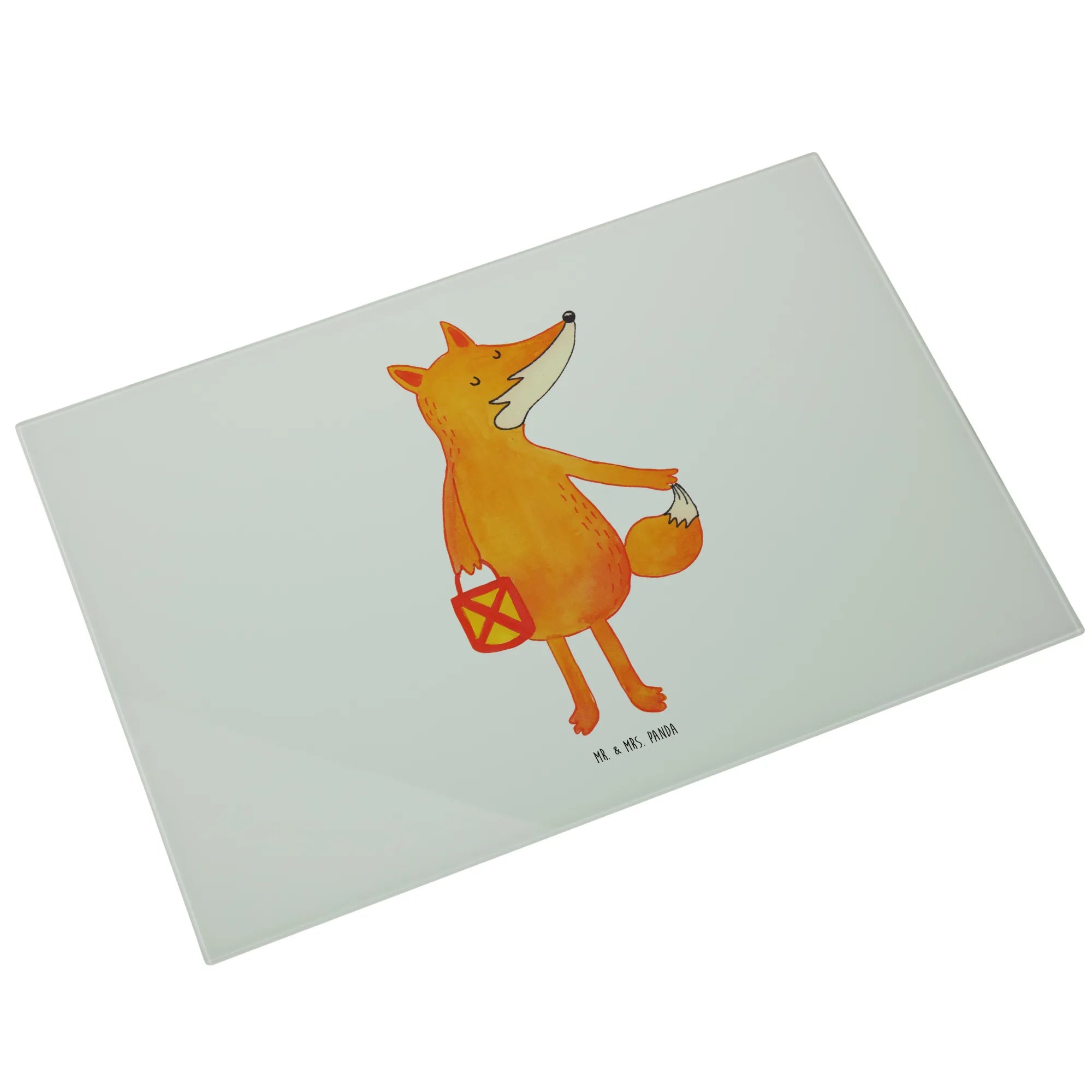 XL glass chopping board Fox Lantern - Medium Glass Cutting Board - with saying - White