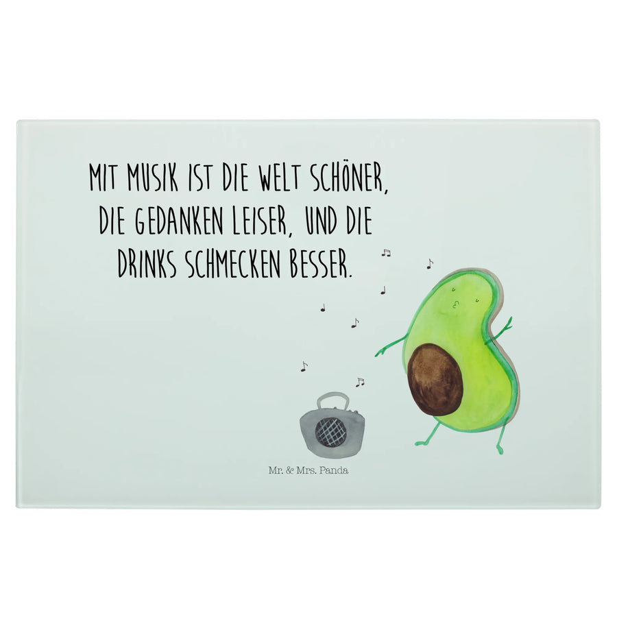 Perfectly crafted from premium, scratch-resistant glass, it serves as a sturdy surface for all your food preparation needs. This unique chopping board showcases a cute avocado dancing joyfully in front of a Ghettoblaster, bringing a splash of fun to your kitchen.