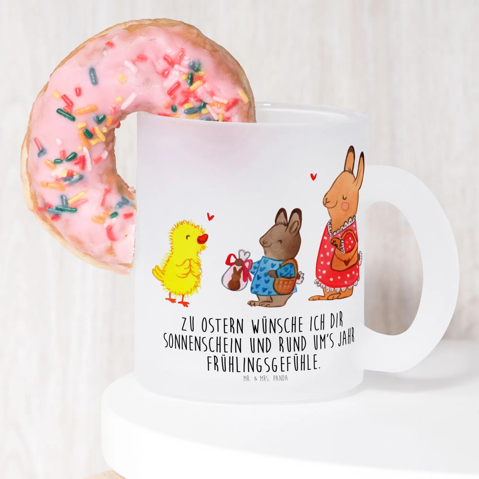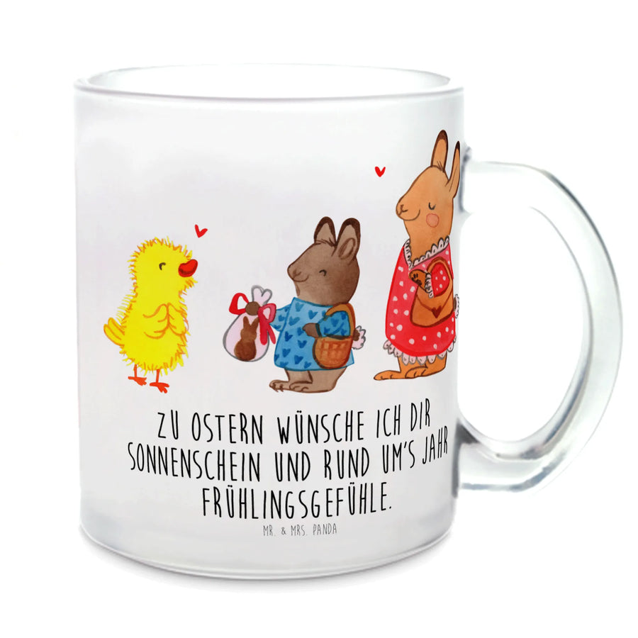 Picture a cheerful scene where a rabbit mama in a lovely summer dress is busy helping her little one gift a delightful chocolate Easter bunny to a fluffy chick. This adorable moment captures the joyful essence of the season. The saying, "Zu Ostern wünsche ich dir Sonnenschein und rund um's Jahr Frühlingsgefühle," perfectly embraces this theme of giving and sharing love during Easter celebrations.