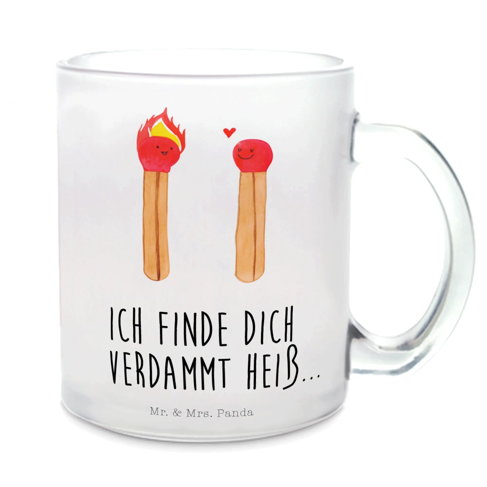 Whether it’s for a romantic gesture, an engagement celebration, or simply to enjoy a cozy cup of tea together, this elegant glass tea cup makes for the perfect gift. Featuring a beautiful motif of two cheerful matches, this cup beautifully symbolizes the spark of love and connection between two people. The left match has a vibrant red head and flames, embodying the passion that ignites when two hearts come together, while the right match, with a smiling face and a heart symbol in between, represents the joy of companionship.