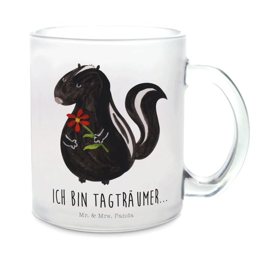 Glass tea cup skunk flower - with a saying