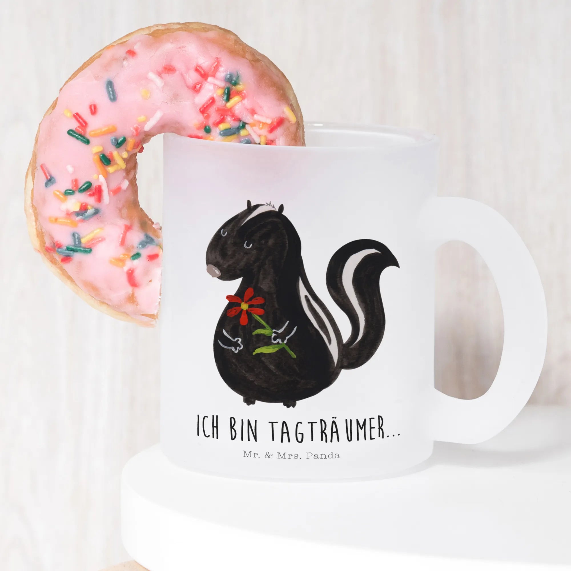 Step into a dreamy world with our Skunk Flower! This adorable skunk, adorned with a whimsical flower crown, encapsulates the essence of nature’s charm with a touch of wild spirit. Emblazoned with the saying 'Ich bin Tagträumer,' it encourages you to nurture your dreams and chase after them without hesitation. Contrary to what most think of skunks, this motif showcases the beauty even in things often labeled as ‘stinkers.’ Just like our skunk, we can have a brave yet gentle heart. With every stroke of watercolor, this little daydreamer inspires you to explore your inner thoughts and whimsy. Perfect for anyone who believes in the power of positivity, the Skunk Flower playfully embodies the concept that our dreams can bloom into beautiful realities. Let it remind you that it’s okay to embrace your wild side while holding onto your daydreams with open arms. A truly delightful addition to any collection!