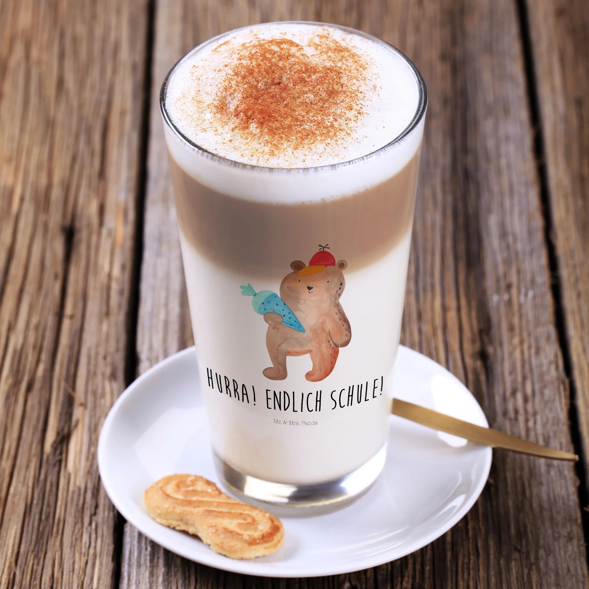 Celebrate the joyous occasion of starting school with the adorable Bear with Schultüte Glass by Mr. & Mrs. Panda! This beautifully crafted glass isn't just a simple drinking vessel; it's a charming piece of art that captures the excitement of the first day of school. At 150 mm tall and 88 mm wide, this glass is perfect for sipping your favorite cappuccino, latte macchiato, or even a refreshing long drink. Made from thick-walled premium glass, it offers durability along with a delightful matte finish that feels great in your hand.