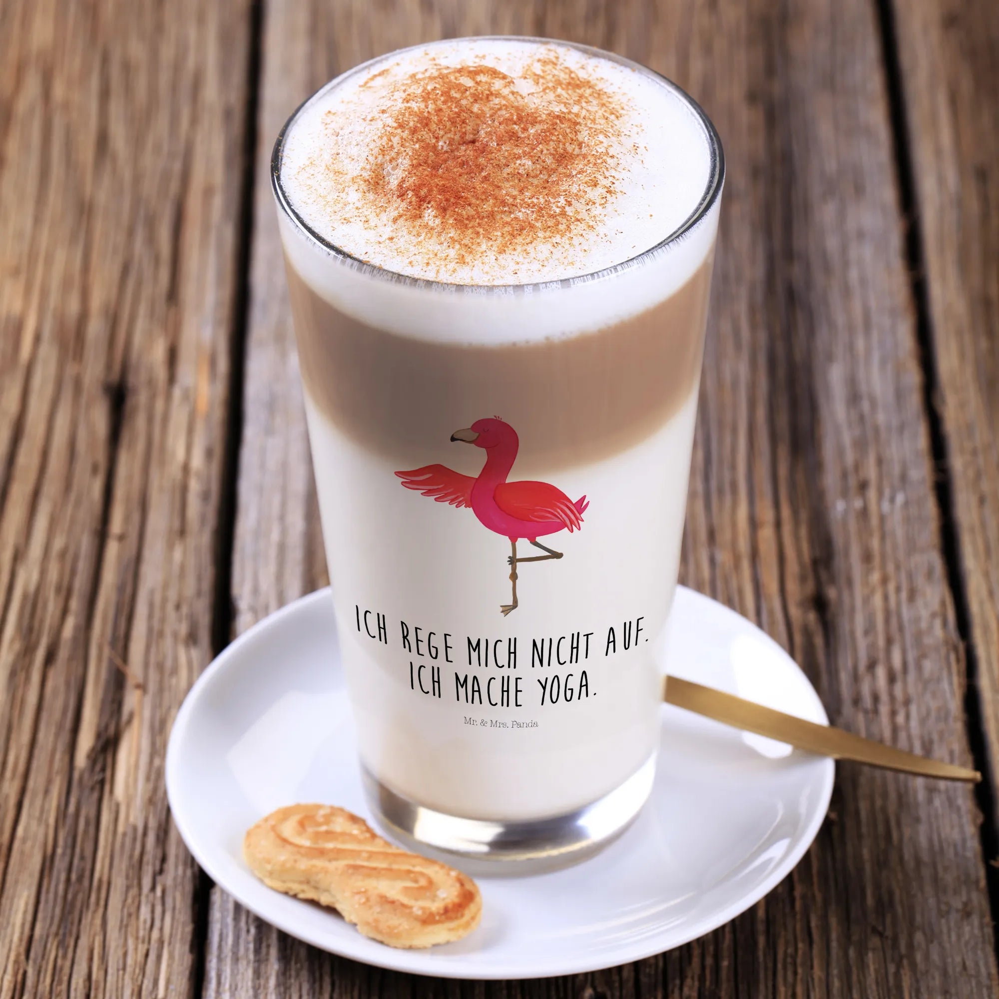 Glass flamingo yoga - with saying