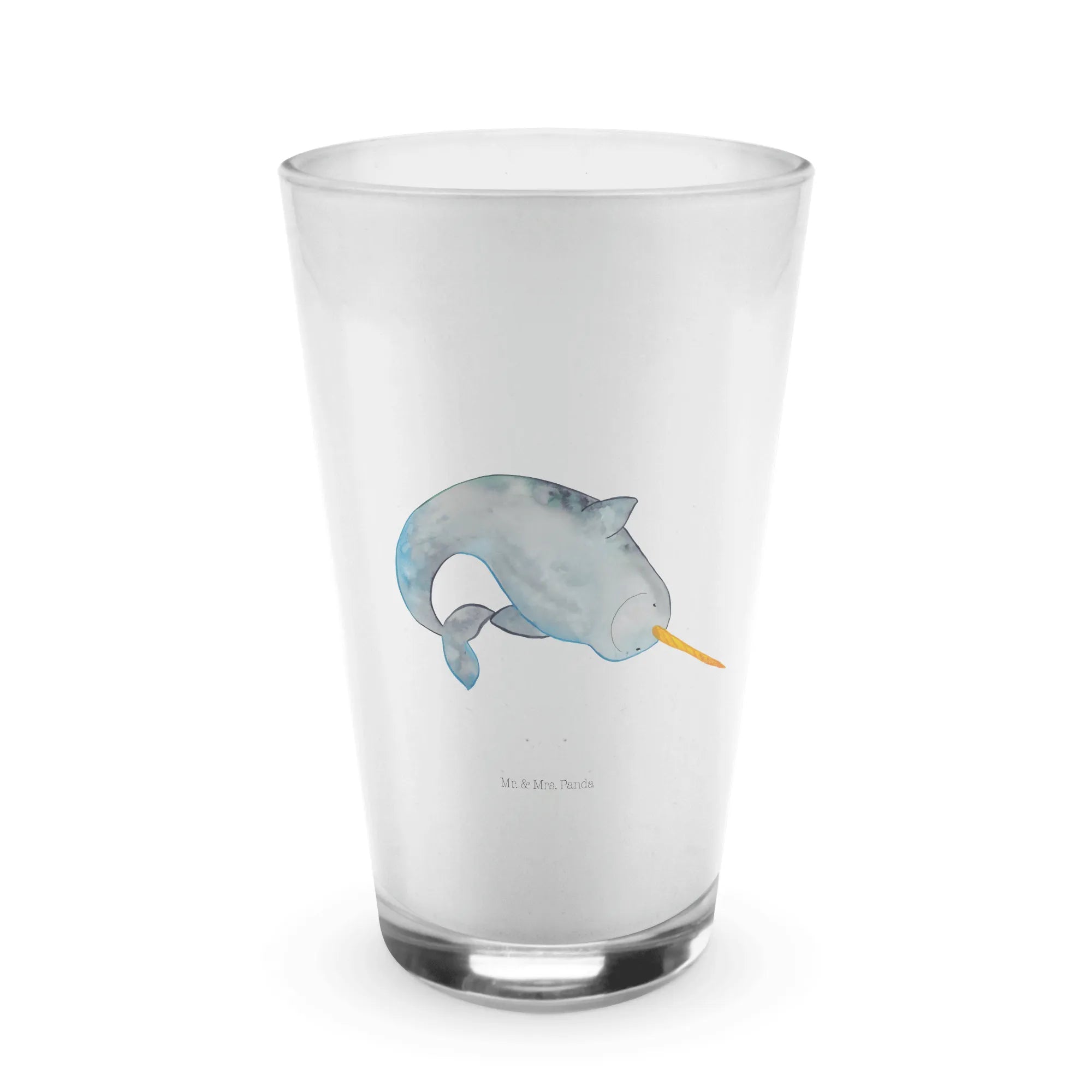 Dive into an ocean of charm with the delightful Mr. & Mrs. Panda Narwhal Glass, perfect for bachelorette parties, housewarming gifts, or simply treating yourself! This exquisite glass isn't just any drinking vessel; it’s a tribute to the magic of the marine world, adorned with a lovingly hand-drawn narwhal that brings a touch of whimsy to your coffee or latte macchiato. Made from premium glass, this stunning piece combines functionality with the enchanting aesthetics of aquatic life.