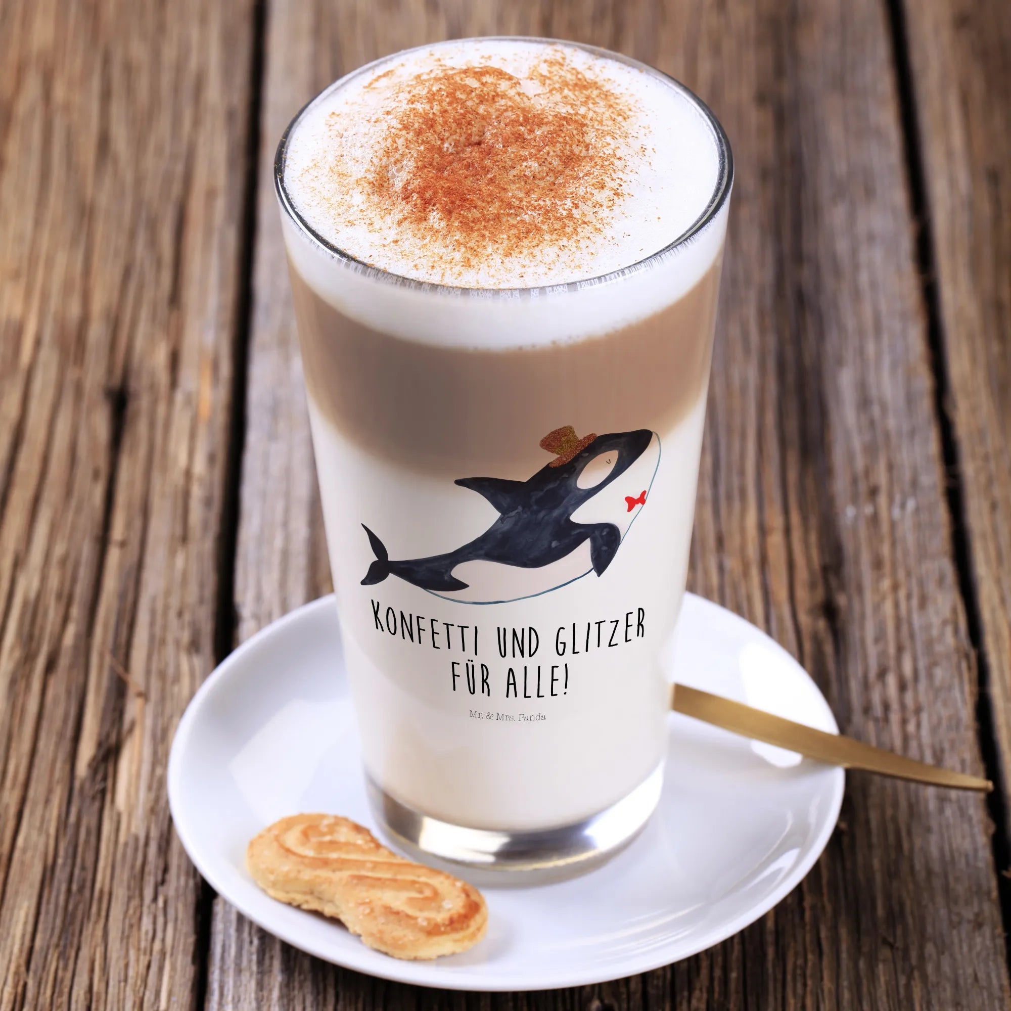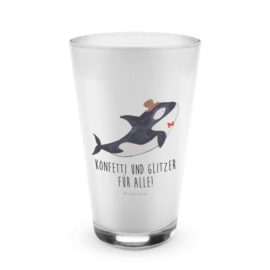 Introducing our playful orca, the perfect symbol of celebration! With its white belly and sleek black back, it wears a lovely floral cylinder hat that brings a smile to your face. Alongside a cheeky little red fish, it's ready to brighten up any occasion. The saying 'Konfetti und Glitzer für alle!' embodies the joy and glitter of life’s special moments. Whether for a birthday bash or just a gathering, this orca motif will remind you that every celebration deserves a little sparkle!