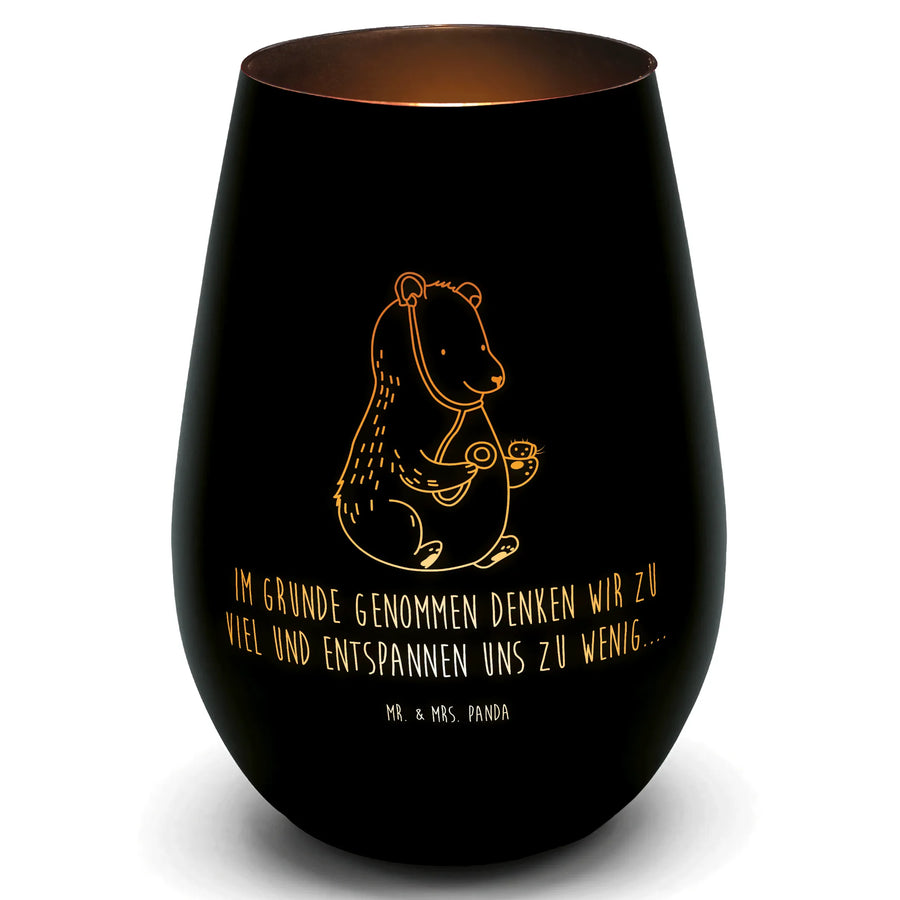 Discover the Gold Lantern by Mr. & Mrs. Panda! Measuring 120 mm (5 inch) in height and 85 mm (3 inch) in diameter, this elegant glass lantern is a beautiful addition to any space. Engraved with our charming designs, it creates a cozy and warm ambiance, perfect for romantic evenings or festive summer nights. It fits standard tealights perfectly and comes with wind protection for those breezy nights. Plus, as the candle burns, an enchanting matte effect emerges, making it even more captivating. While this lantern is dishwasher safe, we recommend gentle handwashing to preserve its beauty. Brighten those special moments with the Gold Lantern and let its warm glow bring joy!