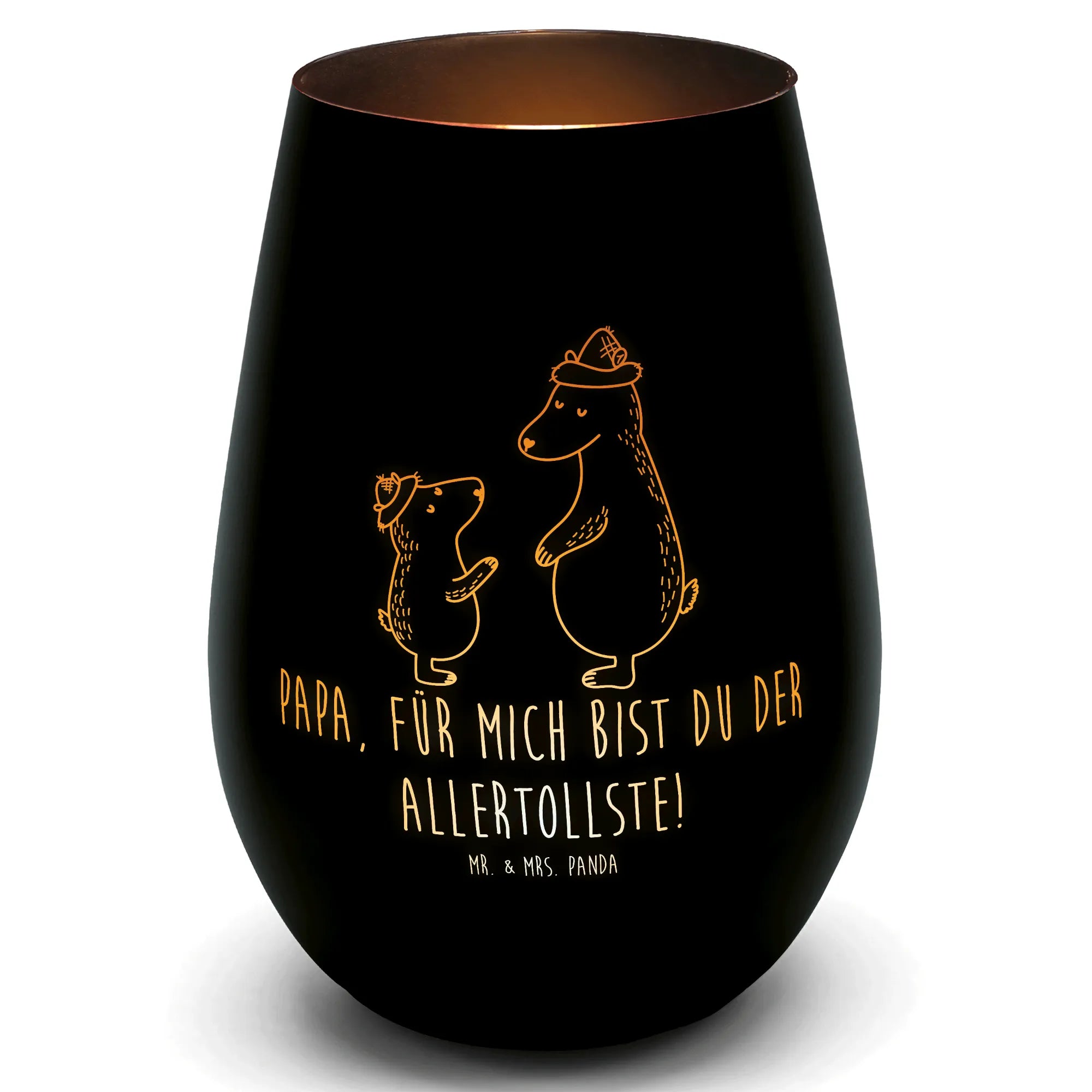 Das bezaubernde Gold Windlicht von Mr. & Mrs. Panda gibt deiner Einrichtung einen Hauch von Eleganz! Mit einer Höhe von 120 mm und einem Durchmesser von 85 mm, sorgt es durch die wunderschönen gravierten Motive für eine magische Atmosphäre. Das Windlicht aus Glas ist hitzebeständig und optimal geeignet für handelsübliche Teelichter und schützt die Flamme vor Wind. Es ist perfekt für feierliche Anlässe oder romantische Abende. Durch die einzigartige Erhitzung entsteht ein atemberaubender Matteffekt, der das Windlicht noch schöner macht. Die Reinigung ist denkbar einfach, eine sanfte Handwäsche ist ausreichend und du kannst es auch problemlos in der Spülmaschine reinigen. Ein Teelicht wird mitgeliefert, damit du direkt beginnen kannst, das Ambiente zu genießen.