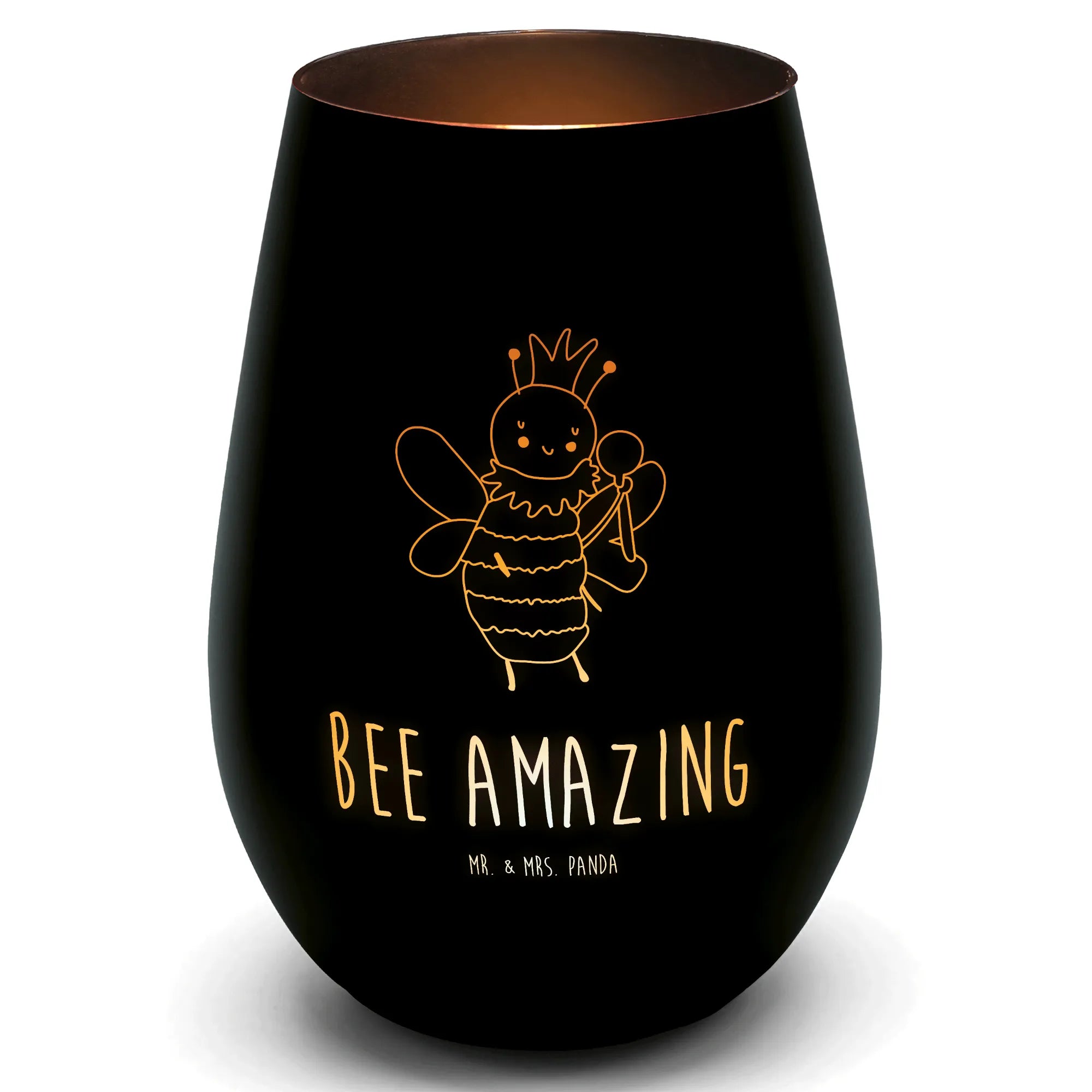 Unser Gold Windlicht aus der Bienen Kollektion von Mr. & Mrs. Panda ist ein kleiner Schatz für alle, die gemütliche Abende lieben. Das Windlicht Glas zeigt die süße Biene mit Krone und Zepter sowie den liebevollen Spruch „Bee amazing". Dieses Teelichthalter Glas bringt warmes Licht in deine Lieblings-Ecken und eignet sich perfekt als Geschenk für Imker, Natur-Liebhaber und alle Bienen-Fans.