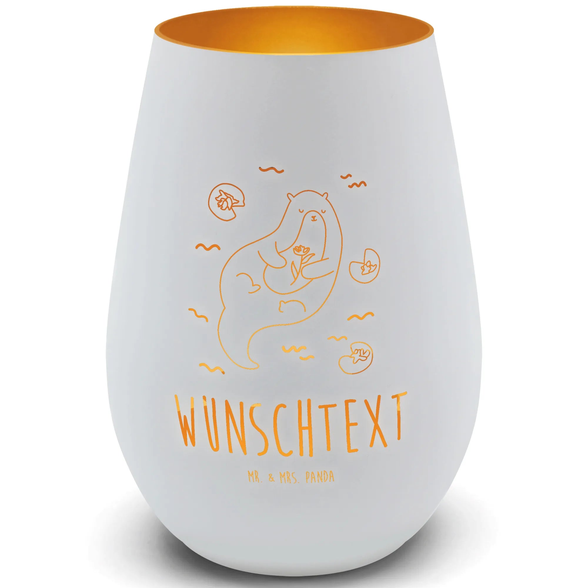 Gold Personalized Lantern otter Water Lily - White