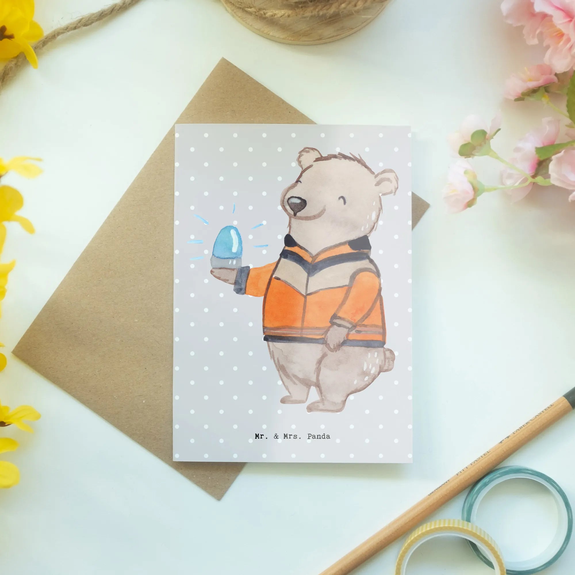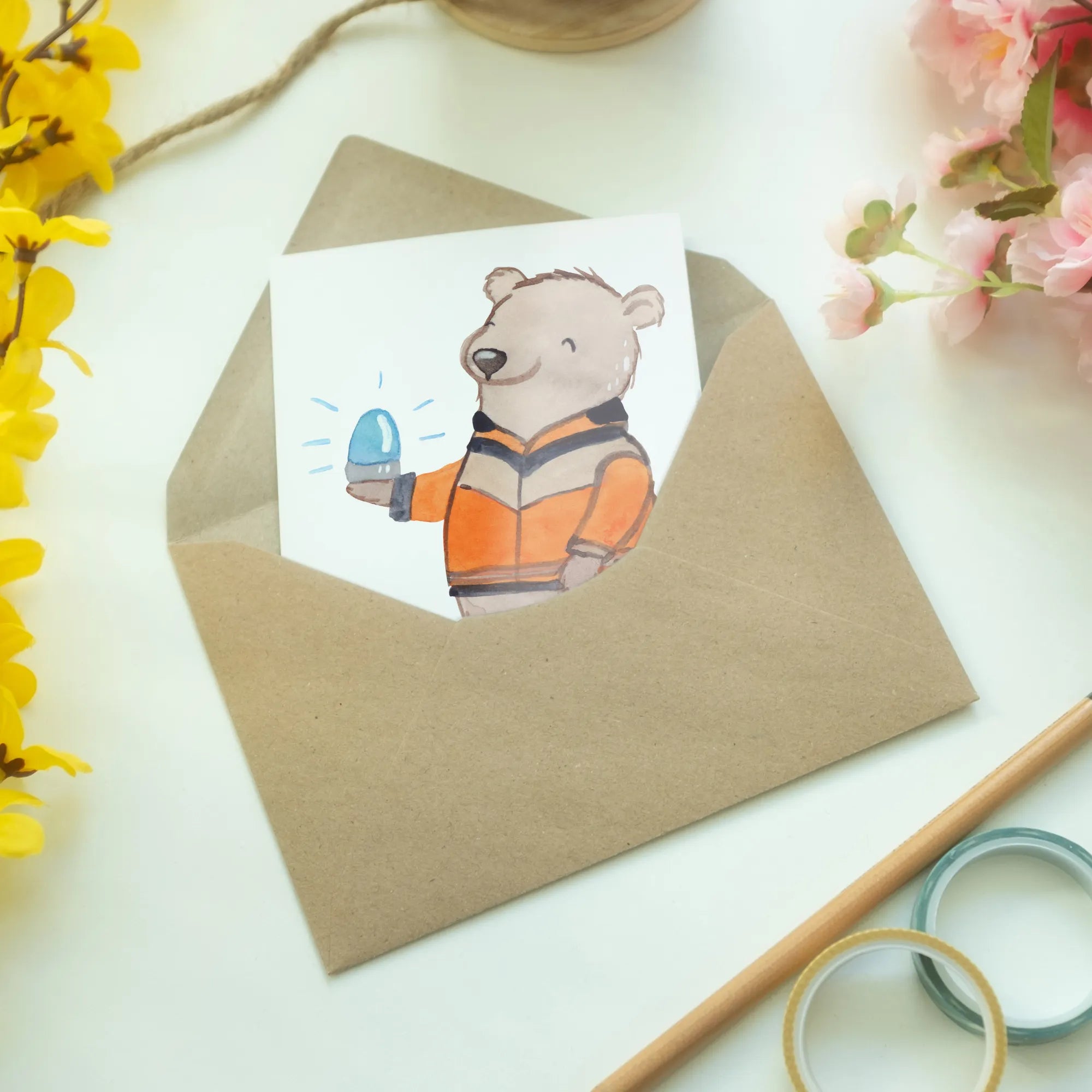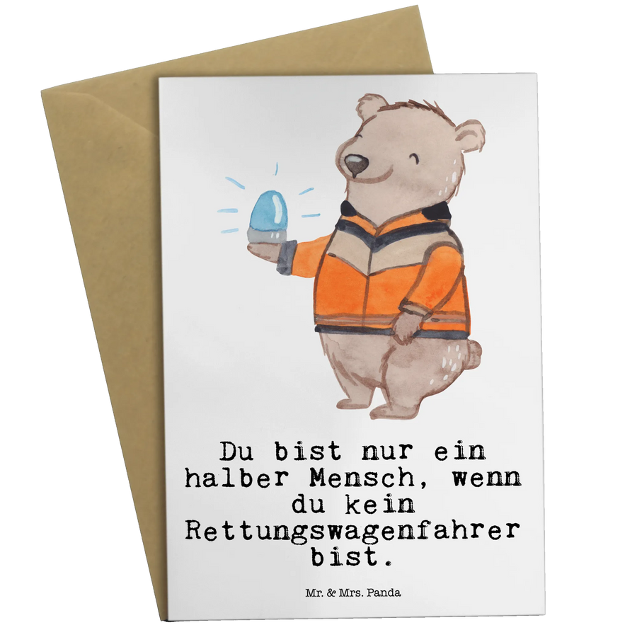 Looking for a delightful greeting card that speaks from the heart? Look no further than our charming Mr. & Mrs. Panda ambulance driver greeting card! This special card features a sweet design of a bear dressed as an ambulance driver, complete with a blue light in its hand. Whether you want to surprise a loved one or simply say congratulations, this card captures the spirit of admiration and celebration.