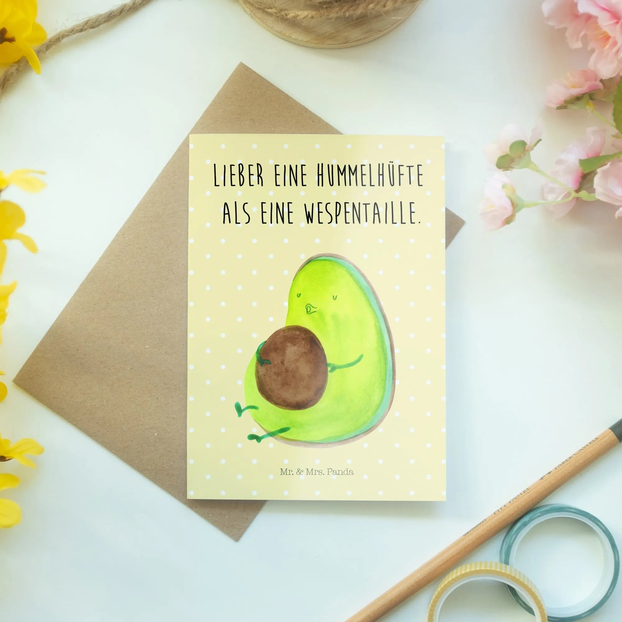Greetings card avocado Pipes - with saying - Yellow Pastel