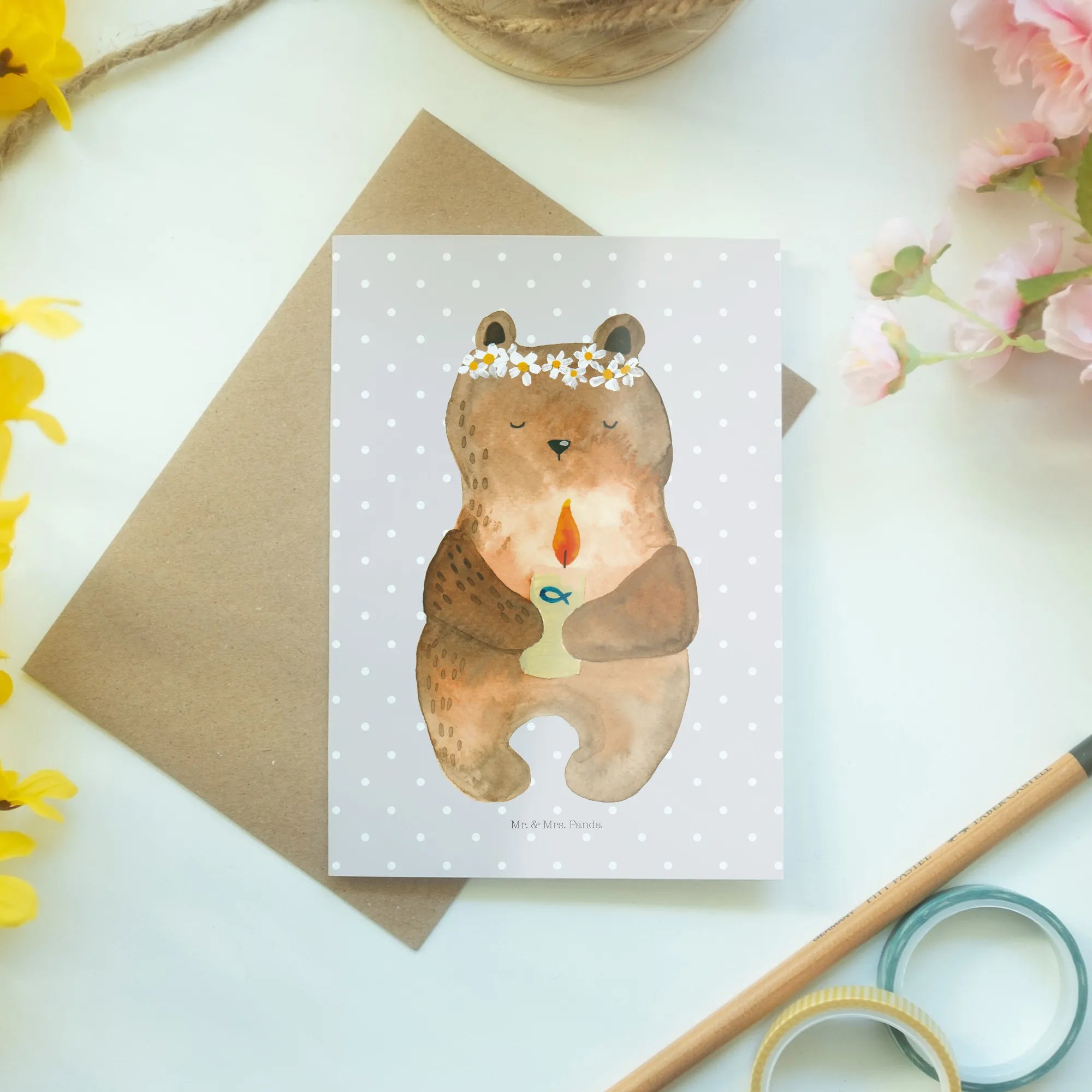 Introducing the delightful Greetings Card featuring the adorable Communion Bear from Mr. & Mrs. Panda! This beautifully designed card is perfect for celebrating a special communion event, providing timeless memories and heartfelt wishes all wrapped in one lovely package.