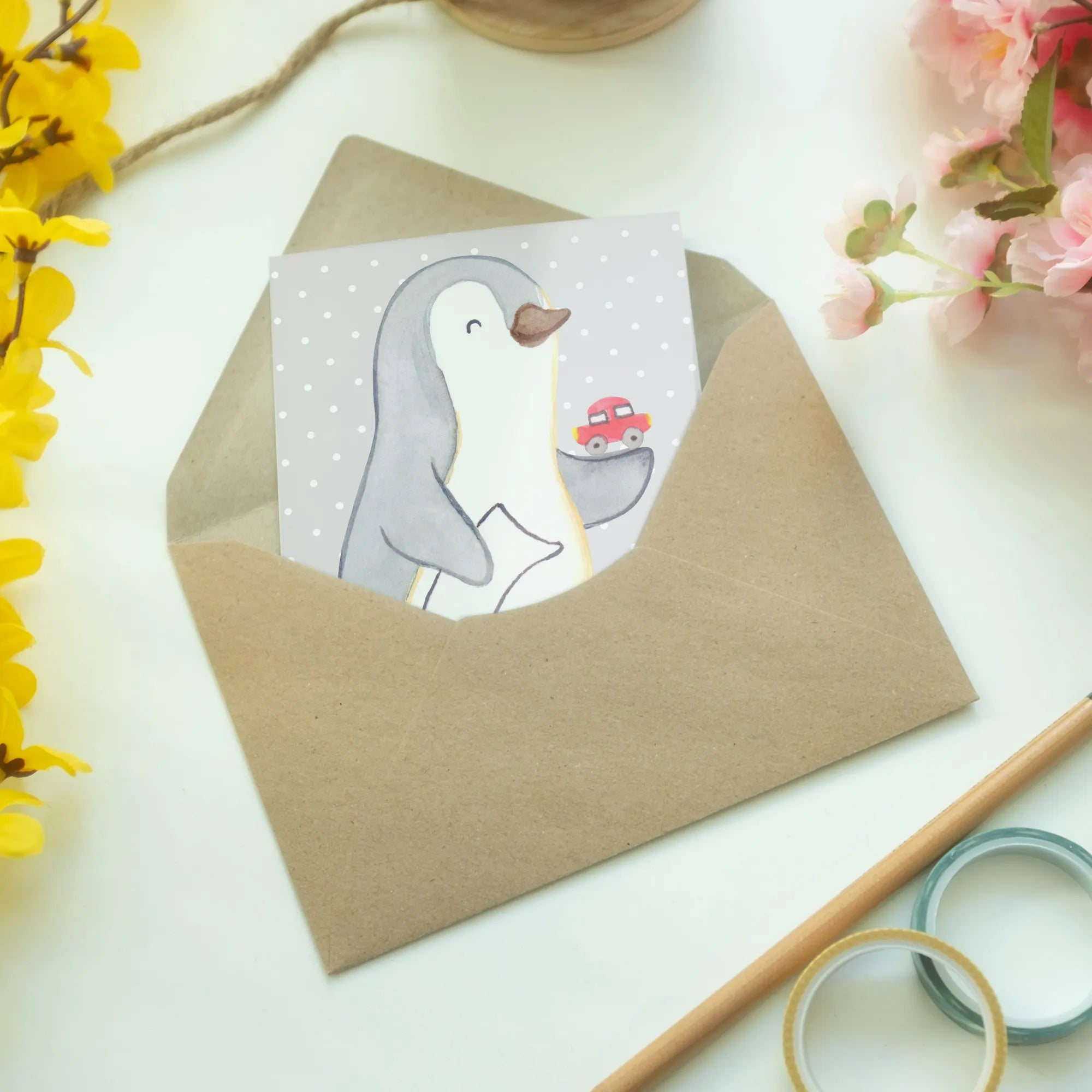 With its captivating design featuring a cute penguin with car documents in one hand and a toy car in the other, it'll surely bring a smile to any automotive professional’s face! Let’s face it, finding a trusted car dealer is an art in itself. A little token like this card is a thoughtful gesture that shows how much you value their service and expertise.