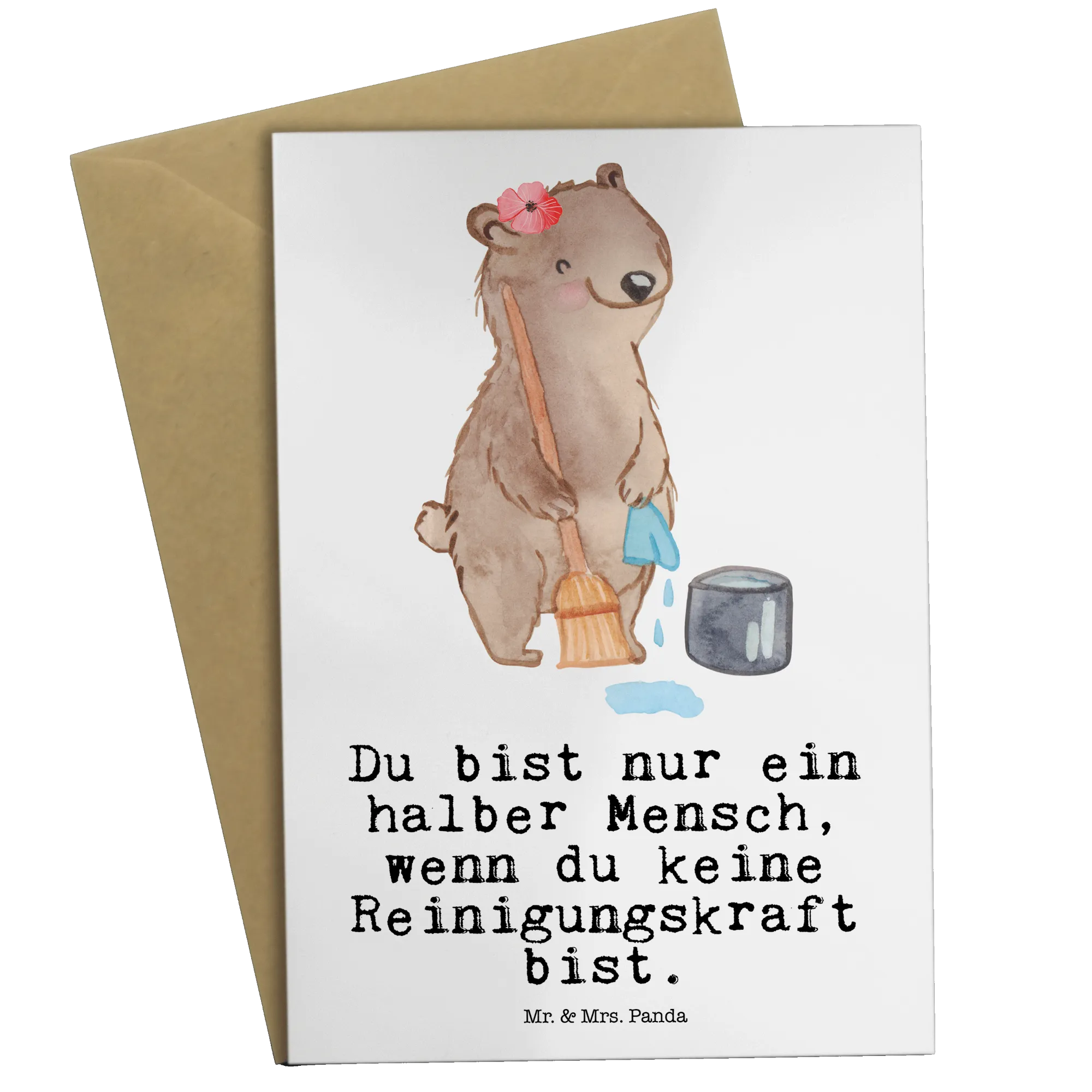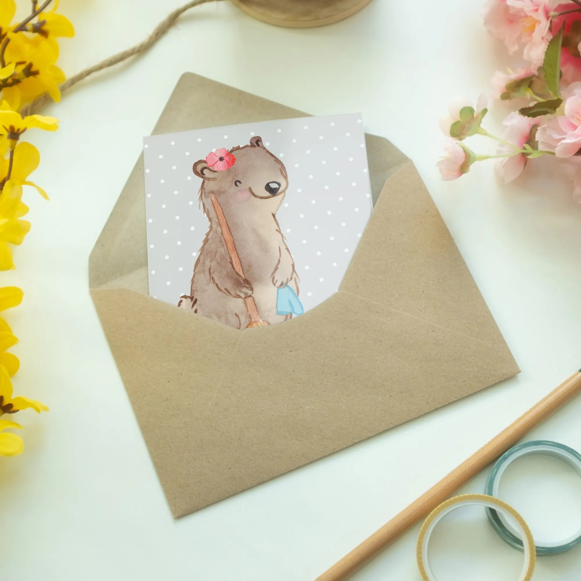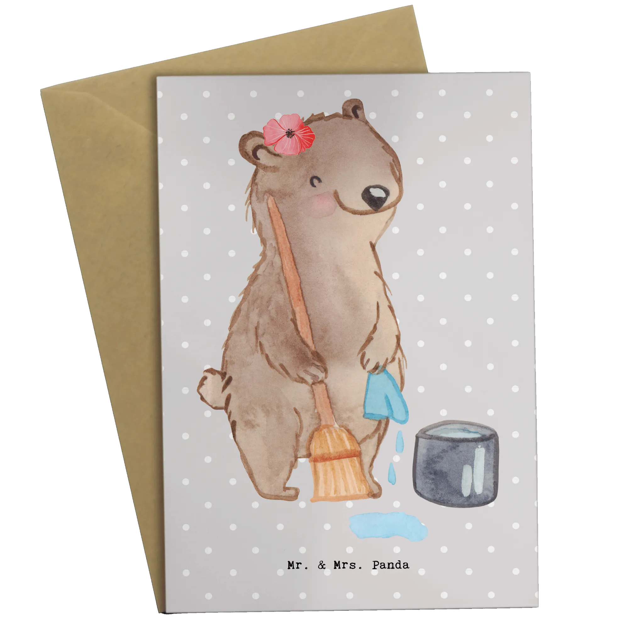 Introducing the delightful Greetings Card featuring a charming cleaner motif from the Mr. & Mrs. Panda collection! This card is the perfect fusion of heartfelt sentiments and playful artistry, making it an ideal gift for countless occasions. Whether you’re celebrating a job start, a promotion, a work anniversary, or a farewell, this whimsical card fulfills all your gifting needs. The adorable design, which showcases a happy bear enthusiastically cleaning, is sure to brighten anyone's day!