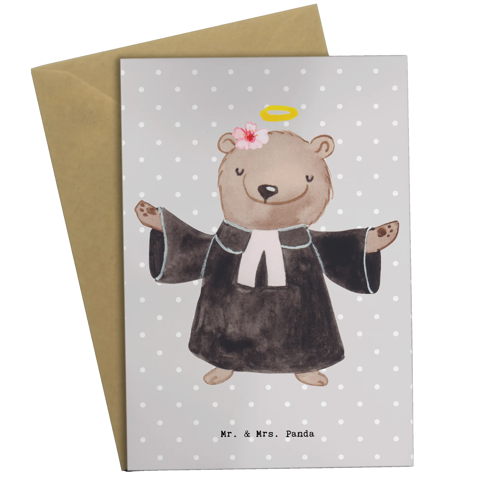Introducing the perfect greeting card for pastors, priests, and spiritual leaders from Mr. & Mrs. Panda! This beautifully crafted card features a charming illustration of a bear dressed as a pastor, arms raised in blessing. It's a delightful way to celebrate the meaningful role that clergy members play in their communities and the joyful moments that come with their service.