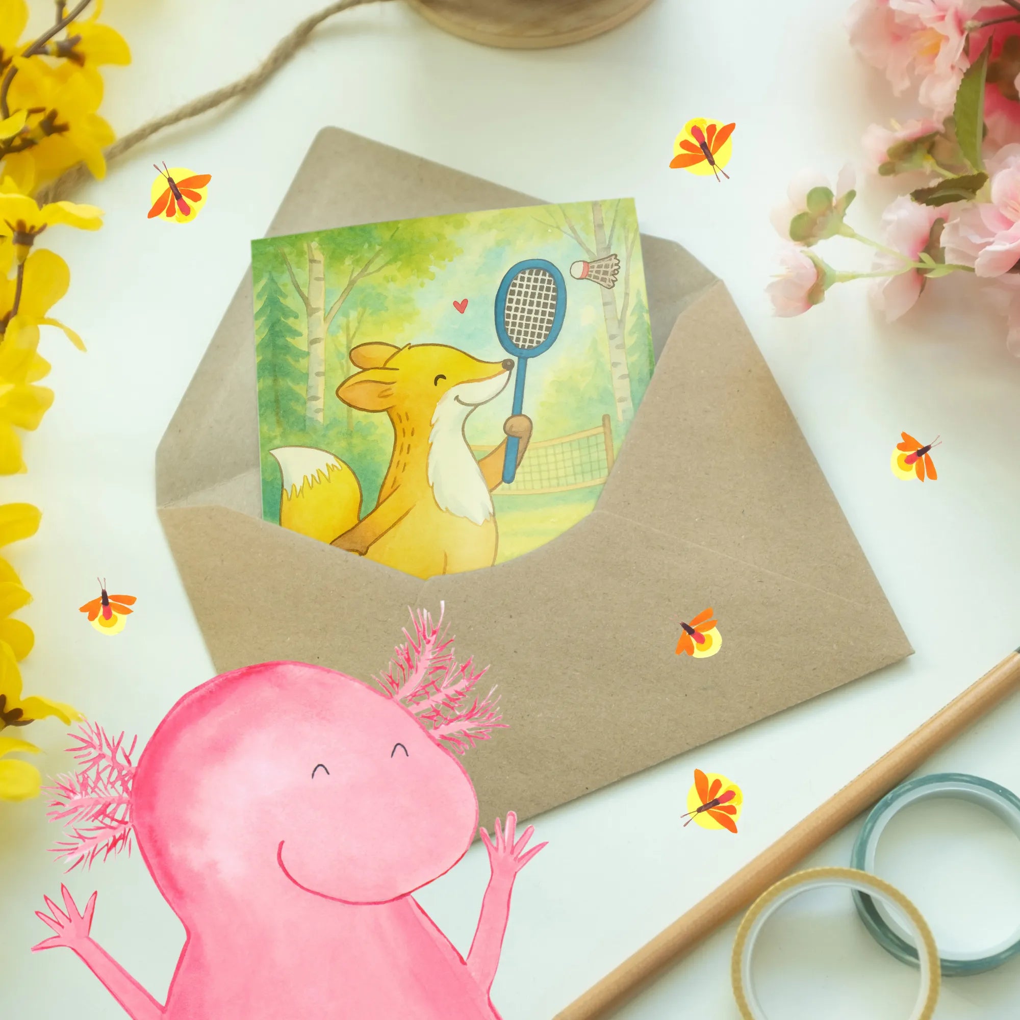 Greetings card Fox play badminton Design – Mr. & Mrs. Panda