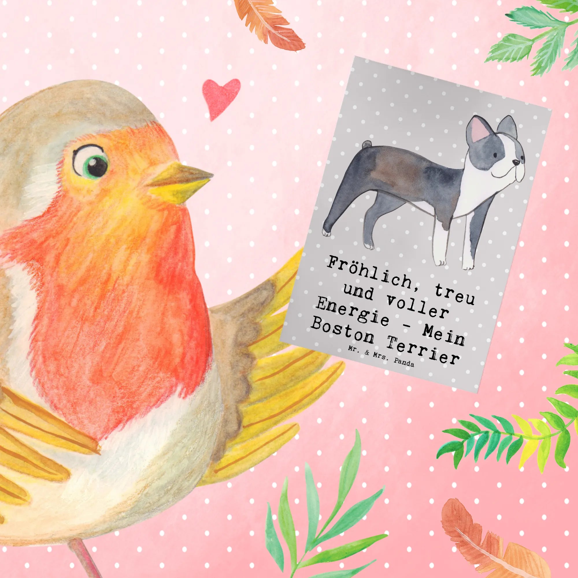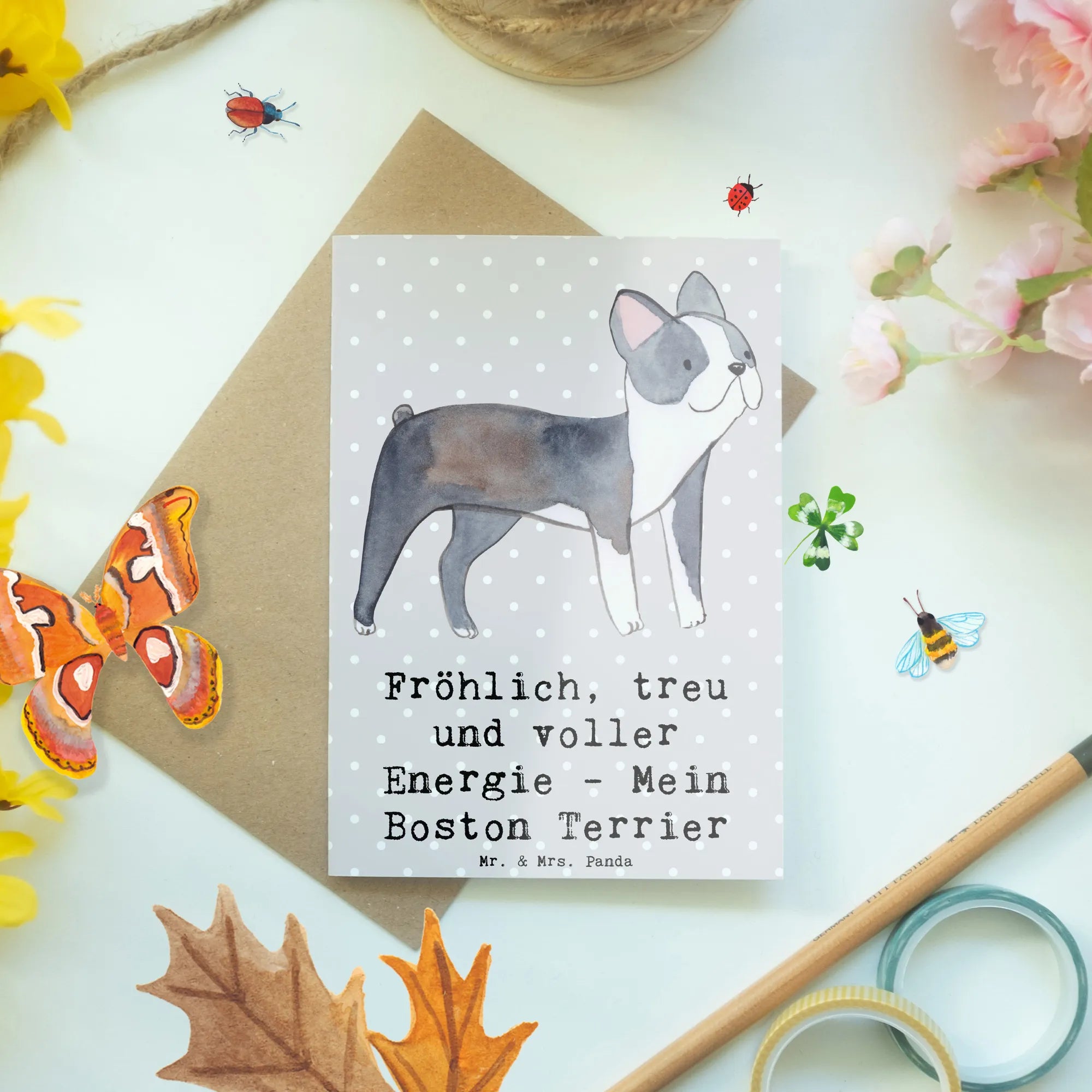 Greetings card Fröhlich, treu und voller Energie - Mein Boston Terrier - White