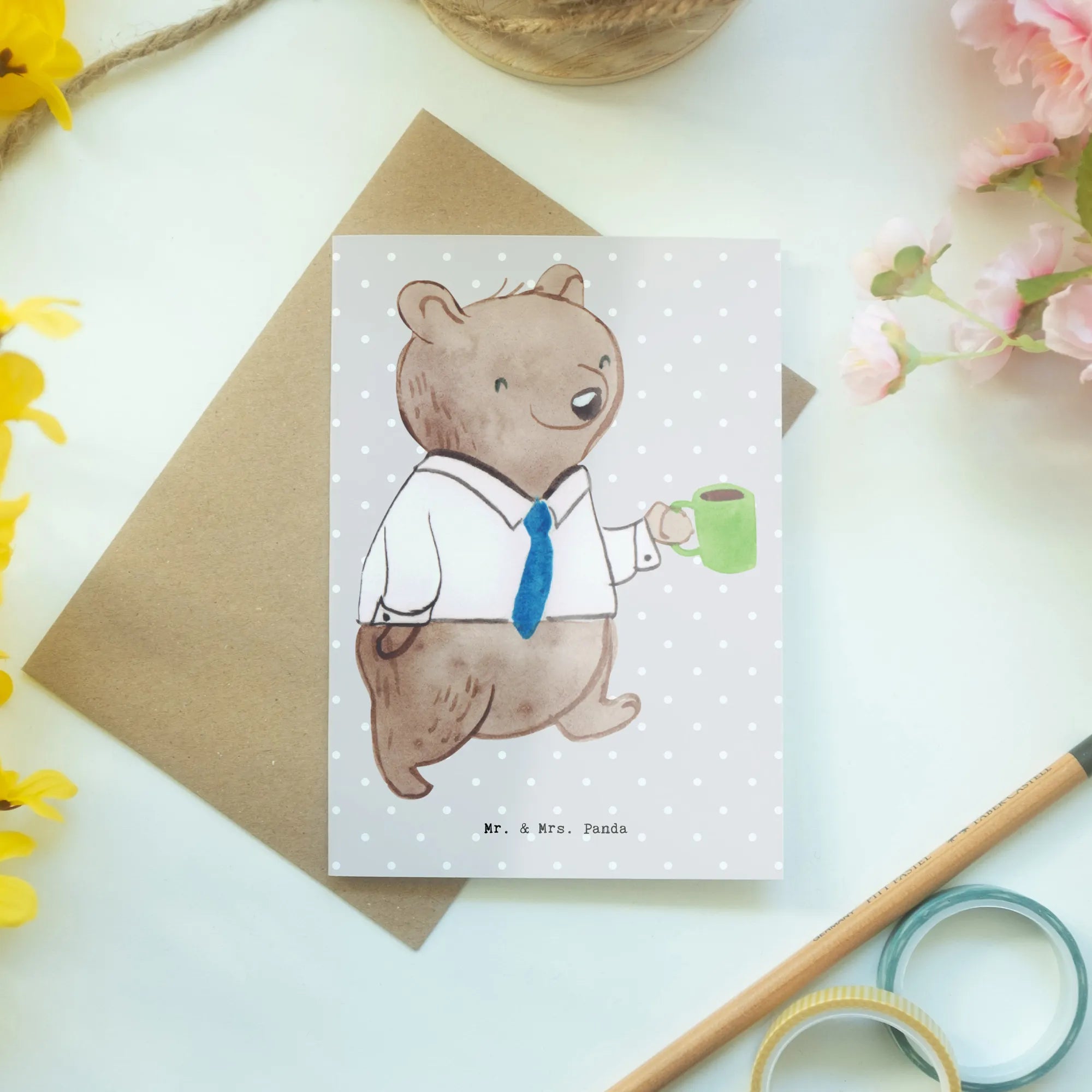 Crafted from high-quality 300 grams cardboard, it boasts a glossy finish on the front and back, adding a touch of elegance that your friends, family, or colleagues will love. With its charming illustration of a cheerful panda, decked out in a snazzy shirt and holding a cup of coffee, this card captures the essence of fun and professionalism — perfect for anyone who takes the stage!