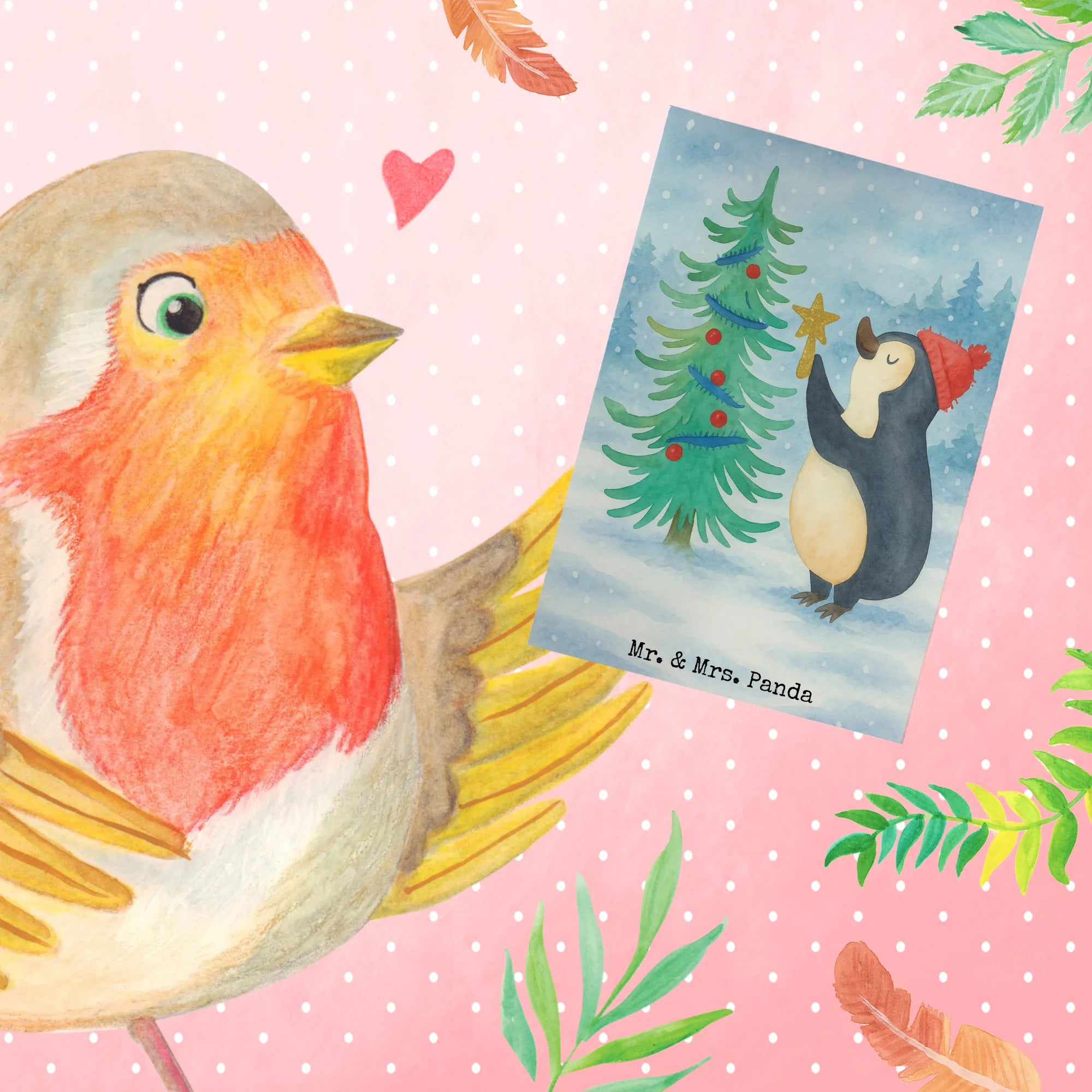 Juhuu – die Winterzeit ist da! Unsere entzückende Grußkarte „Pinguin Weihnachtsbaum“ aus der Winter Kollektion von Mr. & Mrs. Panda bringt dir und deinen Liebsten die warme, gemütliche Stimmung der Adventszeit direkt nach Hause. Auf der Vorderseite strahlt ein süßer Pinguin, der mit Hingabe einen Weihnachtsbaum schmückt. Das Motiv ist liebevoll von Mrs. Panda in Aquarell handgezeichnet und zaubert sofort ein Lächeln ins Gesicht. 🎄❄️