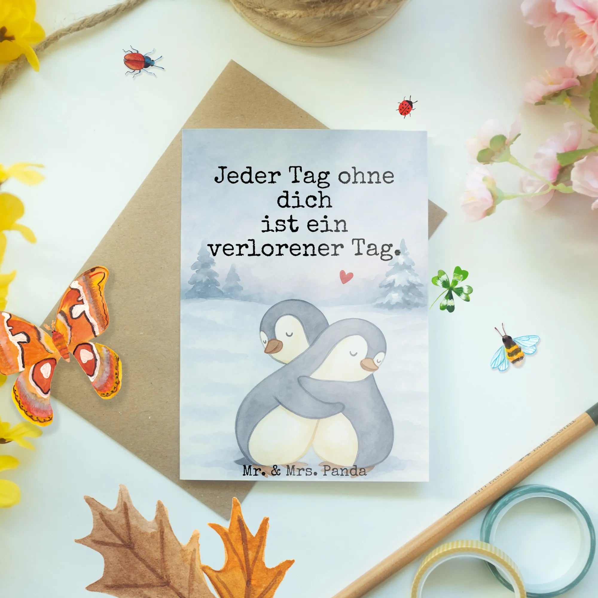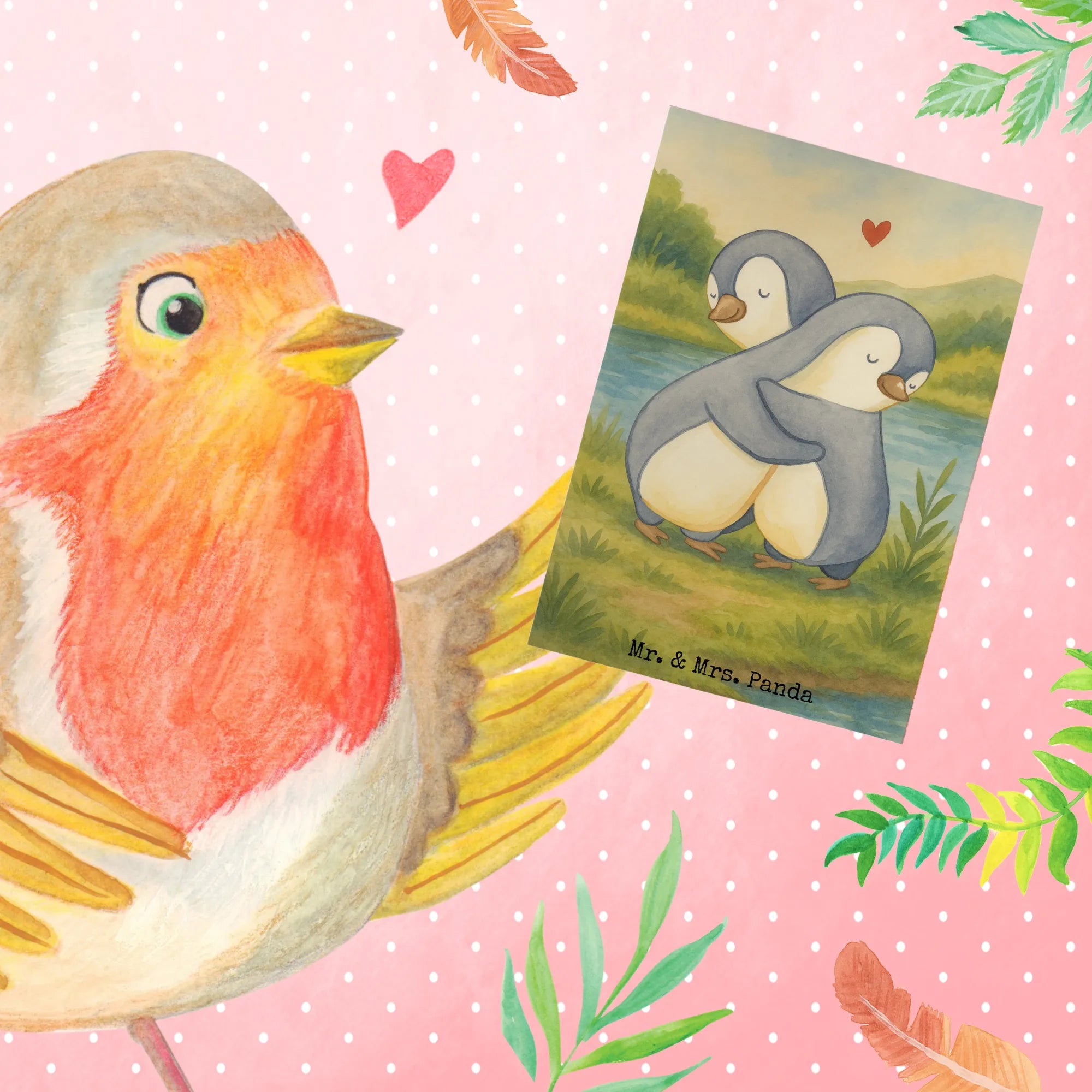 Greetings card penguins Cuddle Design – Mr. & Mrs. Panda