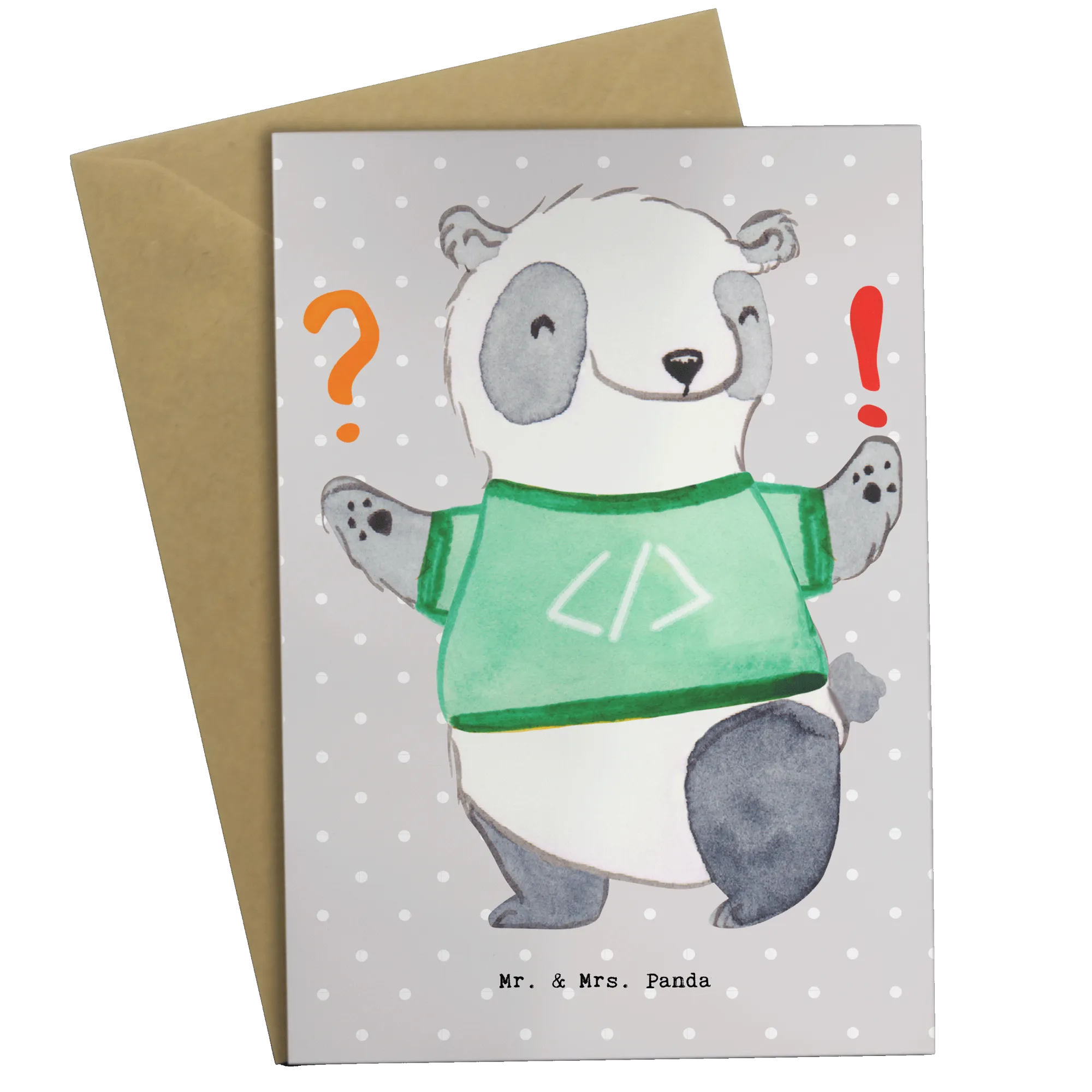 Are you looking for the perfect gift for the programmer in your life? Look no further! Our stunning and unique Greetings Card featuring a delightful panda programmer is wonderfully crafted by Mr. & Mrs. Panda. This card serves as a cheerful and heartwarming keepsake, designed specifically for those dedicated software engineers, data processors, and IT specialists who pour their passion into coding every day.
