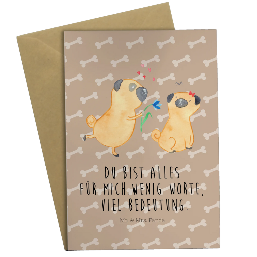 Imagine a beautiful scene where two cute Pugs stand together, radiating love with one gifting a flower to the other. It's a perfect illustration of affection that reflects the bond dog owners share with their pets and loved ones. With a size of 148 mm x 105 mm, it's just right for slipping into an envelope or even propping up on your desk for a daily reminder of love and happiness.