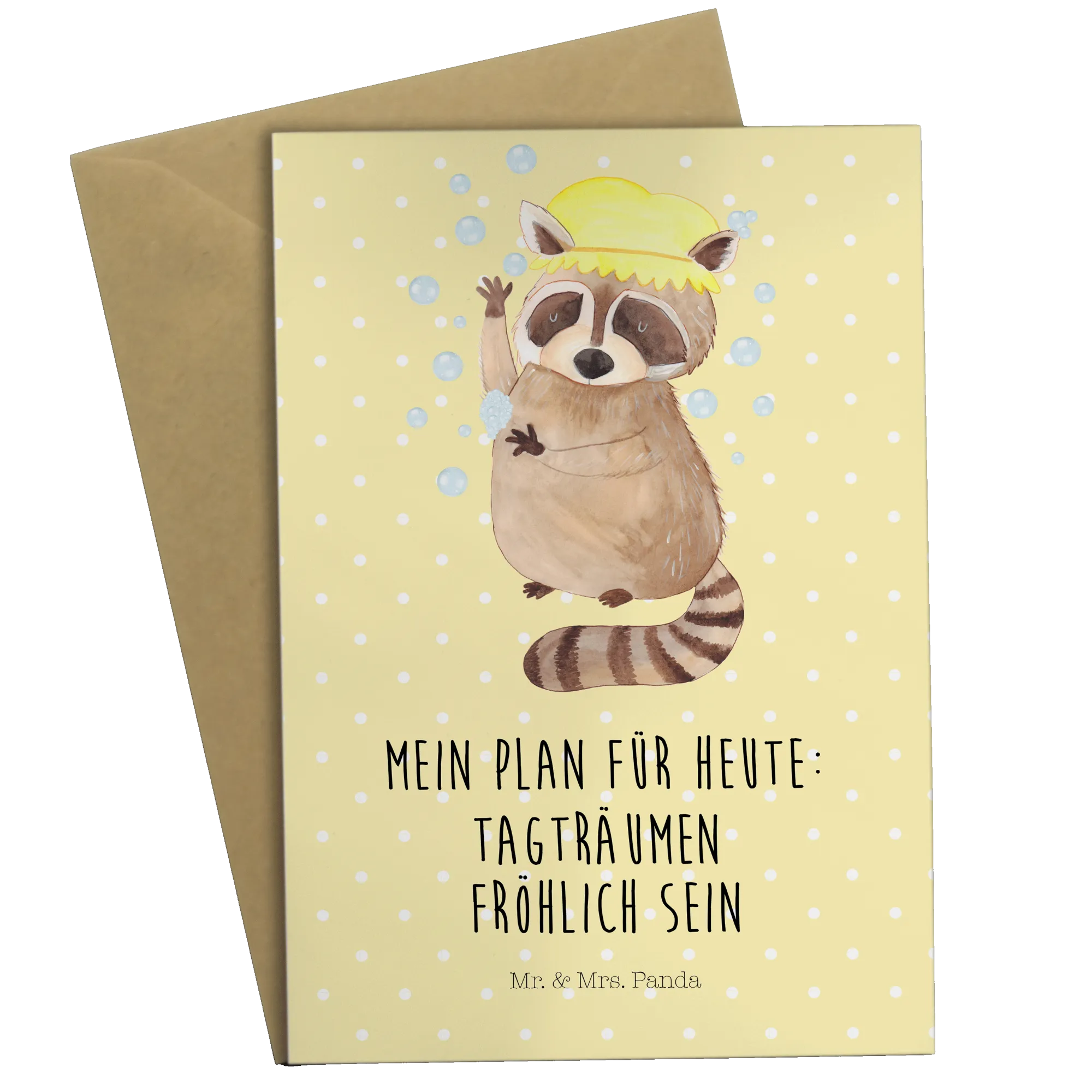 Greetings card Raccoon - with a saying - Pastel Yellow